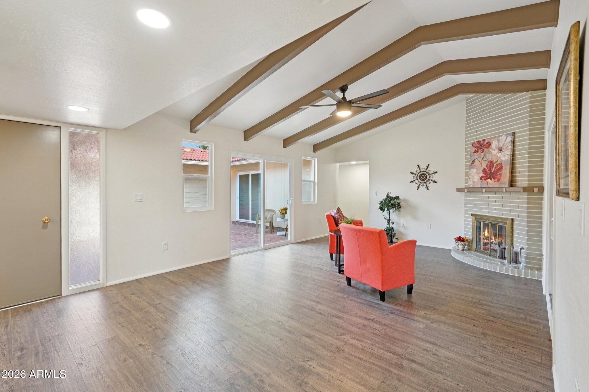 WOW 2.85% ASSUMABLE LOAN * RARE Opportunity to own this UNIQUE floor plan w/ 2 PRIMARY SUITES & a 1/2 BATH * REMODEL COMPLETED 2025 * PRIVATE COURTYARD w/ Brick Floor * As you enter the home you are greeted w/ a BEAUTIFUL Gas FIREPLACE & Vaulted Ceilings w/ BEAMS * NEW KITCHEN w/ Self Soft Close Cabinets, Pullouts & Desk, Quartz Counters, Backsplash & NEW SS Appliances * ALL 3 BATHROOMS w/ NEW ADA Height Toilets & Vanities * Both PRIMARY SUITES w/ Carpet, Walk-in Closets & Exterior Exits to Screened Patio or Courtyard, 1 w/ Shower & 1 w/ Tub * Popcorn Ceilings Removed * NEW Interior Paint * Recessed LED Lightning * Ceiling Fans * 6 NEW Dual Pane Windows & 4 Patio Doors * Plantation Shutters * ALL NEW Flooring * Inside Laundry * Epoxy Floors in Garage & the SCREENED PATIO * TILE Roof * NEW Shingle Roof at AC * AC 2023 Goettle * 2021 Gas Rheem Water Heater * Water Softener Conveys As-Is. 2 Car Garage & Separate area for Golf Cart & Storage * NEW Garage Door & Opener * 2 Orange Trees, Lantanas & Yellow Bells * Welcome to the Active Adult Golf Community of Sun City! The Original Fun City! Sun City offers many amenities & low taxes! 8 Rec Centers with swimming pools, lap pools, walking pools, Hot tubs and every activity, work shop, & craft you can think of! Bowling! Pickleball! Shuffle Board! Pool Tables! Darts! Tennis! Ground Bowling! Mini Golf! Lake Activities! 9 Public Golf Courses & Reduced prices with Rec Card. 3 Private Golf Courses open to the public. And much more! Close to shopping, restaurants & entertainment! Close to Spring Training Baseball. Close to Arrowhead Mall, Lake Pleasant and all of its growing amenities & restaurants nearby! Close to Grand Ave & 101 access! The list goes on & on! AGE RESTRICTED RETIREMENT COMMUNITY. ONE PERSON MUST BE 55 YEARS OLD AND NO ONE UNDER 19 YEARS OLD. ANYONE UNDER 19 CAN VISIT - SCHOA RESTRICTIONS APPLY. All items of material importance to Buyer to be verified during inspection period.