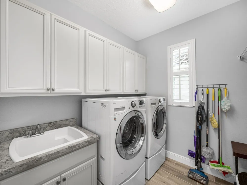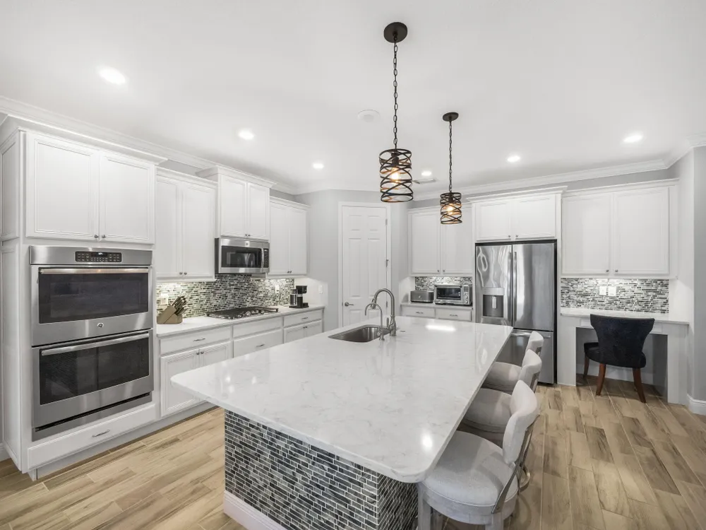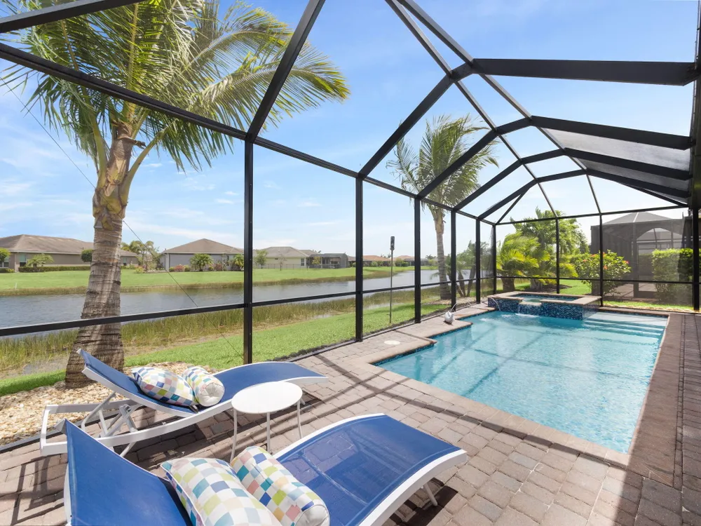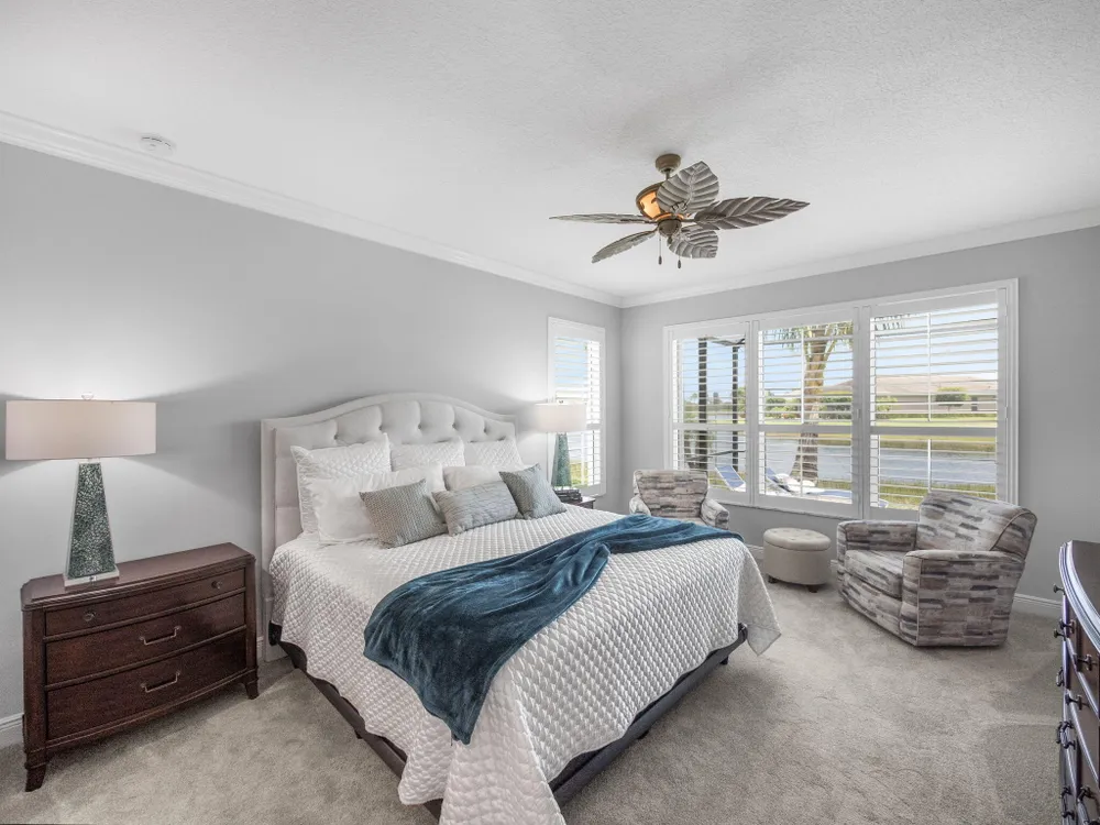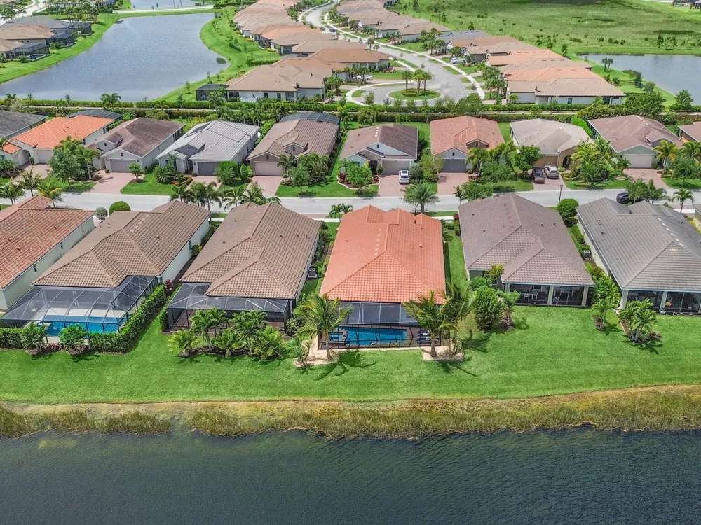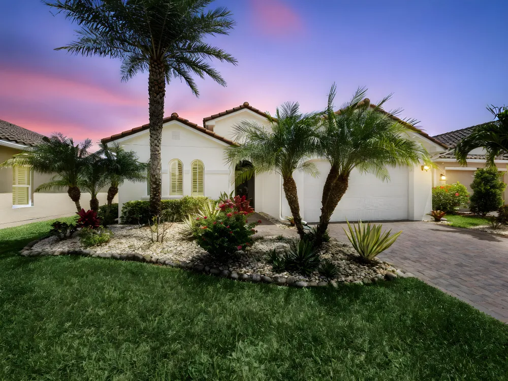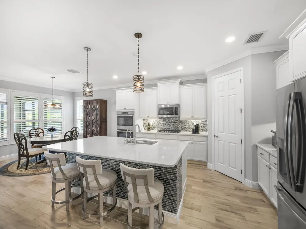 Live the resort lifestyle every day in this beautifully upgraded 2-bedroom + Flex Room, 2-bathroom lakefront pool and spa home with 20' x 24' garage, nestled in the sought-after 55+ community of Vitalia at Tradition. This home offers peace of mind and year-round comfort with complete impact glass, hurricane screens, a whole house generator, surge protection system, termite protection, and an AC/air purification system with UV light. A smart thermostat and whole home water filtration system add even more value and convenience. Step into the gourmet kitchen, featuring stainless steel appliances, a gas range, double wall oven, and spacious countertops--perfect for cooking and entertaining. The open-concept layout flows into the living and dining areas, all showcasing stunning views.