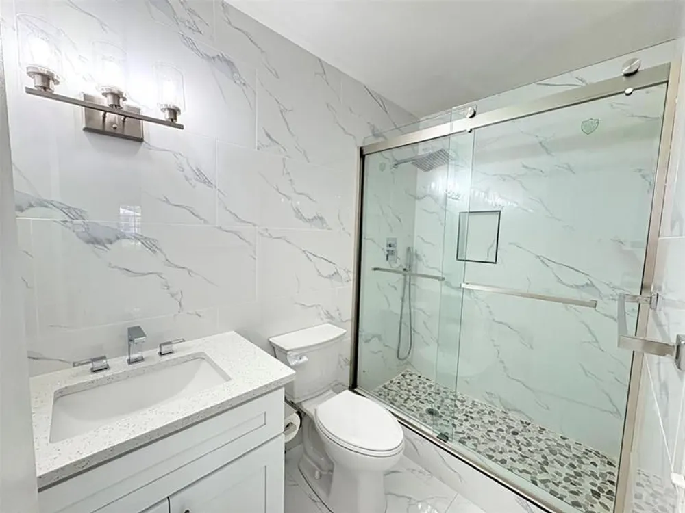 TOTALLY RENOVATED with MODERN DESIGNS! This beautiful & spacious 2 bedrooms & 2 Full baths locates the heart of Boynton Beach. Brand new classic white porcelain tiles Flooring throughout the unit. Brand new KITCHEN with white Shaker wood cabinets, quartz countertops, marble backflash, stainless steel appliances; and Kitchen Aid Refrigerator. There is a private patio/Florida sunroom or an in-door garden or whatever you want it to be. New washer & dryer in the Garage (1-car) with plenty of storage space. Only a few units come with 1-car garage in this complex. Clubhouse features Pools, Fitness room, Tennis, Pickleball, Bocce ball courts, shuffle board and lots more other activities. GREAT LOCATION! A few minutes to shops and restaurants; and only 4 minutes drive to beaches.