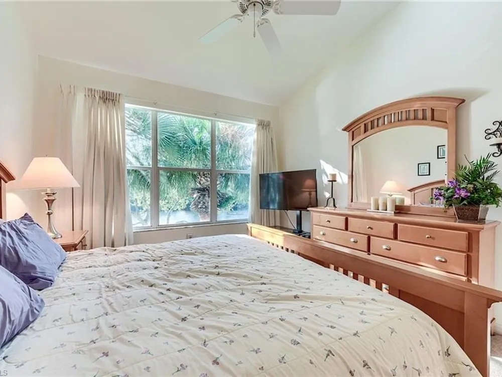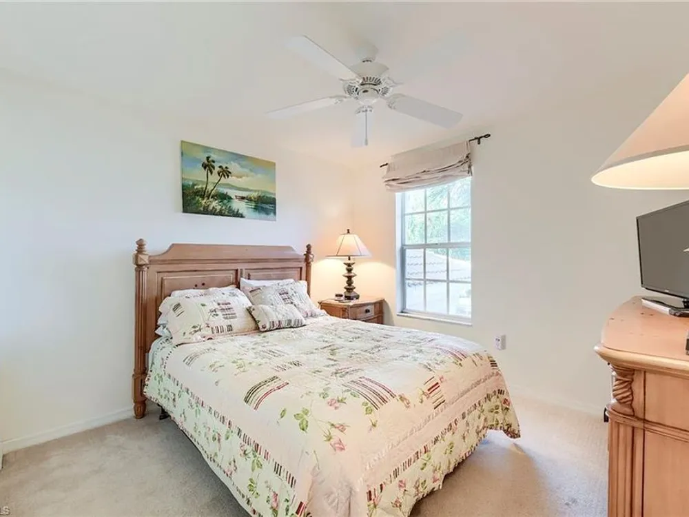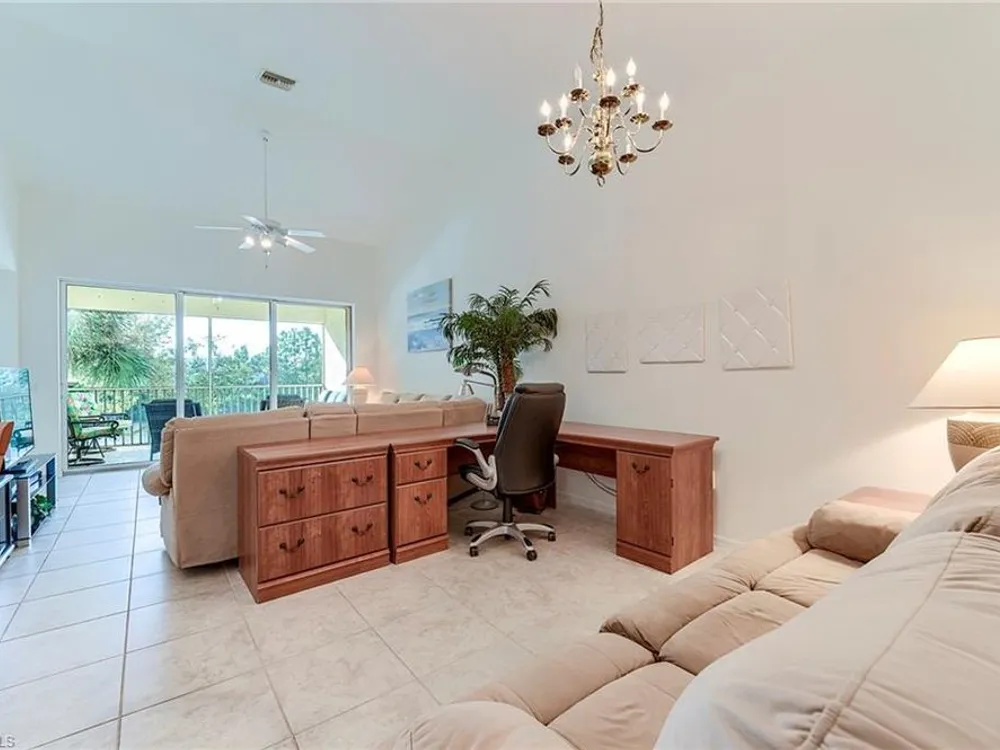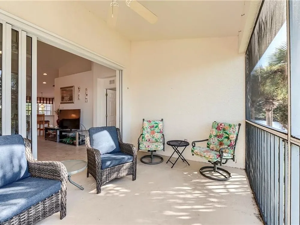 Enjoy the easy living of this inviting 2-bedroom, 2-bathroom coach home located on the second floor in prestigious Colonial Country Club. Pay per play Golf, so enjoy low fees with ability to Golf. Inside, the home is centered around a main living area with vaulted ceilings, and triple sliding doors which flood the space with natural light, creating an open and airy layout. The Kitchen features a pantry as well as both a breakfast nook and breakfast bar.... tying it all together is a spacious dining area. Step out onto your private screened Lanai and enjoy peaceful lake views — an ideal spot for relaxing. The Tile floors throughout the main living areas and and Plush carpet in bedrooms along with a neutral palette throughout the home, makes this condo move-in ready! The Primary bedroom is complete with en-suite bath, large walk-in closet and oversized windows to take in more of the serene view. A covered carport offers protected parking, and an additional storage area provides extra space for your belongings. Along with Golf, Tennis and Pickleball, Colonial Country Club offers top-notch amenities for fitness, fun, and relaxation. From competitive bocce leagues to a state-of-the-art wellness center and rejuvenating spa services, there's something for everyone. It's more than a club—it's a vibrant community.Ideally located near I-75, SWFL International Airport, Florida Gulf Coast University, Coconut Point, Gulf Coast Town Center, and the Gulf beaches, Colonial offers unmatched convenience and lifestyle.