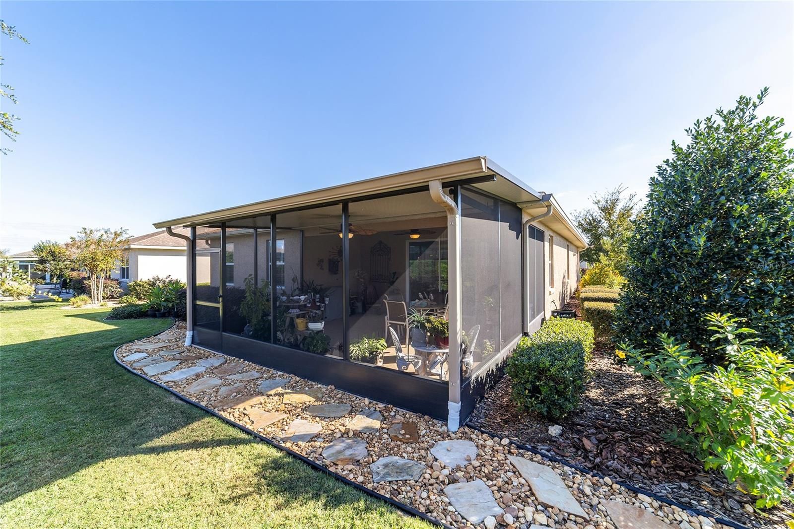 Beautiful Kent Model – 2 Bed, 2 Bath! Modern conveniences meet stylish upgrades in this corner-lot home. Features include keyless front & garage entry, Ring doorbell, whole-home generator, crown molding, and plantation shutters. Enjoy a screened-in lanai, private backyard with mature landscaping, rear concrete slab for entertaining, decorative stone walkways, and extended driveway. Additional perks: gutters, porch shade screens, brand-new roll-up garage screen, front storm door, and reverse osmosis water system. Move-in ready and full of charm!