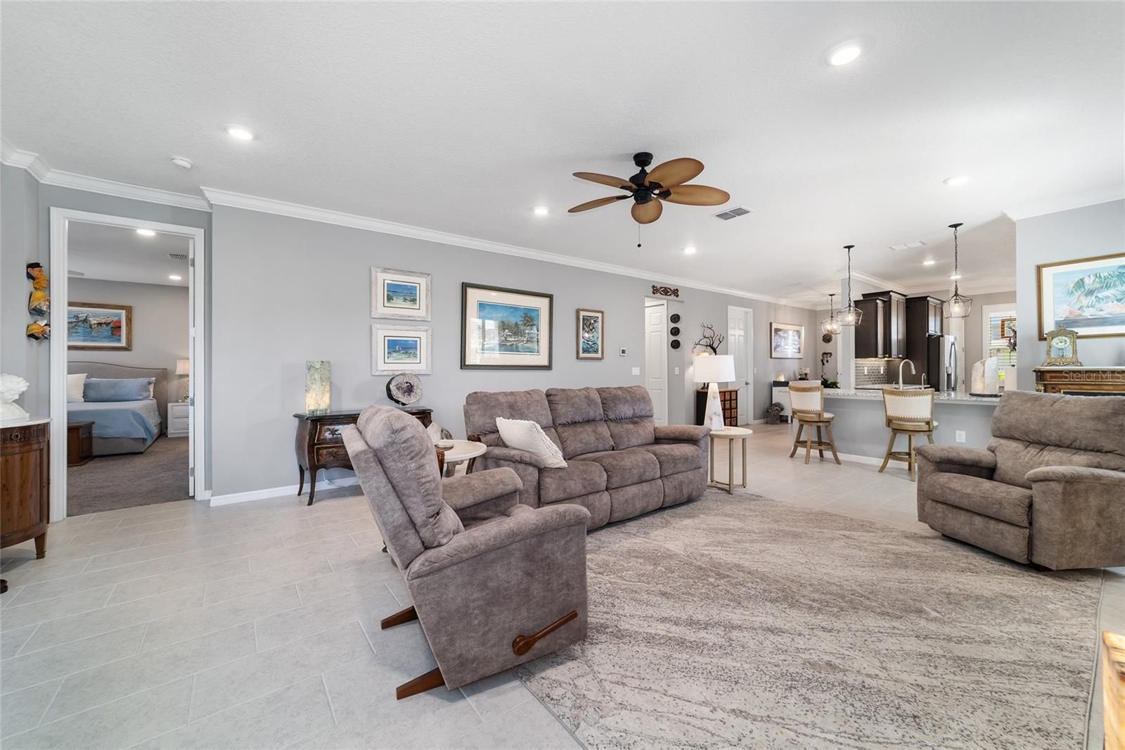 - Ceiling Fan(s), Crown Molding, Eat-in Kitchen, Open Floorplan, Main Level Primary, Walk-In Closet(s), Window Treatments