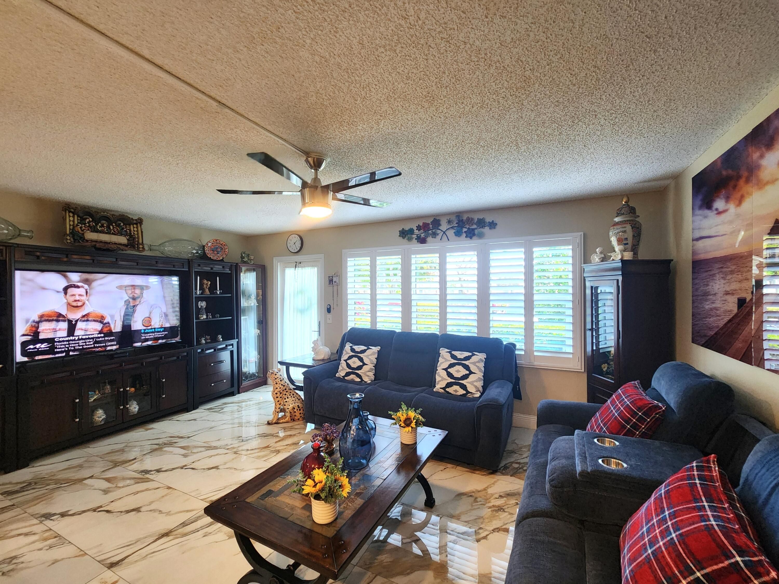 Experience the convenience of first floor in this spacious and completely remodeled residence in popular Century Village. Interior features open kitchen with raised ceiling, recessed lighting, cascading granite counters, glass backsplash with undercounter lighting, stainless steel appliances and plenty of cabinetry providing plenty of storage. Other features include gorgeous XLG porcelain flooring, impact glass, updated bathrooms, and enclosed patio delivering an additional bedroom for family and guests. Exterior opens to sprawling natural preserve. Century Village is the cat's meow offering the best in amenities with countless walkable pools, tennis courts, & a WORLD RENOWNED clubhouse boasting amazing pool, box office, shows, billiards & more!