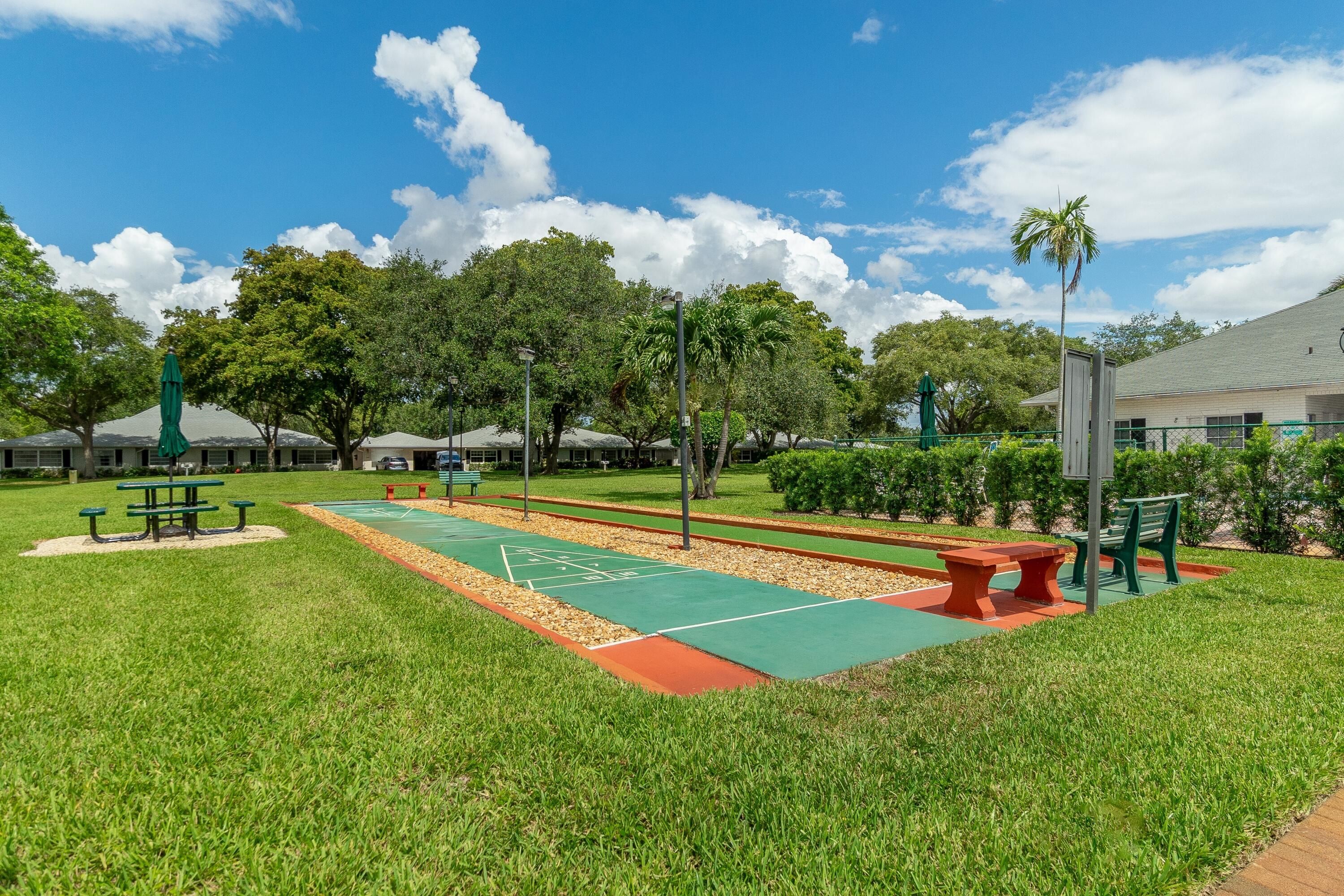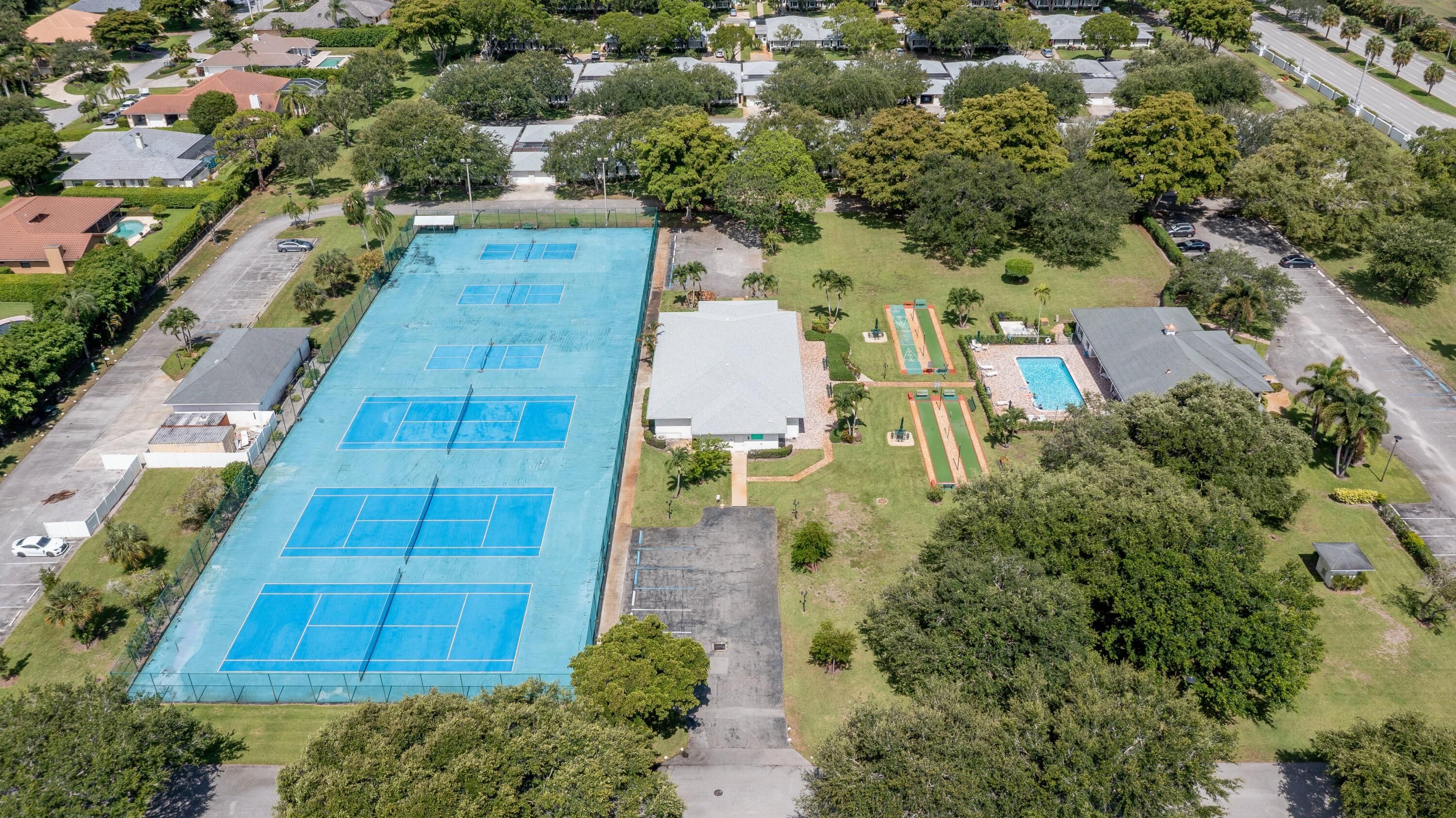 - Includes: Billiard Room, Clubhouse, Fitness Center, Pool, Shuffleboard Court, Tennis Court(s), Bocce Court, Community Room, Library, Pickleball