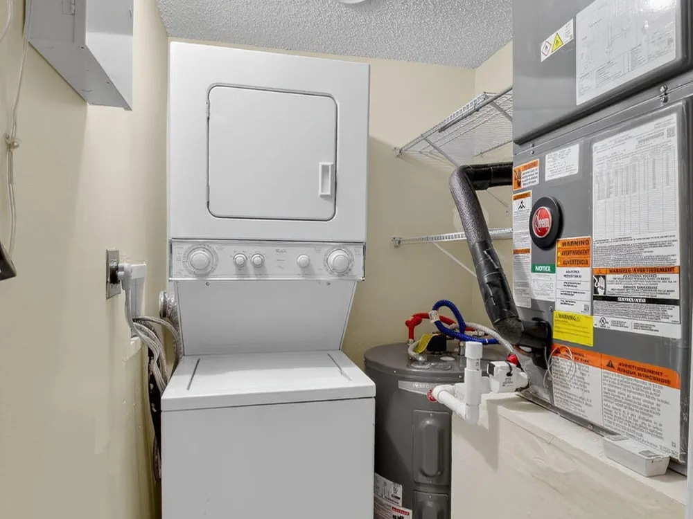 - Dishwasher, Dryer, Microwave, Electric Range, Refrigerator, Washer, Electric Water Heater