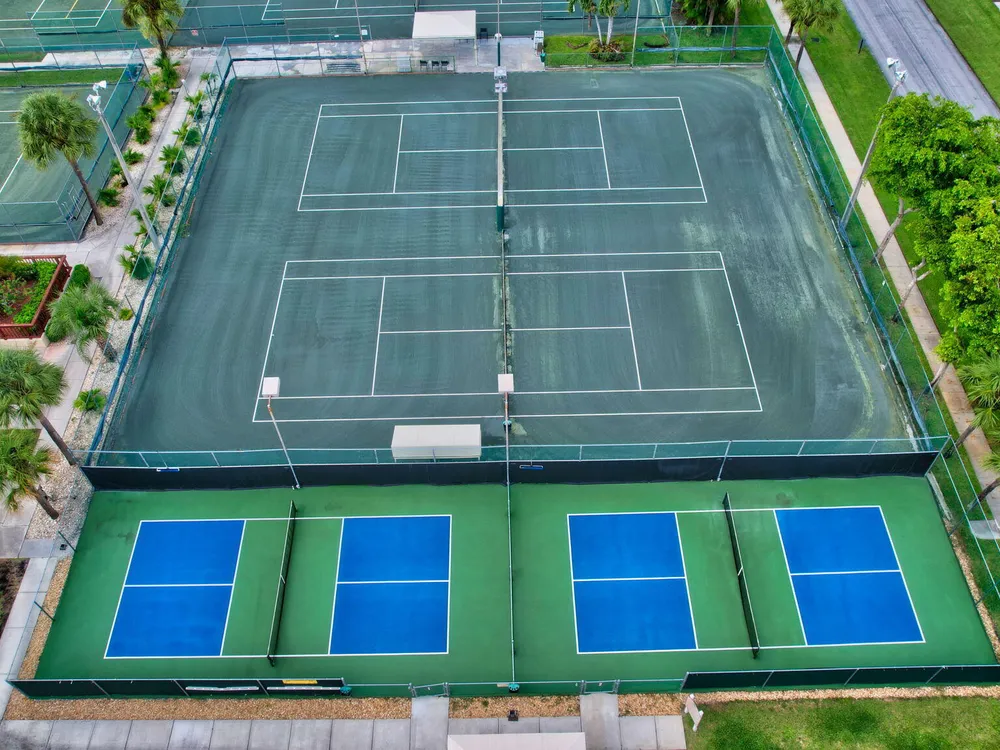 - Billiard Room, Bocce, Restaurant, Clubhouse, Community Room, Fitness Center, Library, Pickleball, Pool, Sidewalks, Street Lights, Tennis Court(s), Whirlpool
