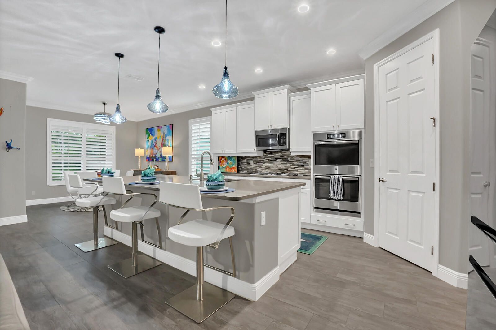 Welcome to Vitalia at Tradition, a premier 55+ manned-gated community offering resort-style living at its finest! This spacious single-story home features 3 bedrooms, 2.5 bathrooms, a versatile den/office, and 2,446 sqft of comfortable living space.Equipped with a Generac whole house generator, air filtration system, impact windows, and plantation shutters, this home offers both comfort and peace of mind. A 2-car garage plus dedicated golf cart space adds extra convenience.The kitchen is a chef's dream, featuring a gas cooktop with double ovens, quartz countertops, stainless steel appliances, and a large island with bar seating--ideal for entertaining and everyday living.