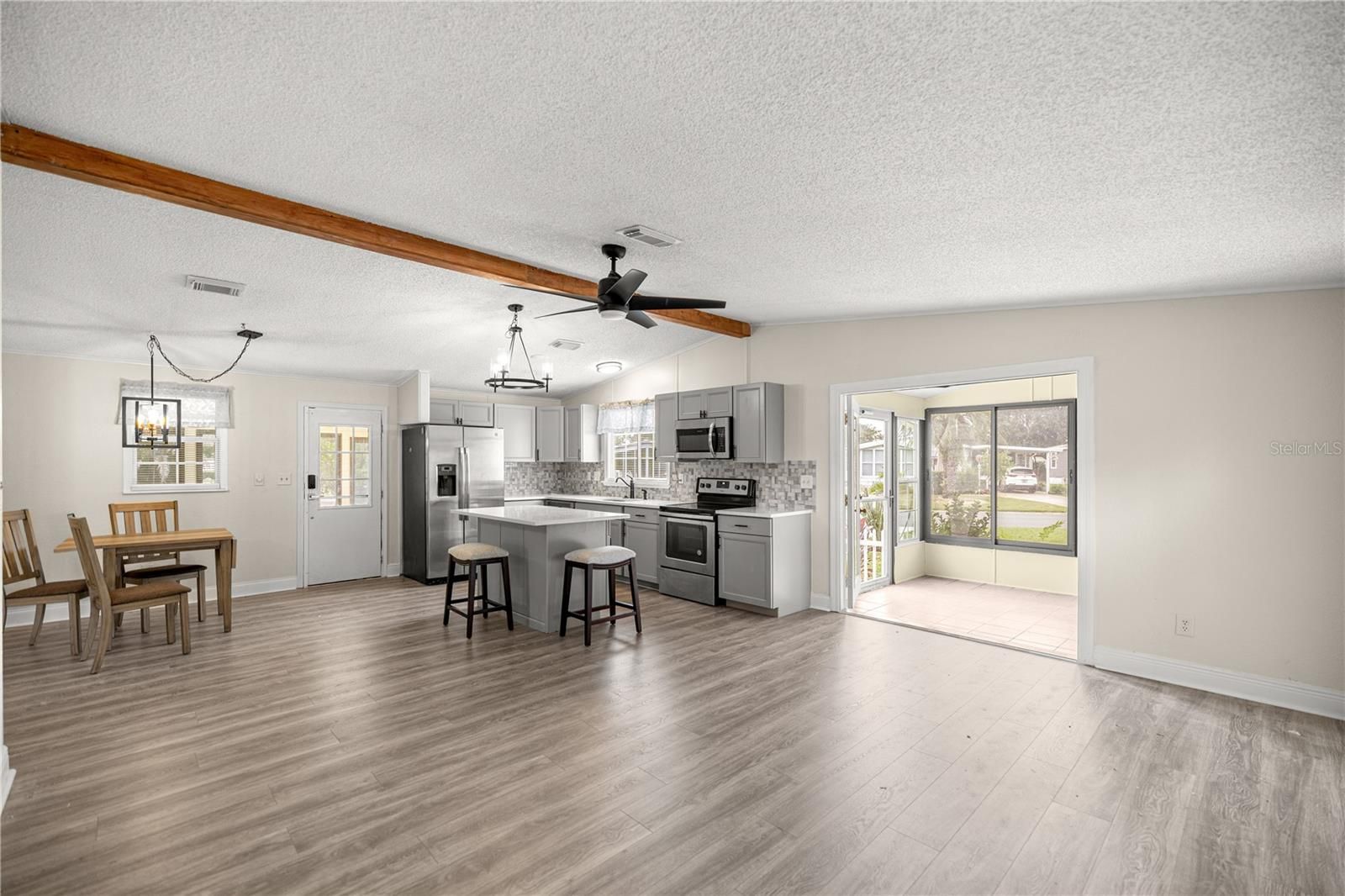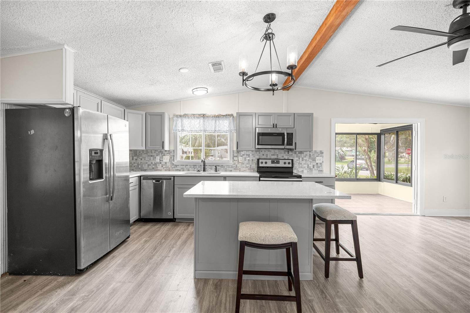 Welcome to this beautifully updated, move-in-ready home perfectly positioned on a desirable corner lot just minutes from The Villages—giving you quick access to world-class amenities, entertainment, golf, and dining options. Inside, you'll find new hardwood floors that create a warm and inviting ambiance throughout the main living areas. The kitchen boasts elegant quartz countertops, combining durability with upscale style—perfect for everyday living or entertaining guests. Built with long-term comfort in mind, this home features a coated membrane roof, known for its reliability and energy efficiency, along with a new AC and heat pump system to keep you comfortable year-round. Newer dual-pane windows allow natural light to pour in while improving insulation and reducing noise. Both bathrooms have been refreshed with refinished tubs and showers, and the interior laundry area adds everyday convenience. Whether you're looking for a full-time residence or a seasonal retreat, this home delivers a perfect mix of quality, comfort, and location. Don’t miss your chance to own a beautifully upgraded property just moments from all the lifestyle benefits The Villages has to provide.