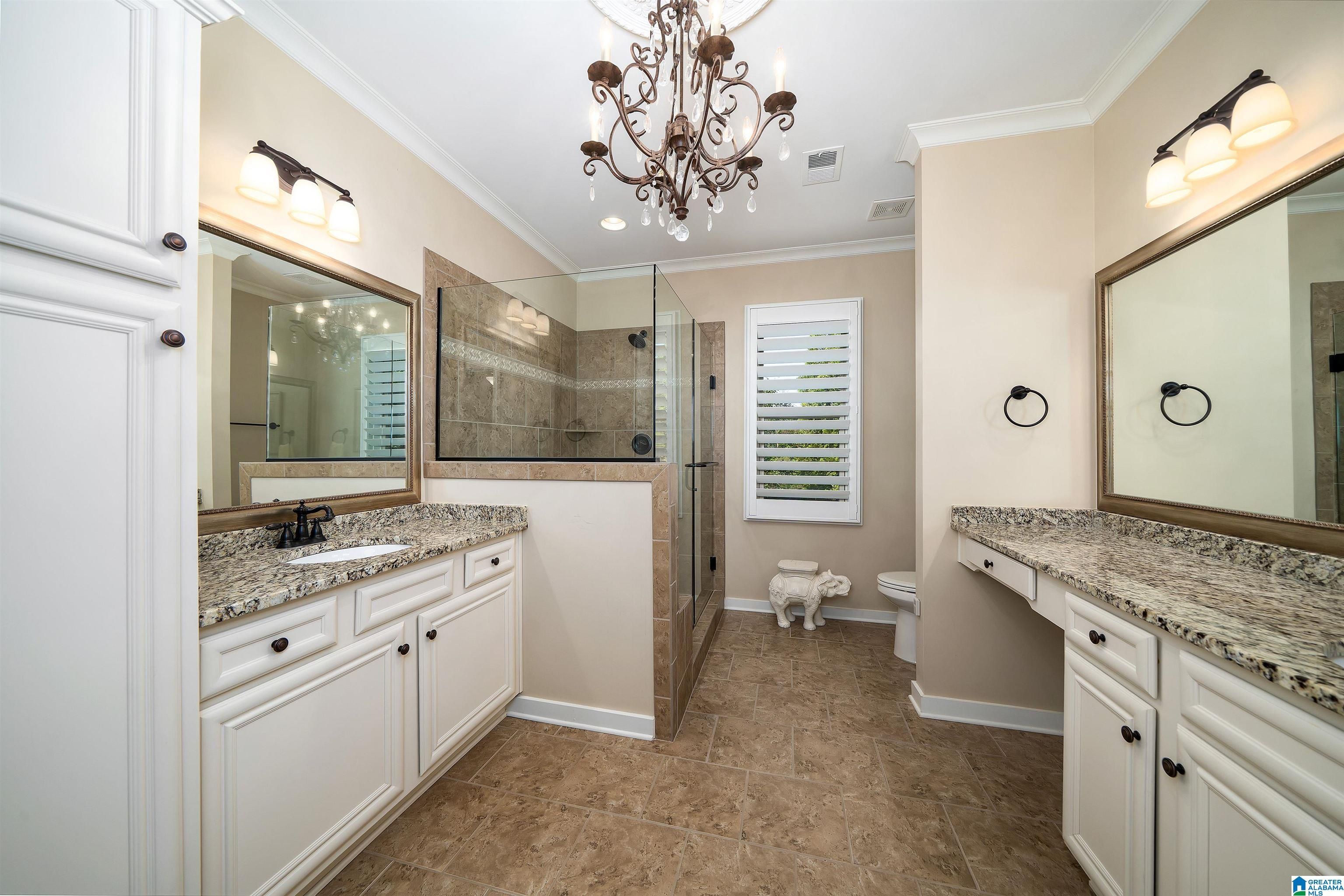 - Recessed Lighting, Attic, Double Shower, Garden Tub, Linen Closet, Separate Shower, Double Vanity, Tub Shower, Walk-In Closet(s), High Ceilings, Cathedral Ceiling(s), Crown Molding, Smooth Ceilings, Tray Ceiling(s), Solid Surface Counters, Stone Counters, Breakfast Bar, Eat-in Kitchen, Kitchen Island, Pantry, Window Treatments