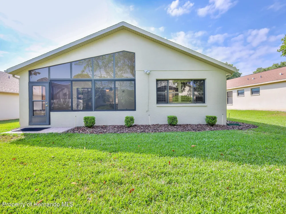 IMMACULATE 2-BEDROOM PATIO HOME IN THE WELLINGTON, a 55+ COMMUNITY. This fully renovated Lantana model 2-bedroom, 2-bath patio home in The Wellington community is packed with upgrades and ready for immediate occupancy. Inside, you'll find vinyl plank flooring, granite countertops, a tile backsplash, newer appliances, and an under-counter water filtration system in the kitchen. Plantation shutters add a clean, finished look throughout. The large master suite features a walk-in closet and a beautifully updated bath with a walk-in shower, frameless glass door, and grab rails for added safety. The spacious lanai features acrylic windows and opens to a private patio and nicely landscaped backyard. The two-car garage includes a side entry door, full screening, washer, dryer, and laundry tub. The home is also fully guttered with leaders, and a beautifully acrylic-painted driveway and walkway. Comfort, convenience, and quality all come together in this well-maintained home located in a quiet, amenity-rich community. Come see this fabulous listing and explore the stunning community, known for its wide, beautifully landscaped streets and sidewalks. Enjoy peace of mind with a 24-hour manned security gatehouse. Residents have access to a year-round heated pool, bar and grill, tennis and pickleball courts, a billiard room, library and computer center, bocce courts, and too many social events to list. Come and enjoy the Wellington lifestyle!