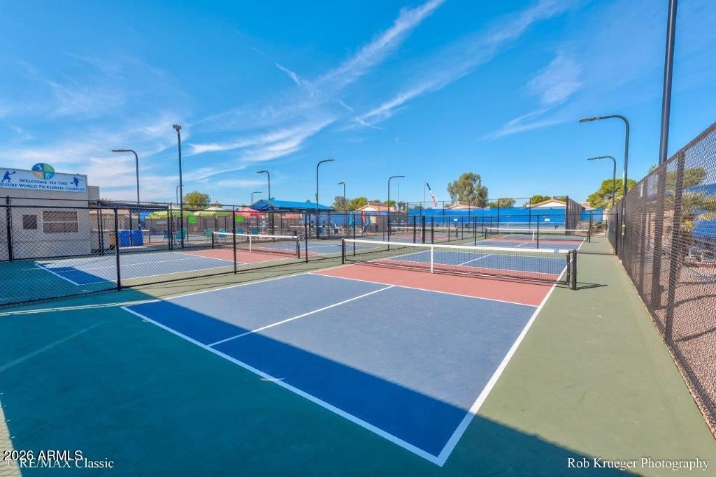 - Pool, Golf, Pickleball, Gated, Community Spa Htd, Community Media Room, Guarded Entry, Tennis Court(s), Biking/Walking Path, Fitness Center
