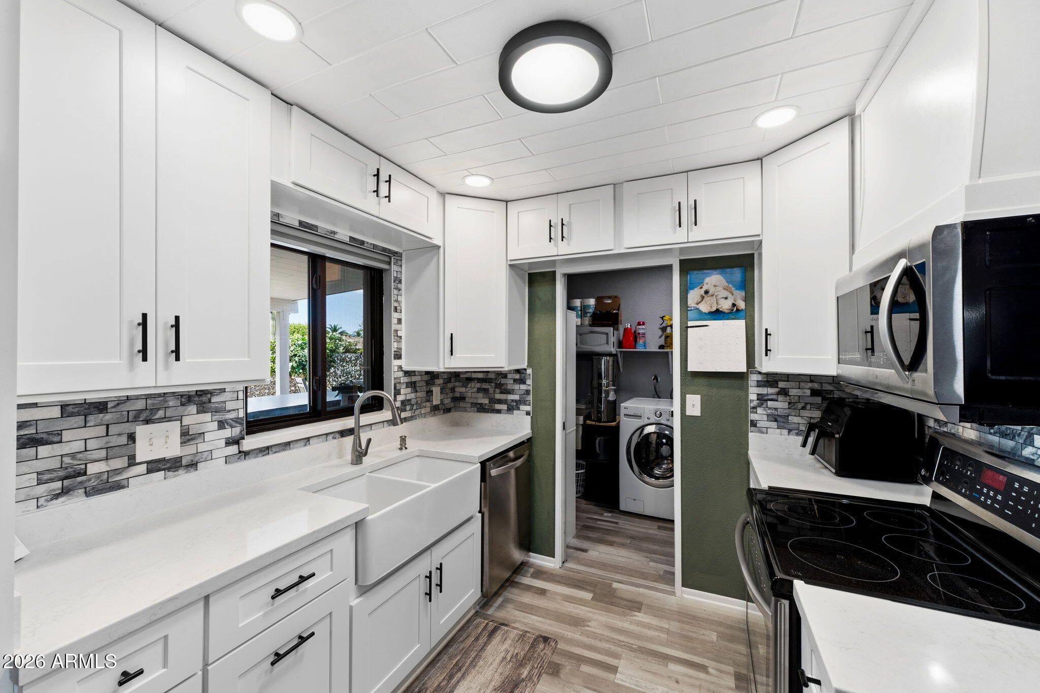 - Dryer, Washer, Refrigerator, Built-in Microwave, Dishwasher, Disposal, Electric Range