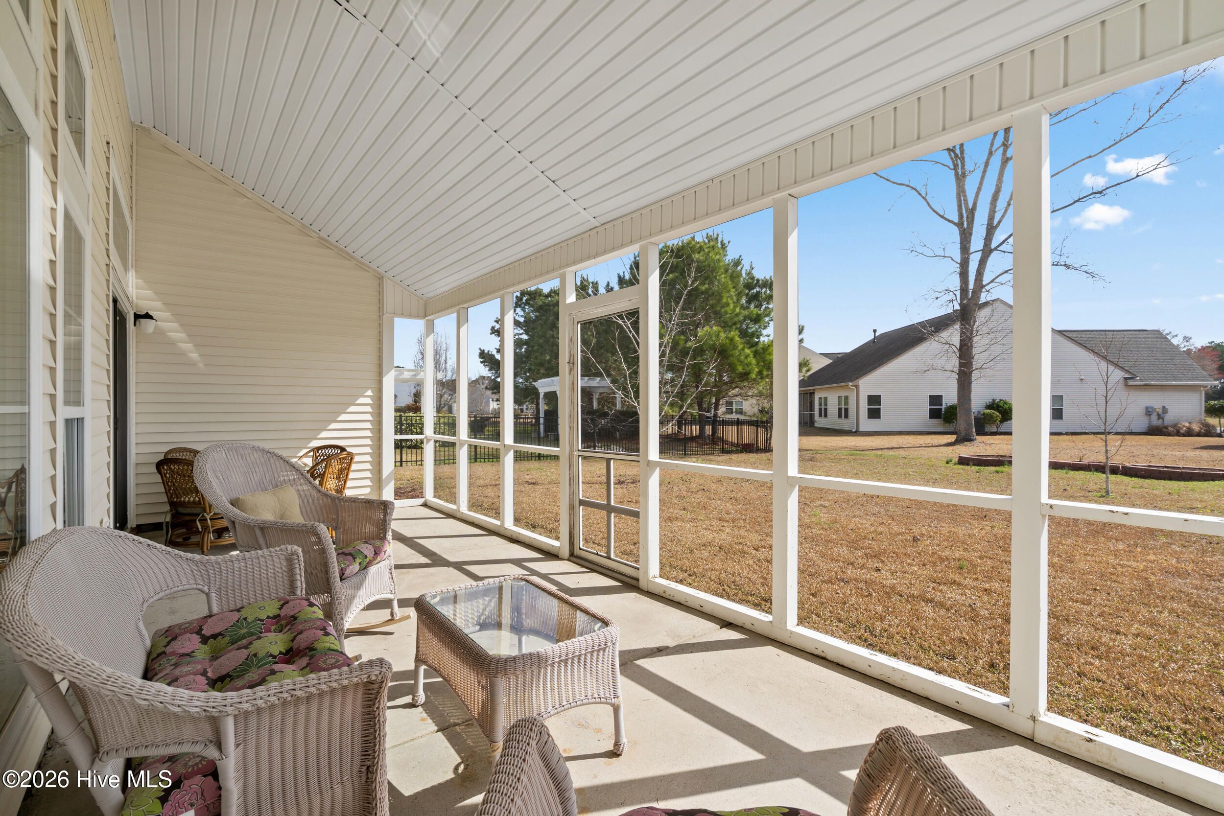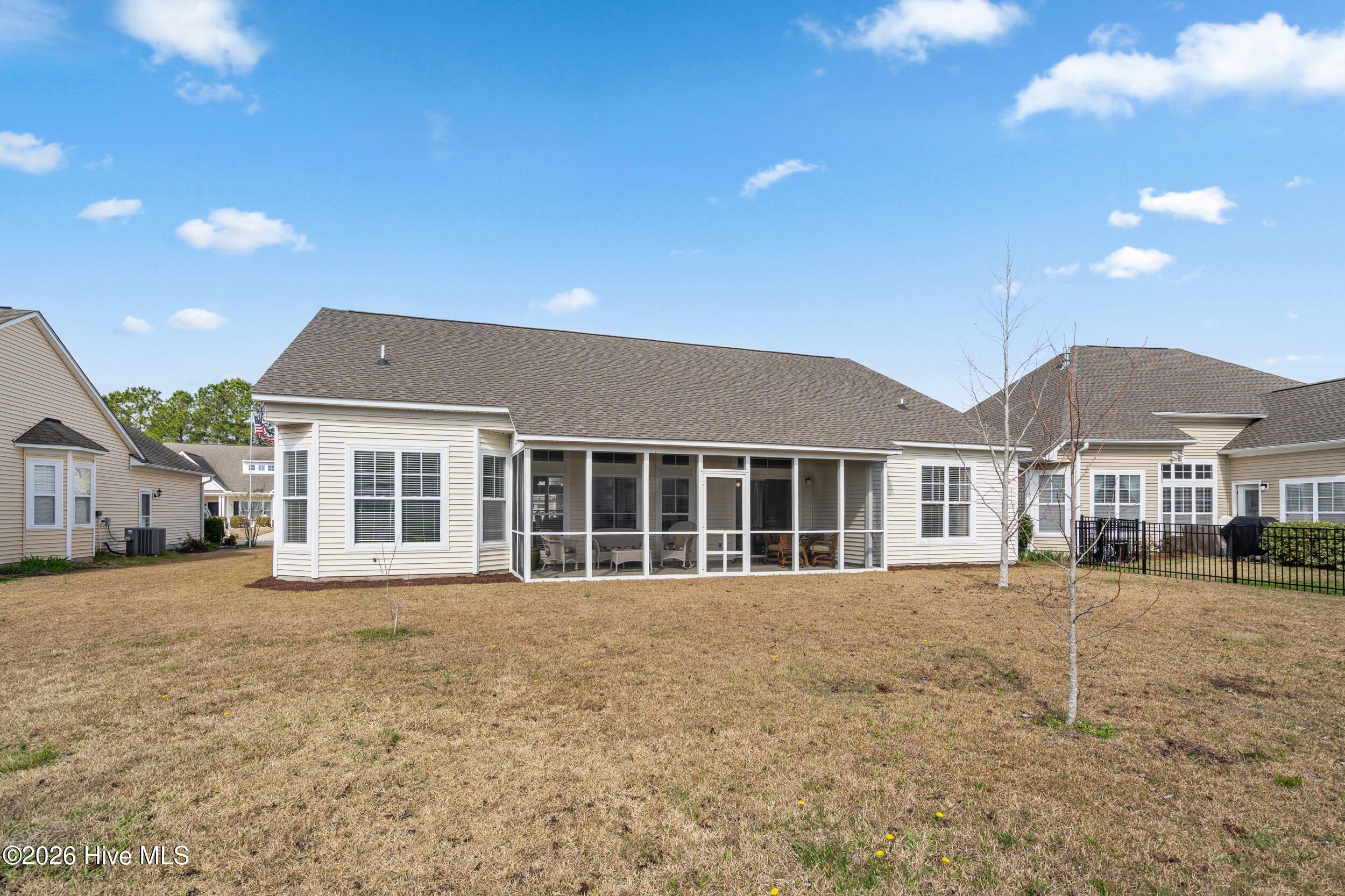 Welcome to this spacious brick-front home in the highly sought-after golf course community of Meadowlands at Savanna Lakes, in Calabash, NC. Designed with comfort and everyday living in mind, this well-maintained 4-bedroom, 2.5-bath home offers approximately 2,249+/- heated square feet and a bright, open floor plan with high ceilings and a desirable split-bedroom layout for added privacy. The large kitchen provides abundant cabinetry, an inviting eat-in area and opens seamlessly to the main living space, perfect for entertaining family and friends. The spacious owner's suite features a walk-in closet and a private bath with double sinks, a relaxing garden tub, and a separate shower. Additional highlights include main-level laundry, three comfortable guest bedrooms, a well-appointed guest bathroom and convenient half bath, ample storage, pull-down attic access, and an attached two-car side-entry garage. Step outside to the screened porch overlooking the backyard--an ideal spot for morning coffee or casual evening dining. A new roof installed in 2024 adds additional peace of mind. Residents enjoy outstanding community amenities including a resort-style pool, clubhouse with fitness center, billiards, ping-pong, and an active social calendar. Golf enthusiasts will love that this home is just a short walk or golf cart ride to the beautiful Meadowlands GC clubhouse, as well as the community clubhouse and pool. Conveniently located near the seafood restaurants of Calabash and about 15 minutes from the beautiful beaches of Sunset Beach, Ocean Isle Beach, and North Myrtle Beach, this home offers easy access to boating, fishing, golf, shopping, and the very best of coastal Carolina living. Call today!