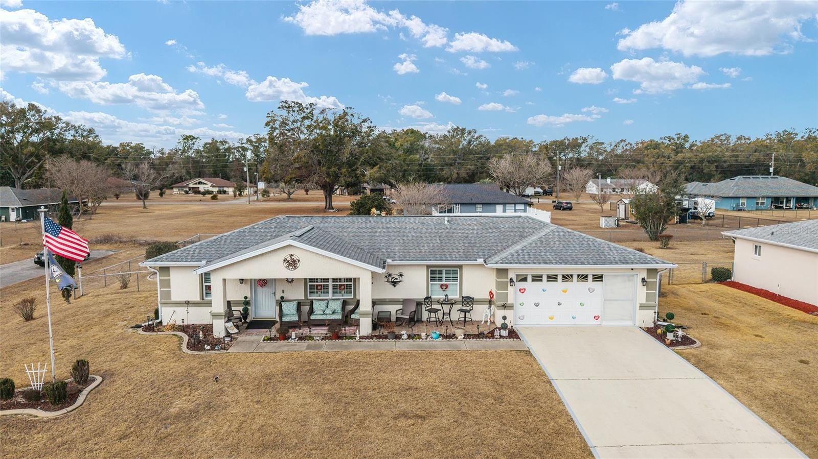 Set in Cherrywood Estates (Cherrywood), a well-known Ocala 55+ community, this solid block home delivers the low-maintenance Florida lifestyle with the upgrades buyers want and the everyday conveniences close by. Positioned on a desirable corner lot, the home offers great curb appeal and extra breathing room—perfect for enjoying outdoor space, entertaining, or simply having a little more privacy. Step inside and you’ll immediately notice the vaulted ceilings that open up the main living areas with an airy, inviting feel. Plantation shutters throughout add timeless character while also giving you excellent light control and privacy. Out back, the lanai becomes your everyday retreat—ideal for morning coffee, evening unwinding, and indoor-outdoor living year-round. Practicality is just as strong here, with an in-home laundry room that keeps daily life easy and tucked away. The big-ticket updates are already handled, so you can move in with confidence: New Roof, HVAC from 2017, and fresh paint for a clean, updated presentation. Add in the updated bathroom showers and the garage epoxy floor, and you’ve got a home that’s been improved where it matters most—comfort, durability, and day-to-day function. Location-wise, this address puts you close to the essentials along Ocala’s southwest corridor. Grocery runs are simple with Publix (Cherrywood Market) nearby, and additional shopping and pharmacy options are close as well, including Walmart Neighborhood Market on SW Hwy 200—plus a wide range of restaurants and retail along the same corridor. If you’re looking for a home that blends corner-lot presence, comfortable interior volume, and major-update peace of mind—all in a community setting known for convenience—this one checks the boxes in a big way!