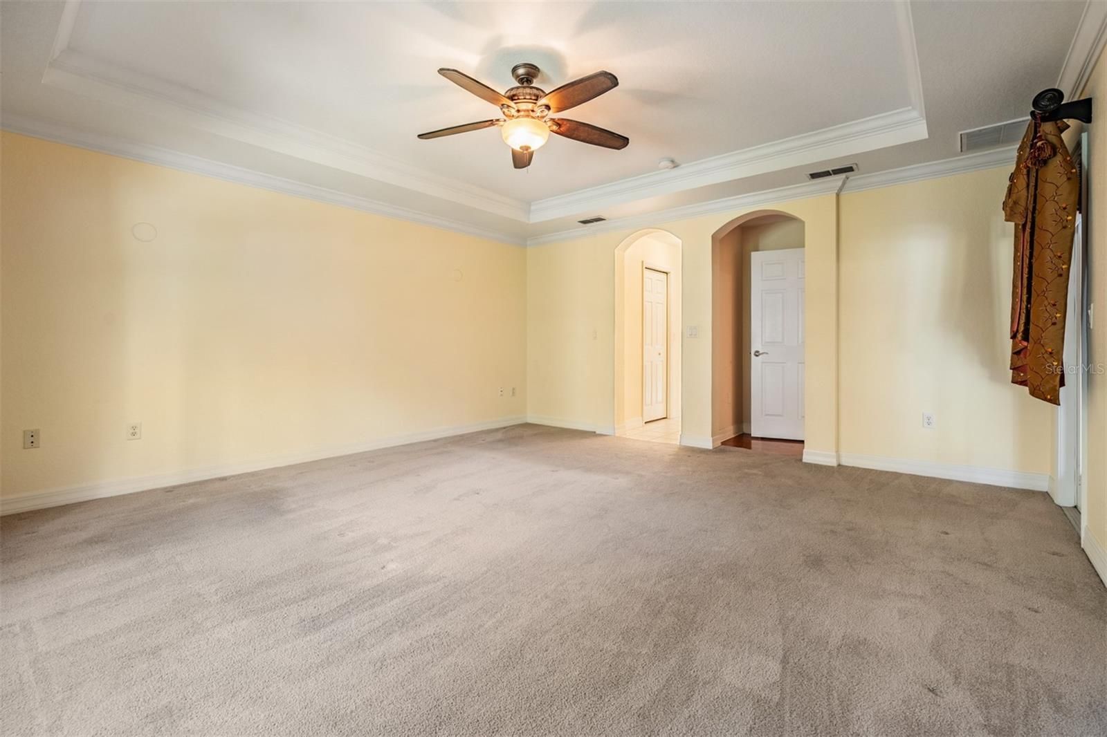 - Ceiling Fan(s), Eat-in Kitchen, High Ceilings, Open Floorplan, Stone Counters, Thermostat, Tray Ceiling(s), Walk-In Closet(s), Window Treatments