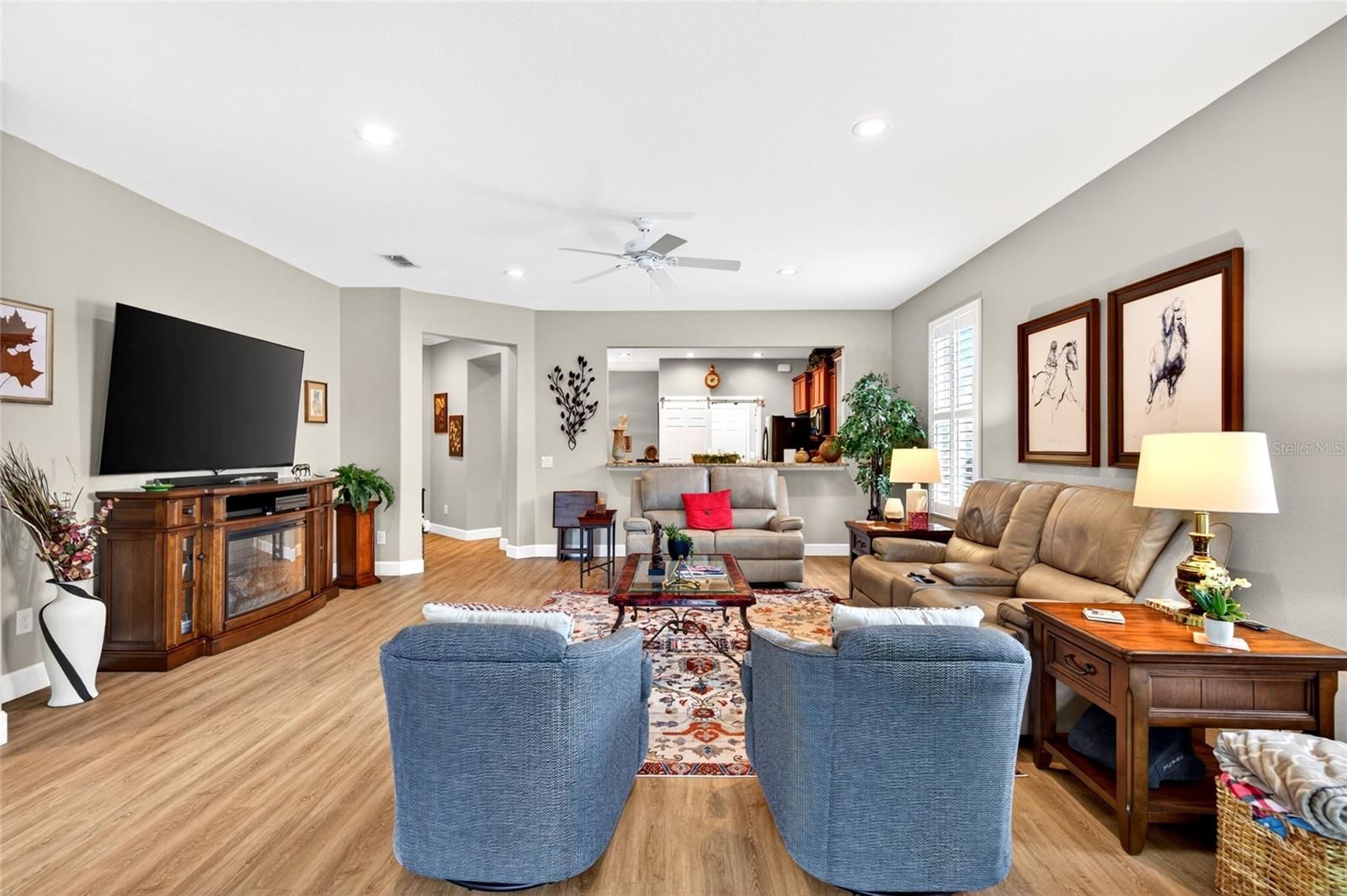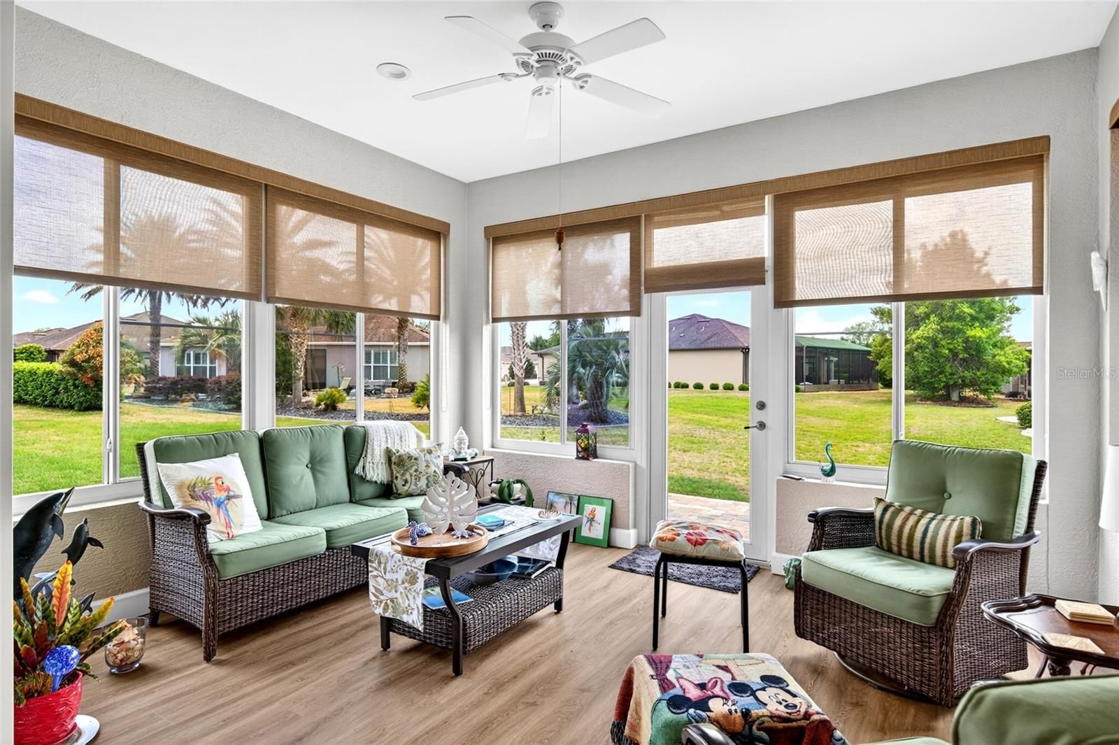 Beautifully updated Surrey Crest model located in the desirable Stone Creek of On Top of The World is now available! As soon as you arrive at this residence there is a statement from the outside curb appeal offering a custom driveway, and mature landscaping on the front exterior. Upon walking up to the entry, you will be pleasantly greeted by a large covered porch, perfect for mornings with coffee. When you enter the residence you will find an abundance of natural light flowing from corner to corner, and new luxury vinyl plank throughout the entire home. At the heart of the home, the kitchen offers newer stainless steel appliances with granite countertops and an island for dicing along with 42' inch cabinets with crown molding. An eat in area is shared with the kitchen that allows for a dining room table fitting 6. The large living room provides ample entertaining space for guests to join in as well. The master suite can seamlessly fit a king sized bed set and has an updated ensuite master bathroom. A large, brand new tiled stand up shower in the ensuite compliments the dual sinks and private water closet. Bring all your clothes for the walk-in closet as well! This model offers a spare bedroom at the font of the home along with a den area perfect for an office space or DYI room. One of the greatest compliments to this home is there are custom plantation shutters throughout for keeping the Florida sunlight to your liking. Off of the living room is the Florida room with an oversized 3 door sliding glass entry. Easily made under air or opening up with windows to let the fresh Florida air inside. Back porch features a paver patio with a remote controlled sun setter shade, and gorgeous sun set views in the evenings. Newer big ticket components include 2023 architectural roof, and 2017 newer HVAC. NO CDD HERE! You also own the land. Home comes with irrigation system already in place. With a LOW HOA of $265.44 you enjoy access to multiple pools, tennis courts, pickleball, miles of walking trails, sidewalks, golf course (additional playing fee), clubhouse, and many more activities! Florida lifestyle living at its finest, come and see it today!