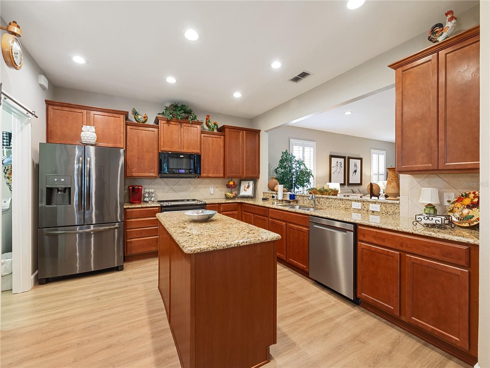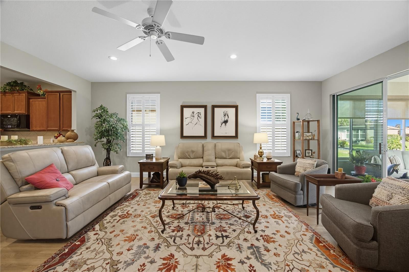 Welcome to this beautifully maintained Surrey Crest model in the highly desirable 55+ community of Del Webb Stone Creek. This home offers 2 bedrooms, 2 bathrooms, plus a versatile flex room, perfect for an office, hobby space, or guest room. Inside, you’ll find luxury vinyl flooring throughout for a seamless, modern look, complemented by granite countertops that add style and durability. The primary suite features a tiled zero-drop walk-in shower, combining both elegance and accessibility. A new roof installed in 2023 adds peace of mind and lasting value. The home also includes an enclosed sunroom, providing year-round comfort and a relaxing spot to enjoy your morning coffee or evening unwind. Step outside to the paver patio, ideal for outdoor dining or entertaining, and take advantage of the widened driveway with paver stones for added convenience and curb appeal. Del Webb Stone Creek is a premier lifestyle community where residents enjoy a resort-like atmosphere every day. The community features a championship golf course, multiple pools, fitness centers, and a variety of clubs and activities to match every interest. With scenic walking trails, pickleball and tennis courts, and a grand clubhouse offering endless social opportunities, you’ll find the perfect balance of relaxation and recreation right at your doorstep.