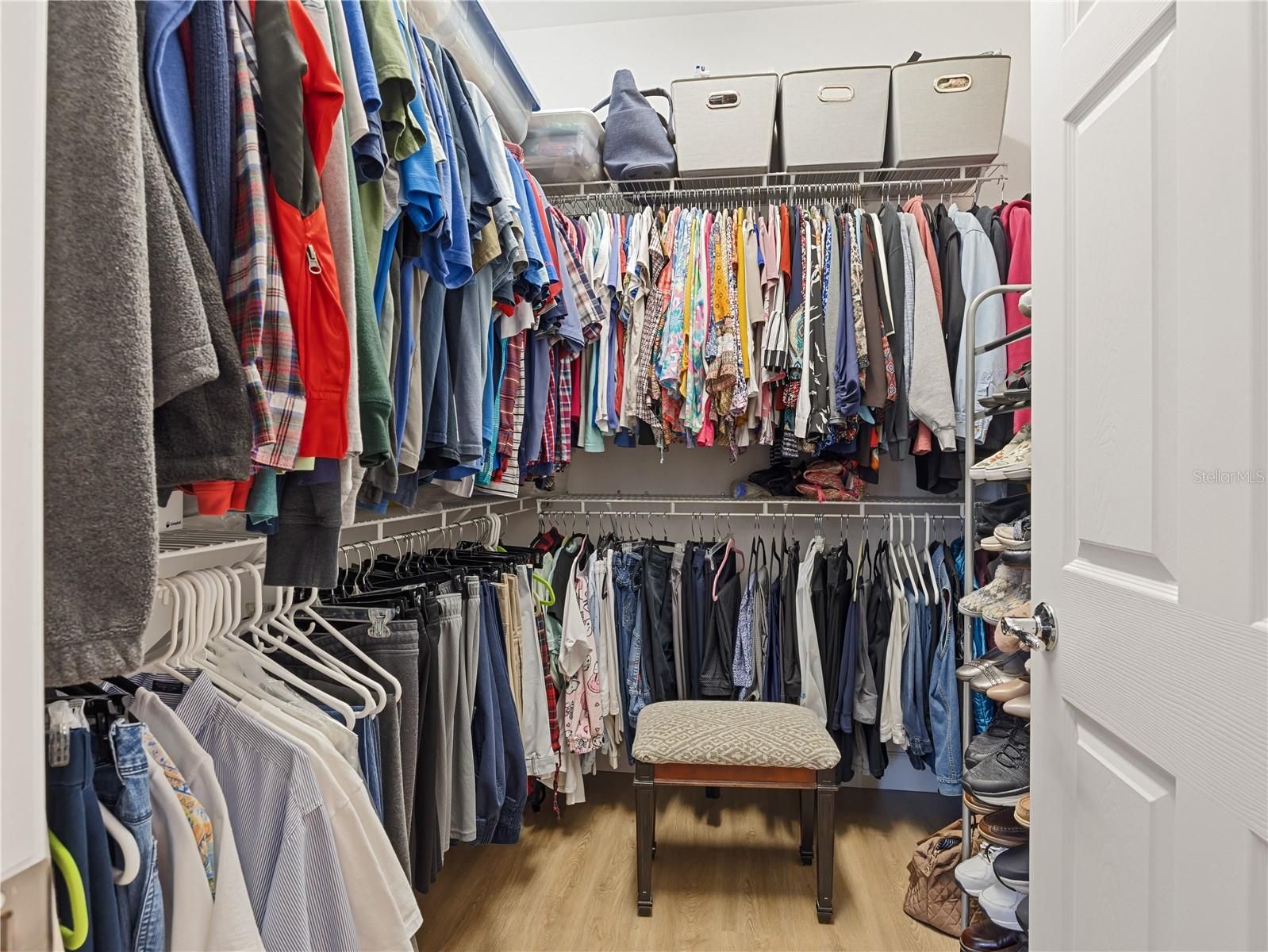 - Ceiling Fan(s), High Ceilings, Living/Dining Room, Open Floorplan, Main Level Primary, Stone Counters, Thermostat, Walk-In Closet(s)