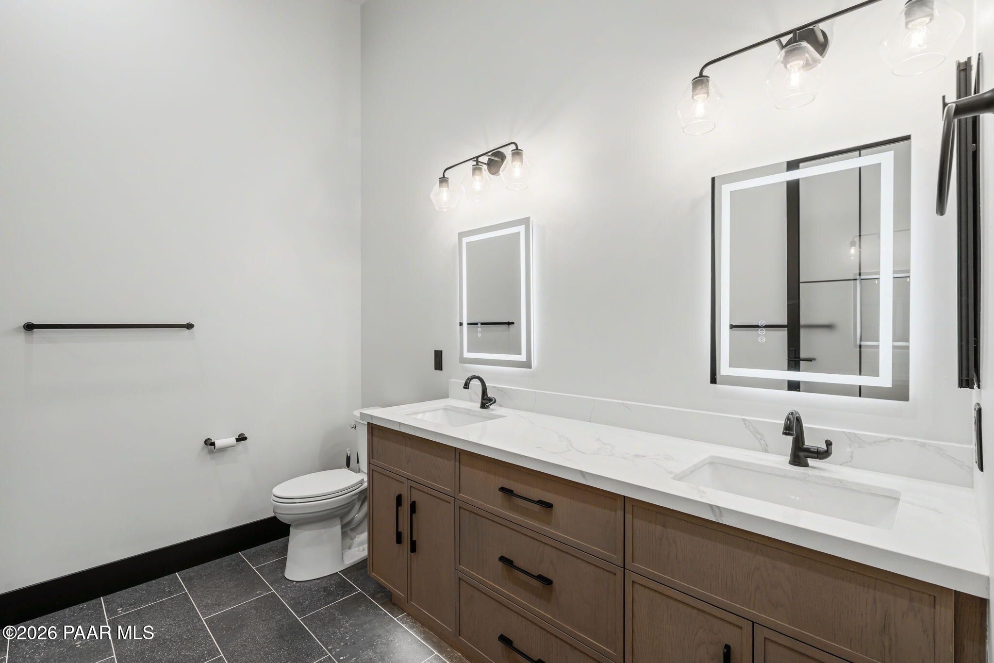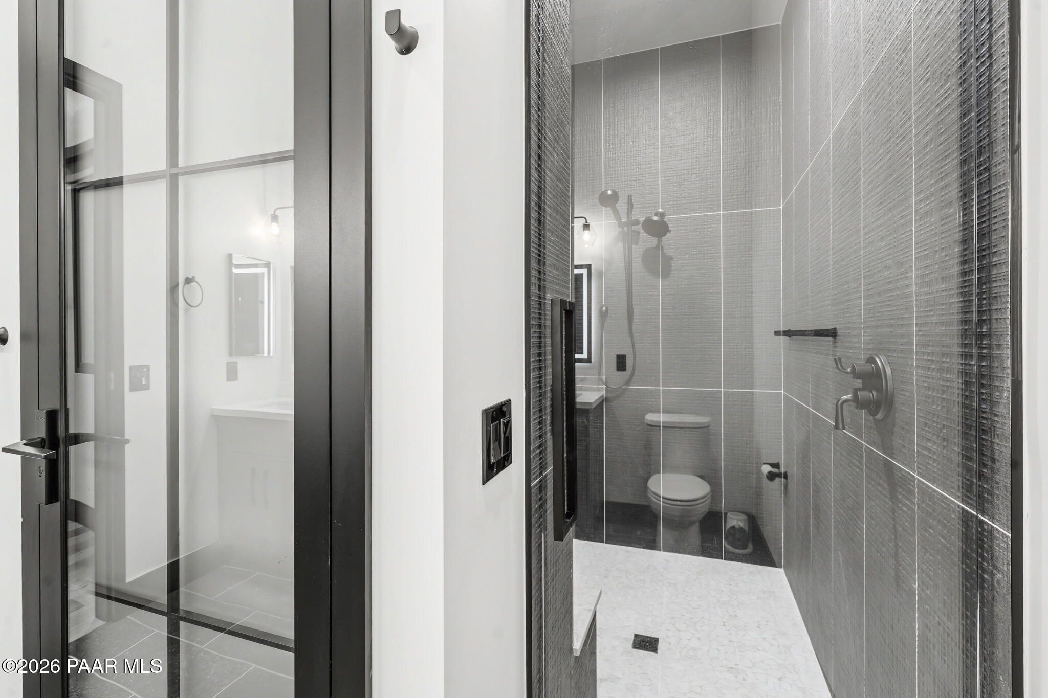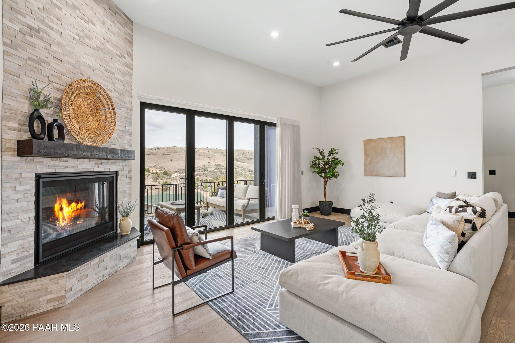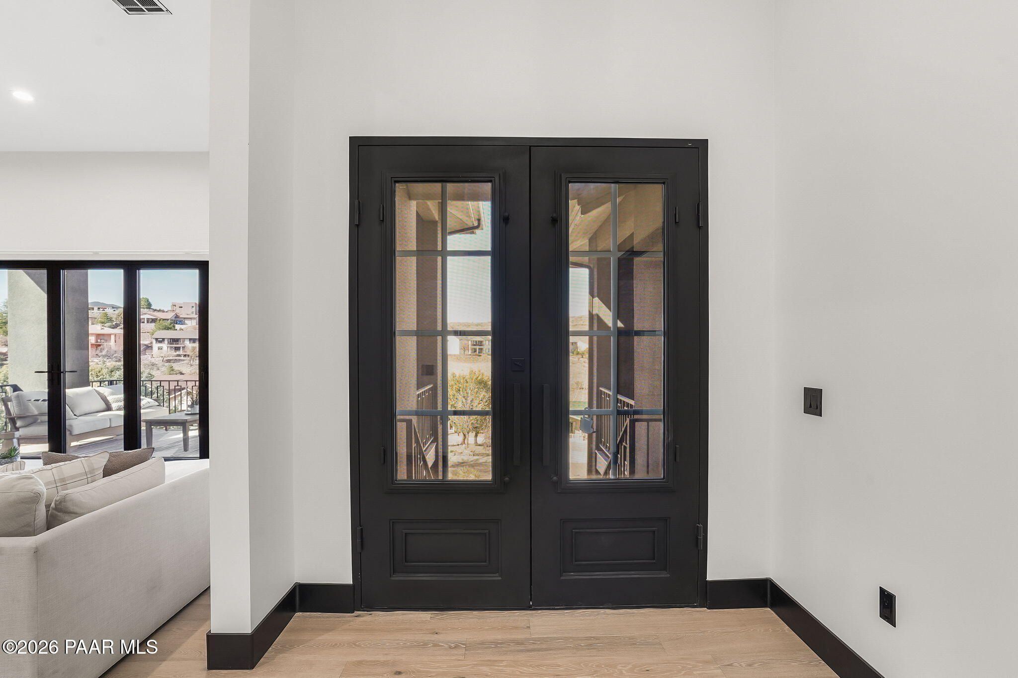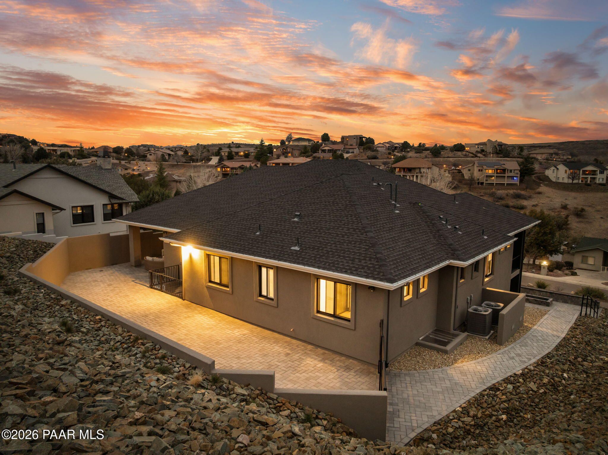 Welcome to this stunning brand new custom estate-built masterpiece nestled in the prestigious Yavapai Hills. Experience unparalleled craftsmanship in this architectural gem seamlessly blends high-end industrial elegance with the warmth of a modern sanctuary.Step through exquisite custom iron doors into a breathtaking main level featuring soaring ceilings and an abundance of natural light pouring through custom European-style windows, perfectly framing the breathtaking views visible from your expansive patio deck. Bi-fold doors seamlessly connect indoor and outdoor living, making this home ideal for savoring Arizona's crisp air, spectacular sunsets, and serene surroundings. No expense was spared in the finishes: Unique Custom Doors: Every bedroom, bathroom, and closet is fitted with sleek aluminum semi-glass doors- a signature touch rarely seen in residential builds. Designer Storage: All bedrooms feature custom closets with integrated high-end cabinetry. Spa-Like Baths: Beautifully curated bathrooms with designer fixtures and premium tile work.A rare and remarkable bonus: the impressive mother-in-law suite or secondary living quarters functions like a complete second home:featuring 10-foot ceilings, its own kitchen, dining and living areas, a dedicated laundry room, direct garage access, 3 bedrooms, and 2 bathrooms -- perfect for multi-generational living, guests, or potential rental income.Step outside to discover a thoughtfully designed exterior with extended privacy: Custom stair railing, a paver driveway leads to the home, and the backyard features large pavers creating inviting, low-maintenance spaces for peaceful outdoor living with exceptional privacy.