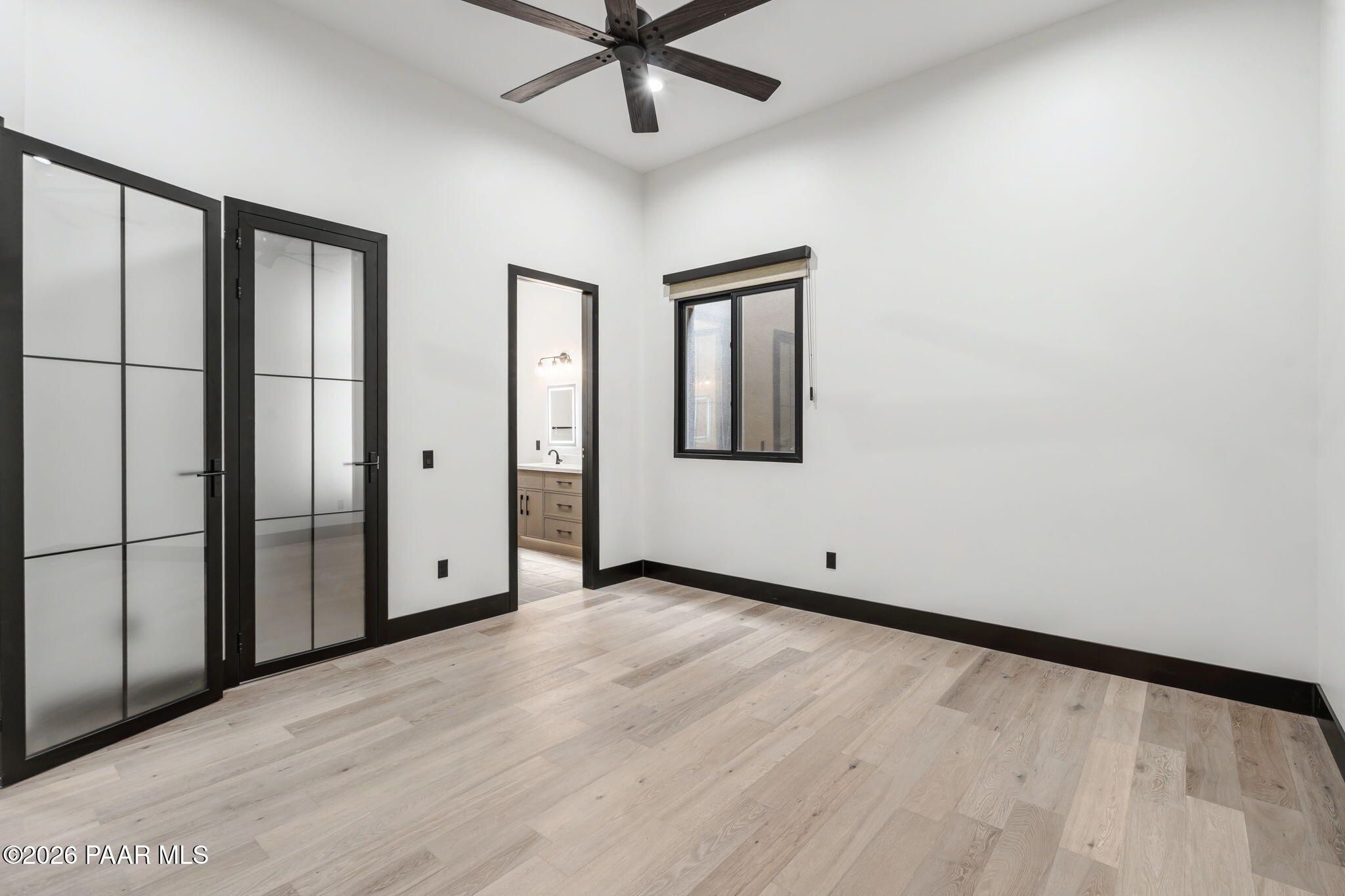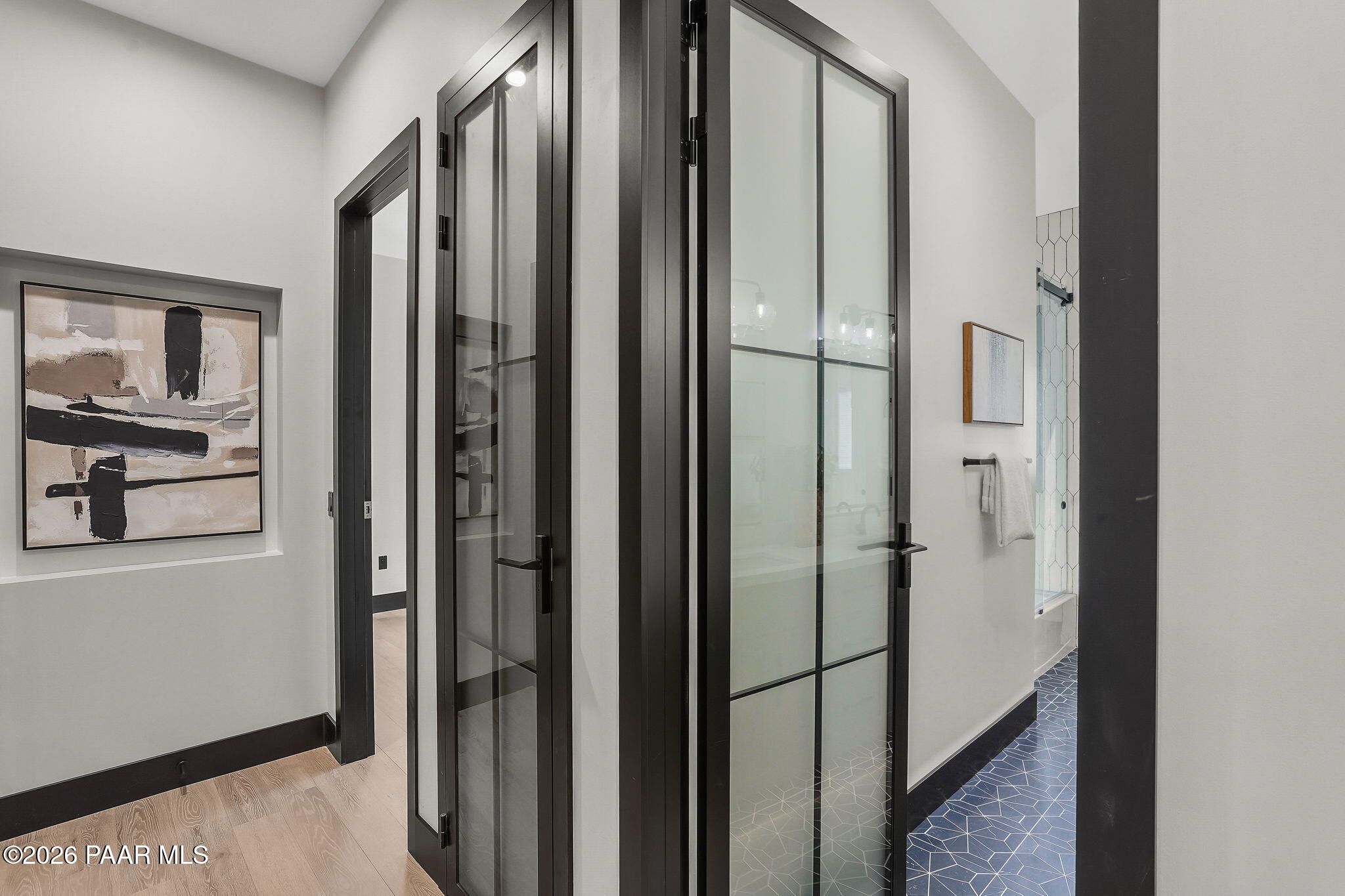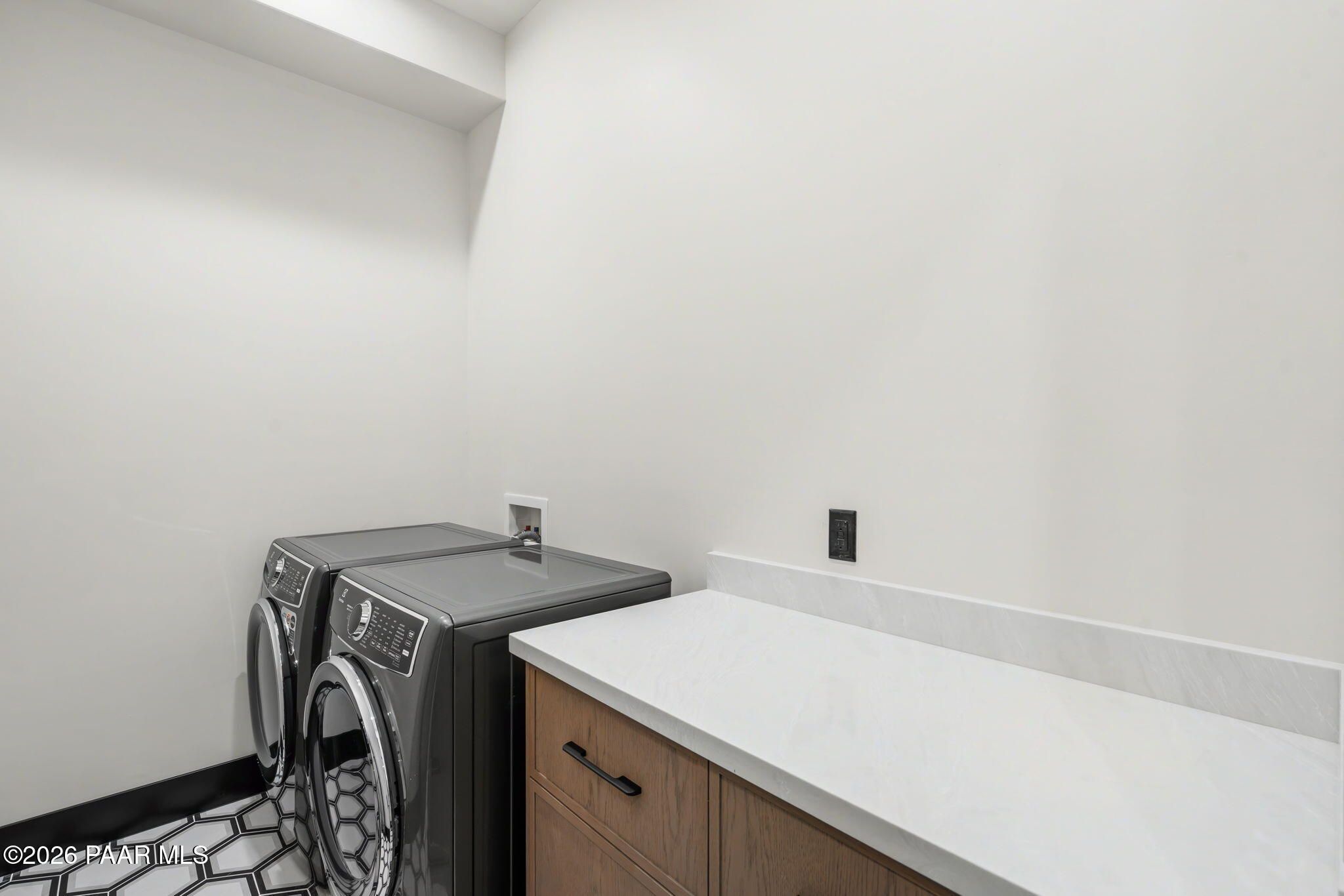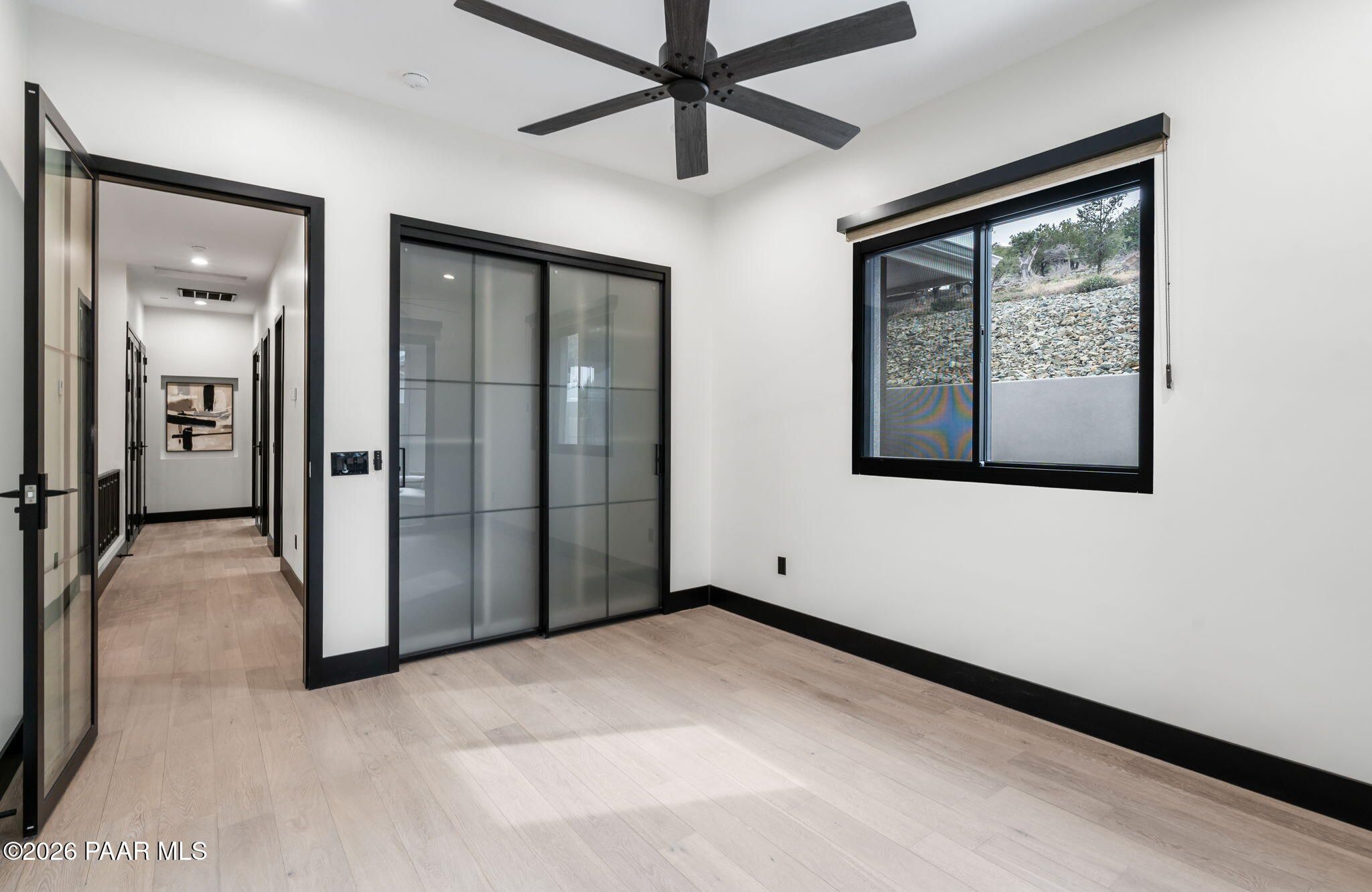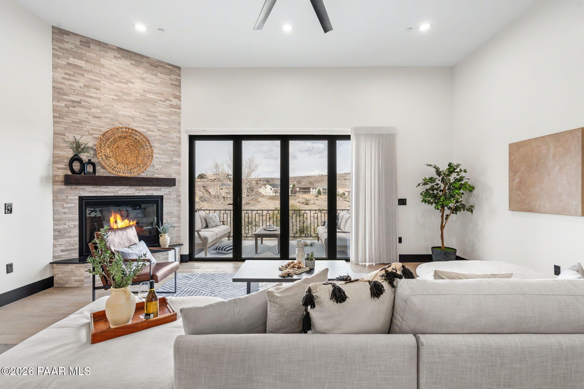 Welcome to this stunning brand new custom estate-built masterpiece nestled in the prestigious Yavapai Hills. Experience unparalleled craftsmanship in this architectural gem seamlessly blends high-end industrial elegance with the warmth of a modern sanctuary.Step through exquisite custom iron doors into a breathtaking main level featuring soaring ceilings and an abundance of natural light pouring through custom European-style windows, perfectly framing the breathtaking views visible from your expansive patio deck. Bi-fold doors seamlessly connect indoor and outdoor living, making this home ideal for savoring Arizona's crisp air, spectacular sunsets, and serene surroundings. No expense was spared in the finishes: Unique Custom Doors: Every bedroom, bathroom, and closet is fitted with sleek aluminum semi-glass doors- a signature touch rarely seen in residential builds. Designer Storage: All bedrooms feature custom closets with integrated high-end cabinetry. Spa-Like Baths: Beautifully curated bathrooms with designer fixtures and premium tile work.A rare and remarkable bonus: the impressive mother-in-law suite or secondary living quarters functions like a complete second home:featuring 10-foot ceilings, its own kitchen, dining and living areas, a dedicated laundry room, direct garage access, 3 bedrooms, and 2 bathrooms -- perfect for multi-generational living, guests, or potential rental income.Step outside to discover a thoughtfully designed exterior with extended privacy: Custom stair railing, a paver driveway leads to the home, and the backyard features large pavers creating inviting, low-maintenance spaces for peaceful outdoor living with exceptional privacy.