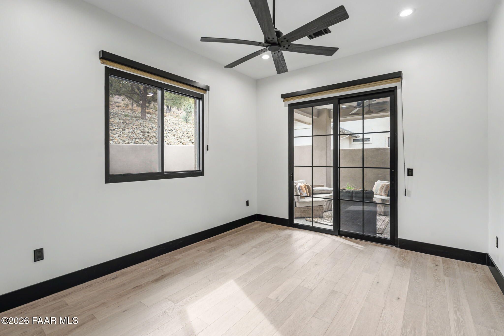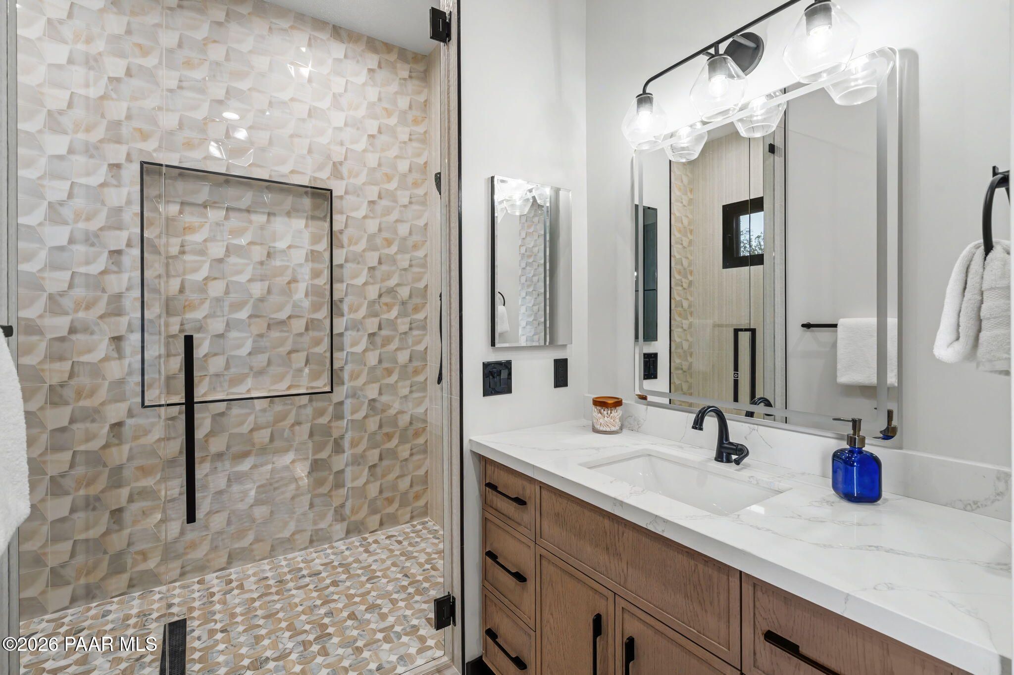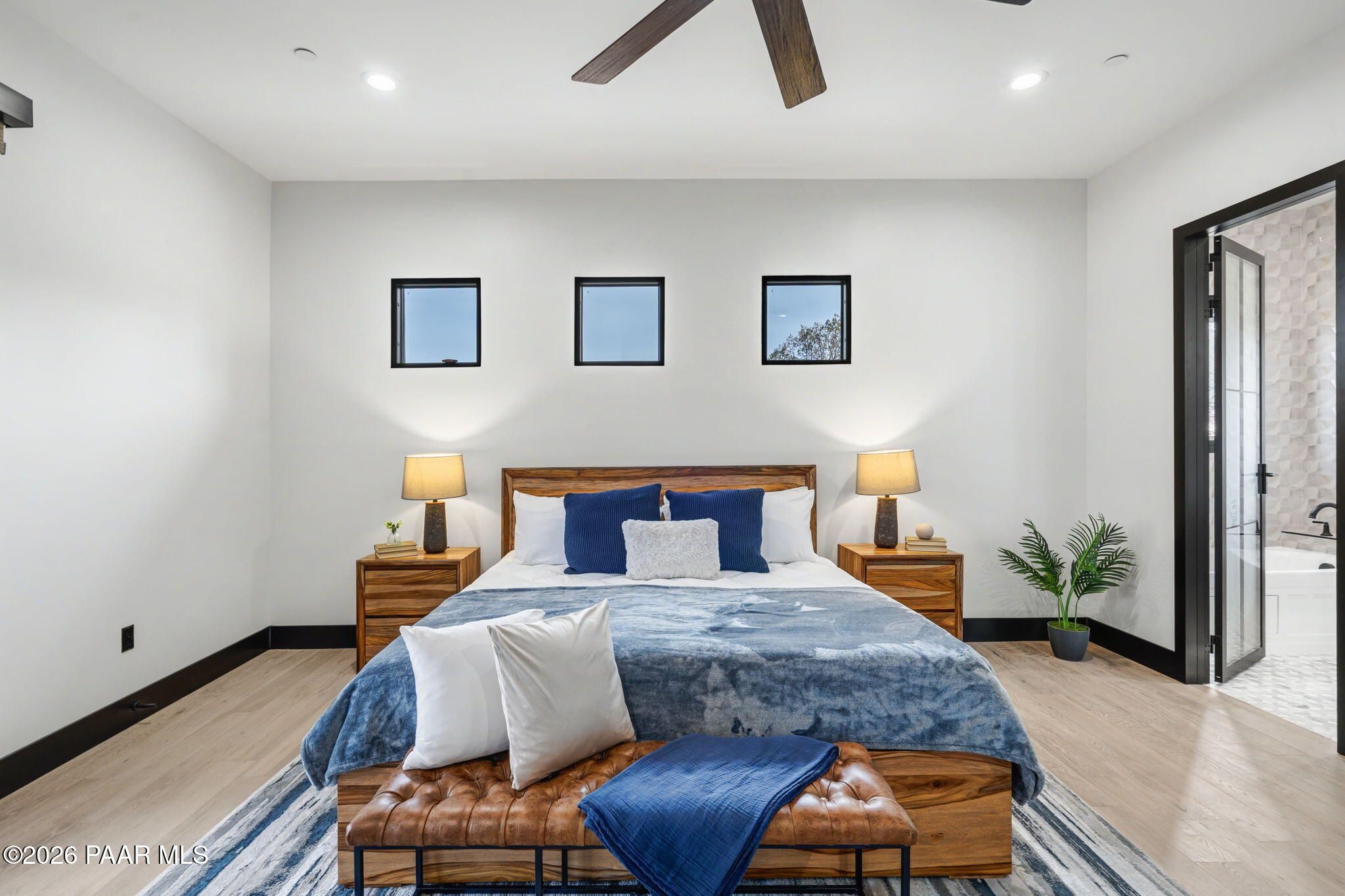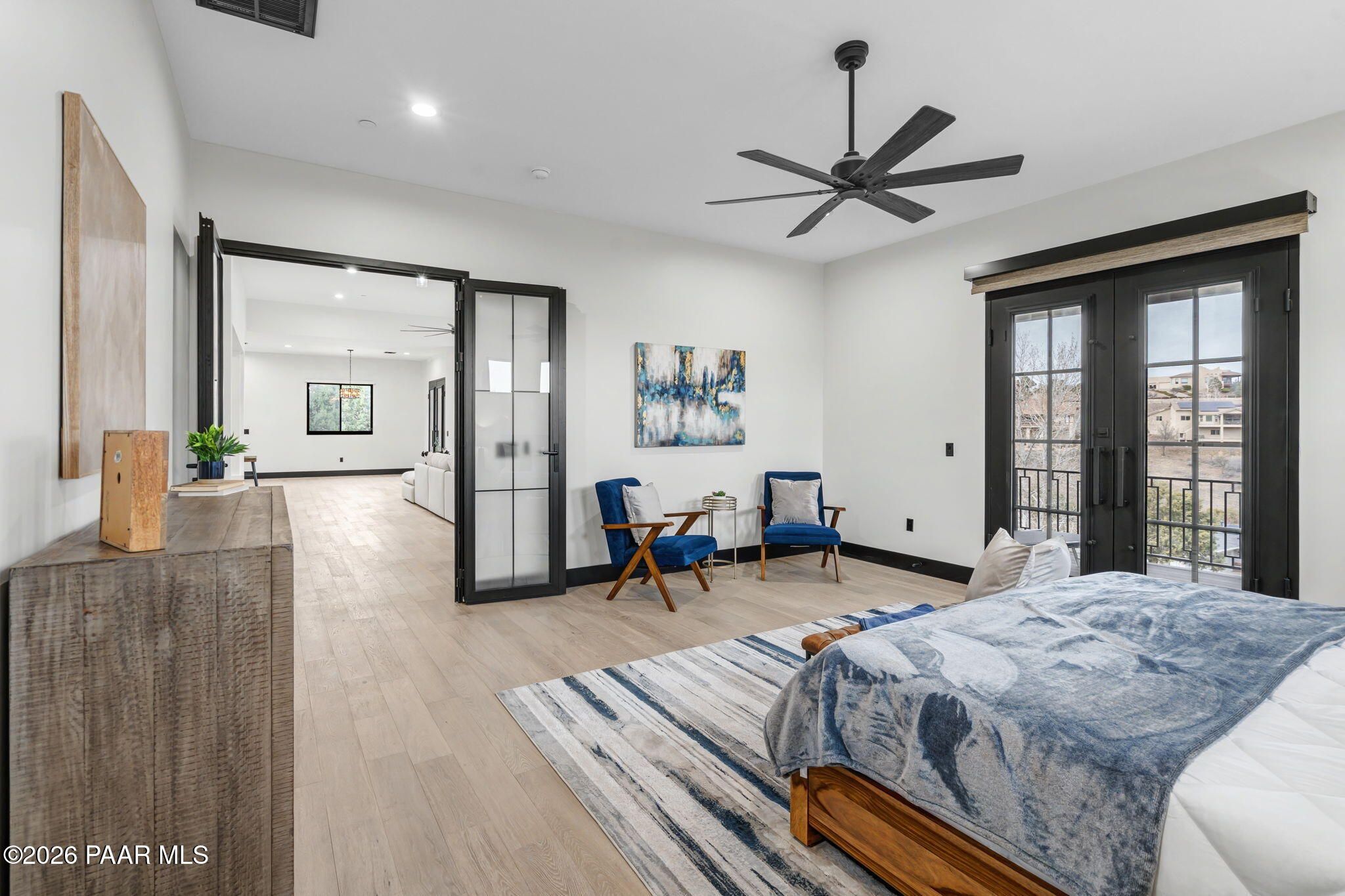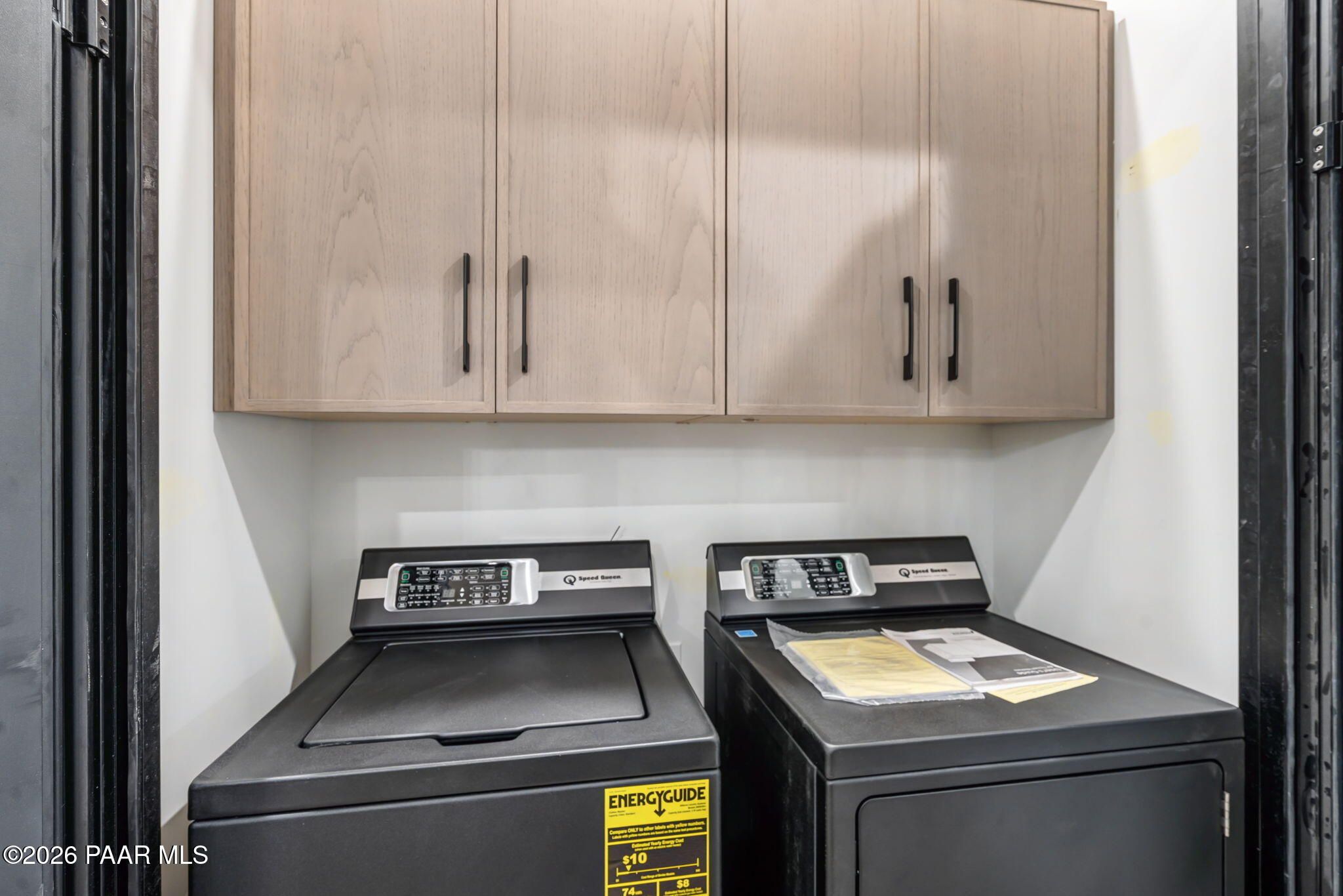 Welcome to this stunning brand new custom estate-built masterpiece nestled in the prestigious Yavapai Hills. Experience unparalleled craftsmanship in this architectural gem seamlessly blends high-end industrial elegance with the warmth of a modern sanctuary.Step through exquisite custom iron doors into a breathtaking main level featuring soaring ceilings and an abundance of natural light pouring through custom European-style windows, perfectly framing the breathtaking views visible from your expansive patio deck. Bi-fold doors seamlessly connect indoor and outdoor living, making this home ideal for savoring Arizona's crisp air, spectacular sunsets, and serene surroundings. No expense was spared in the finishes: Unique Custom Doors: Every bedroom, bathroom, and closet is fitted with sleek aluminum semi-glass doors- a signature touch rarely seen in residential builds. Designer Storage: All bedrooms feature custom closets with integrated high-end cabinetry. Spa-Like Baths: Beautifully curated bathrooms with designer fixtures and premium tile work.A rare and remarkable bonus: the impressive mother-in-law suite or secondary living quarters functions like a complete second home:featuring 10-foot ceilings, its own kitchen, dining and living areas, a dedicated laundry room, direct garage access, 3 bedrooms, and 2 bathrooms -- perfect for multi-generational living, guests, or potential rental income.Step outside to discover a thoughtfully designed exterior with extended privacy: Custom stair railing, a paver driveway leads to the home, and the backyard features large pavers creating inviting, low-maintenance spaces for peaceful outdoor living with exceptional privacy.