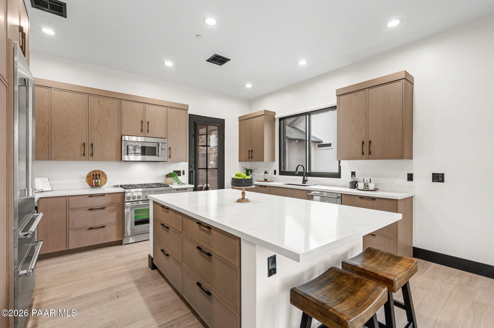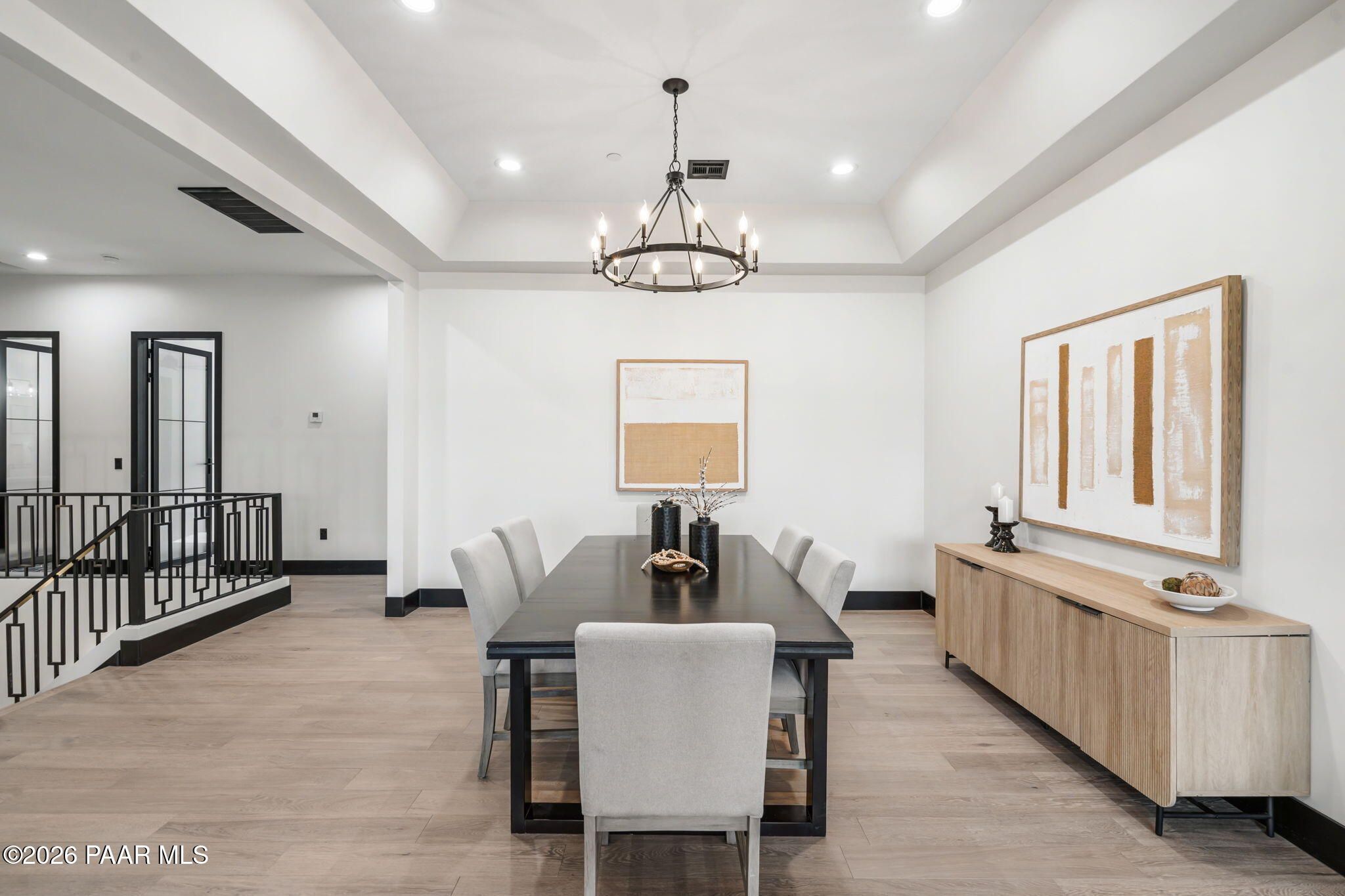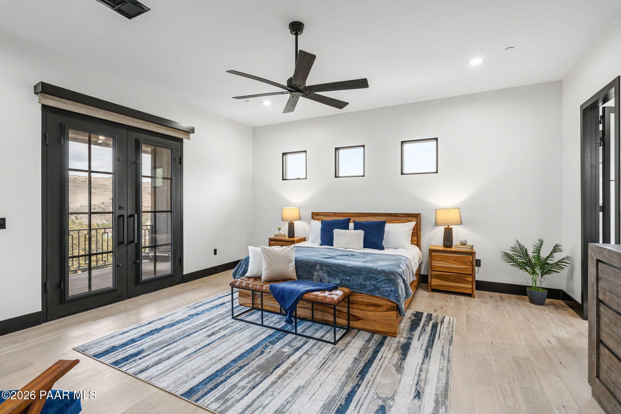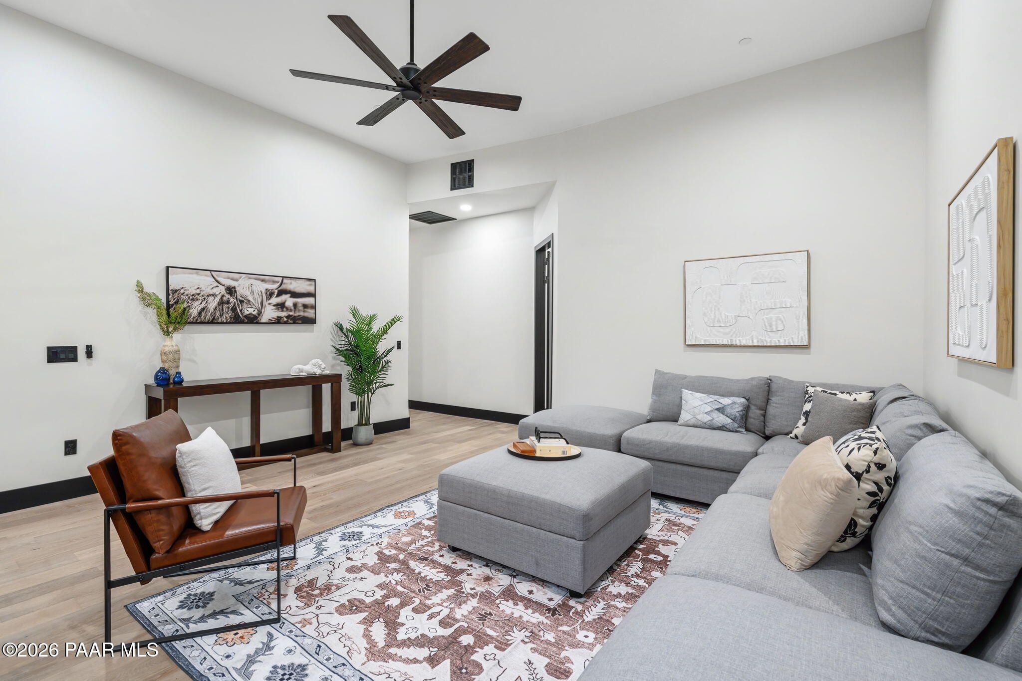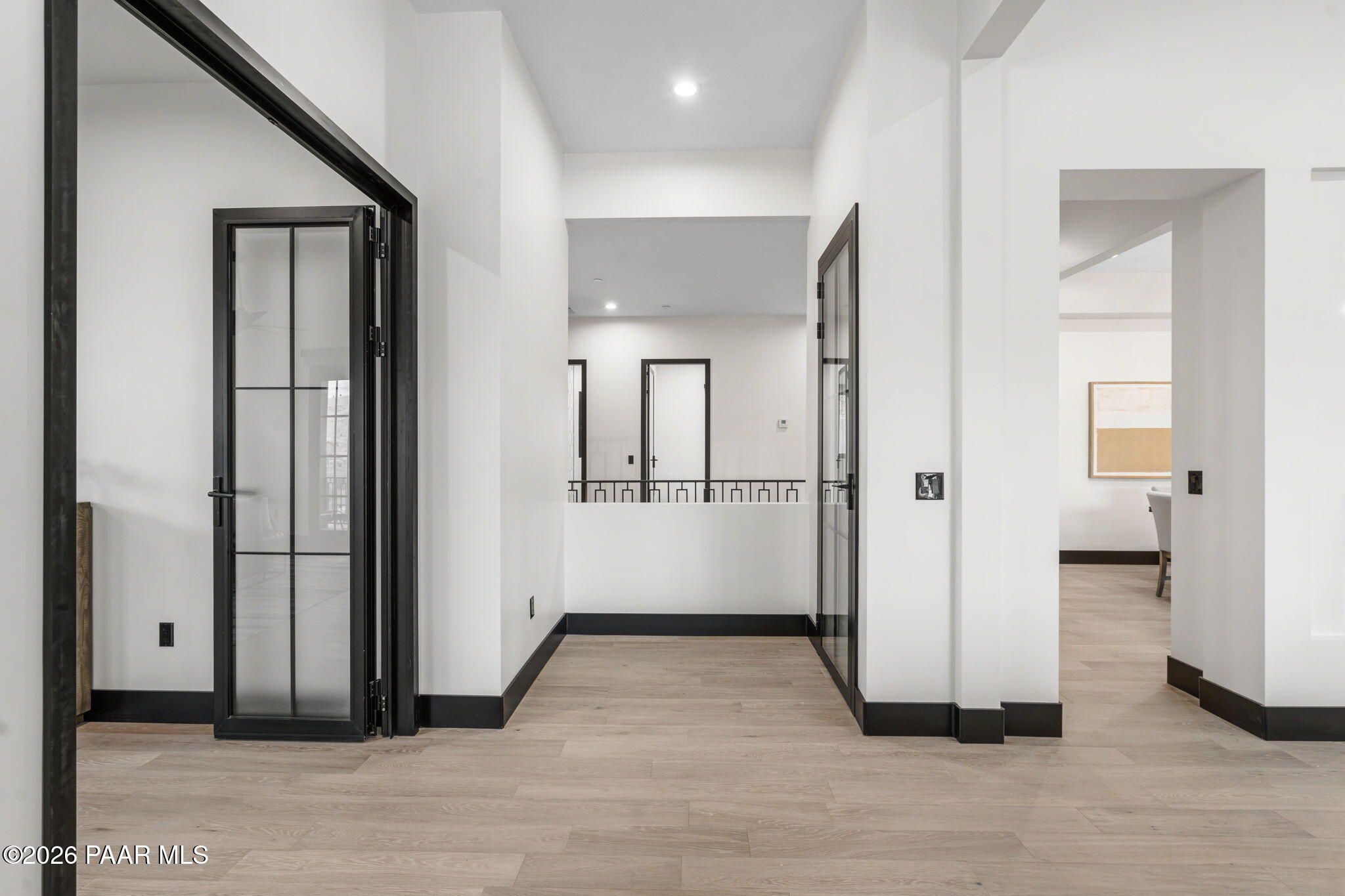 Welcome to this stunning brand new custom estate-built masterpiece nestled in the prestigious Yavapai Hills. Experience unparalleled craftsmanship in this architectural gem seamlessly blends high-end industrial elegance with the warmth of a modern sanctuary.Step through exquisite custom iron doors into a breathtaking main level featuring soaring ceilings and an abundance of natural light pouring through custom European-style windows, perfectly framing the breathtaking views visible from your expansive patio deck. Bi-fold doors seamlessly connect indoor and outdoor living, making this home ideal for savoring Arizona's crisp air, spectacular sunsets, and serene surroundings. No expense was spared in the finishes: Unique Custom Doors: Every bedroom, bathroom, and closet is fitted with sleek aluminum semi-glass doors- a signature touch rarely seen in residential builds. Designer Storage: All bedrooms feature custom closets with integrated high-end cabinetry. Spa-Like Baths: Beautifully curated bathrooms with designer fixtures and premium tile work.A rare and remarkable bonus: the impressive mother-in-law suite or secondary living quarters functions like a complete second home:featuring 10-foot ceilings, its own kitchen, dining and living areas, a dedicated laundry room, direct garage access, 3 bedrooms, and 2 bathrooms -- perfect for multi-generational living, guests, or potential rental income.Step outside to discover a thoughtfully designed exterior with extended privacy: Custom stair railing, a paver driveway leads to the home, and the backyard features large pavers creating inviting, low-maintenance spaces for peaceful outdoor living with exceptional privacy.