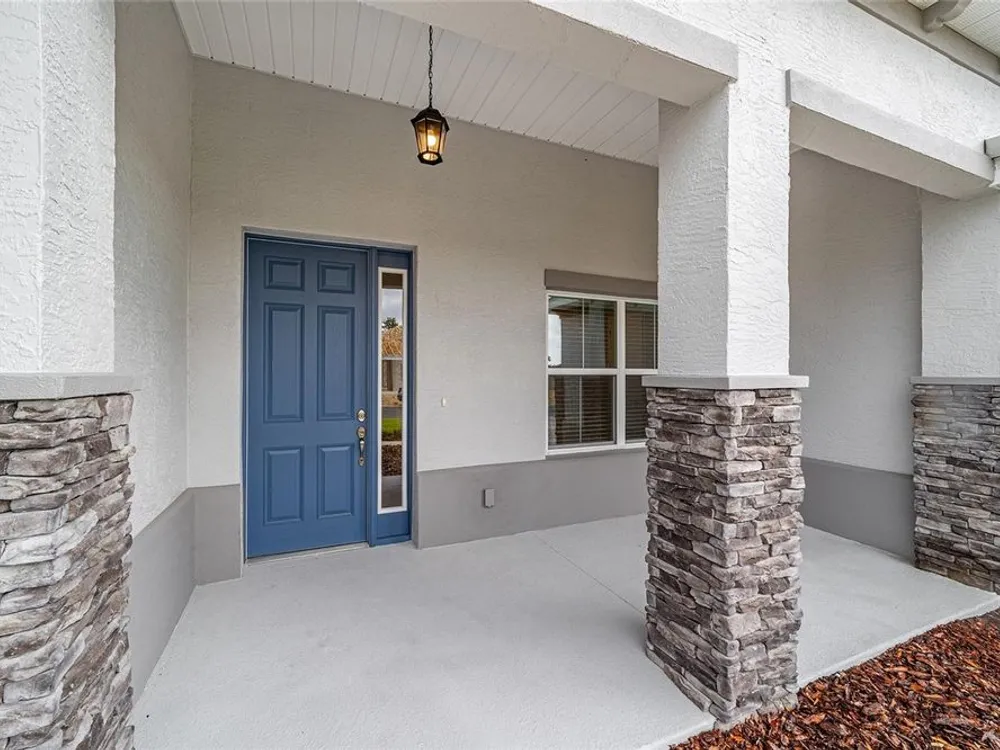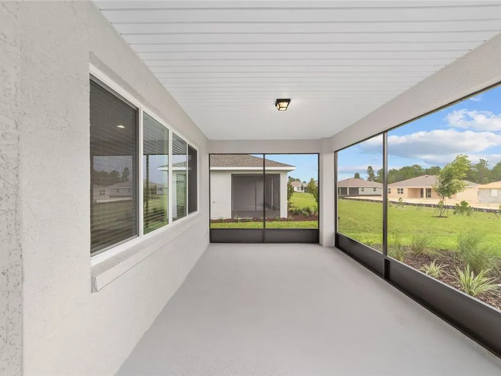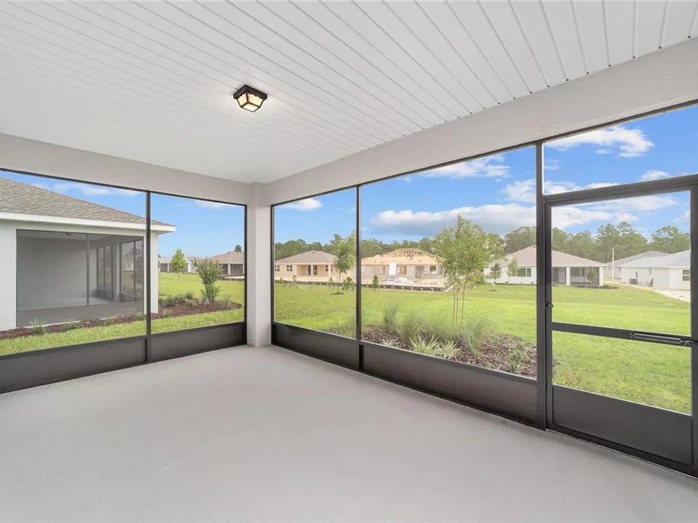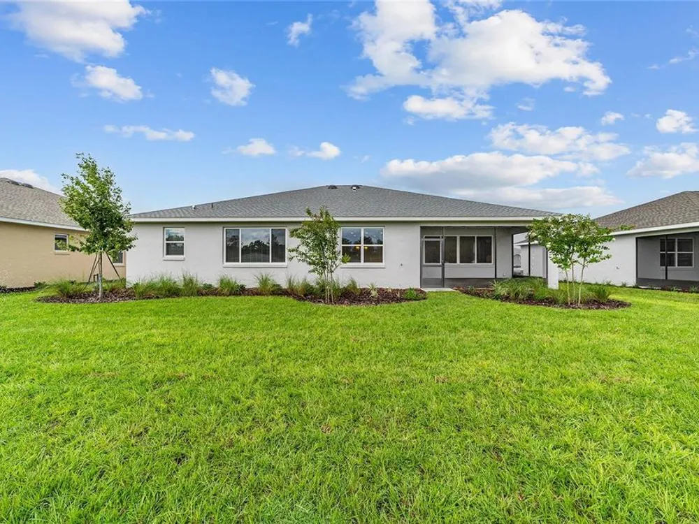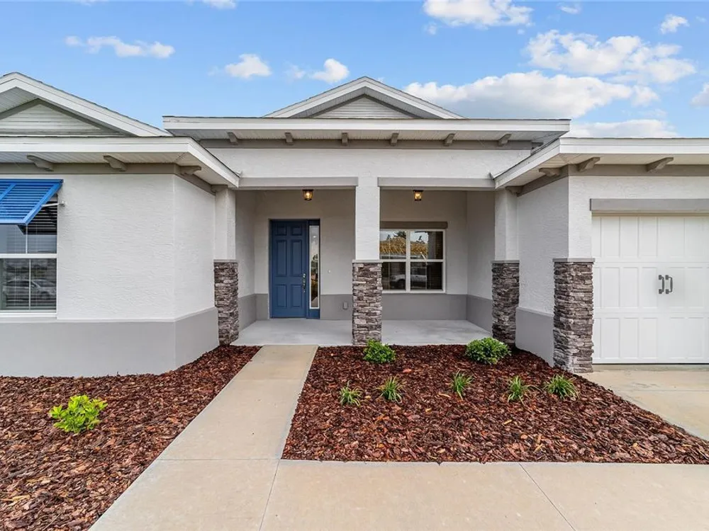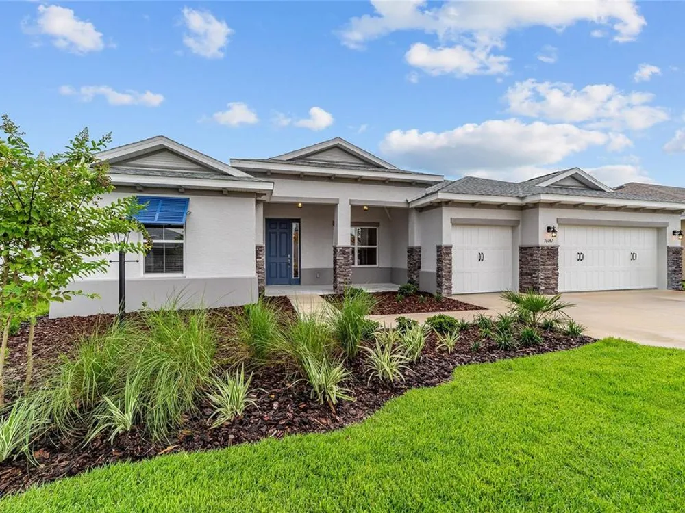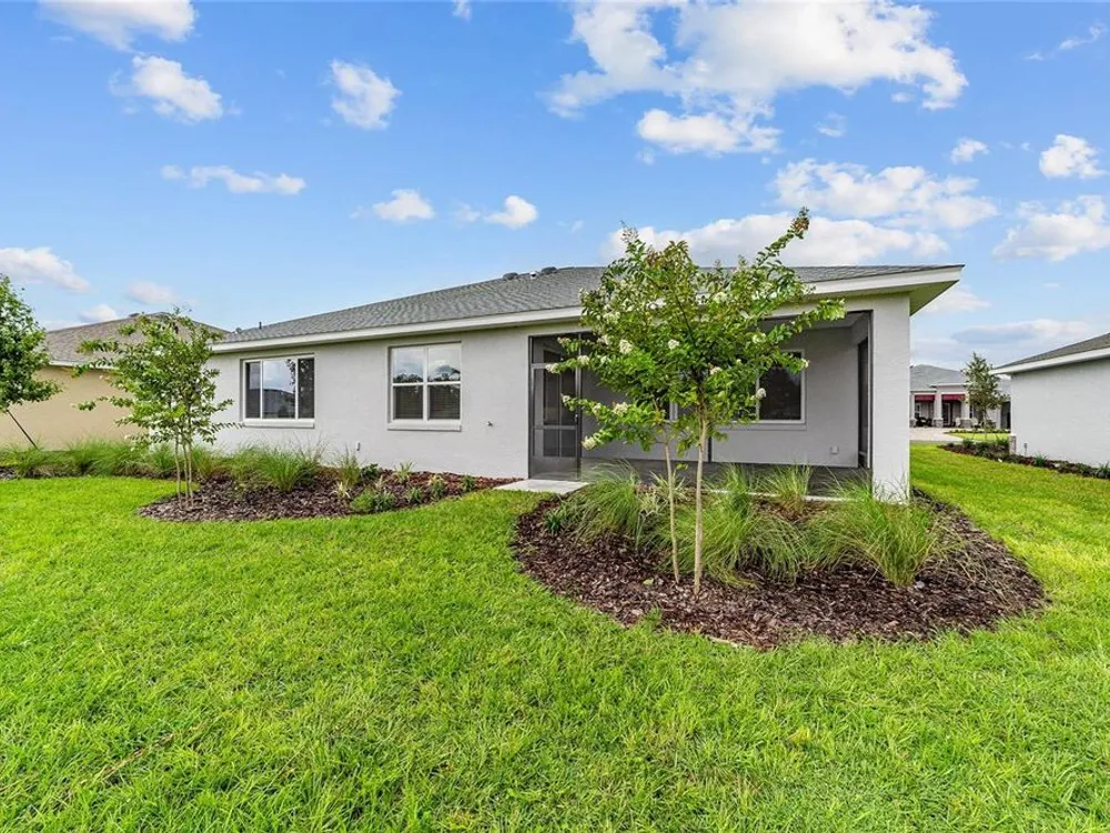 Welcome to the Beatrix model in the sought-after LongLeaf Ridge neighborhood of On Top of the World—Ocala’s premier 55+ active adult community. This brand-new home blends modern design with thoughtful details to create a perfect retreat. Inside, the open-concept floorplan features a bright great room and a stunning kitchen with staggered cabinets crowned with molding, stainless steel appliances, under-cabinet lighting, an oversized island, and a spacious pantry. Just off the main living area is a versatile flex room with French doors and a closet, ideal for a home office, den, or guest space. The owner’s suite is a true highlight, complete with a 3-panel window overlooking the backyard, a generous walk-in closet, and a spa-like en suite bath. The bathroom includes a double vanity with quartz countertop, zero-entry tiled shower with bench, and a linen closet. For added convenience, the laundry room connects directly to the master closet. The guest bedroom includes a closet and window with blinds and is conveniently located next to the guest bath, which features a single vanity with quartz countertop and a tiled tub/shower combination. Step outside to enjoy your covered lanai—perfect for morning coffee or evening relaxation. Built with energy-efficient construction and today’s most desirable finishes, this home offers both comfort and style. Living in On Top of the World means access to world-class amenities, including golf courses, resort-style pools, fitness centers, pickleball, tennis, and countless clubs and activities—all within a golf cart-friendly community. Don’t miss your chance to own this beautiful new construction home in LongLeaf Ridge!