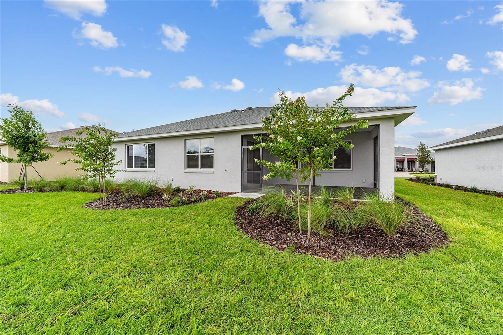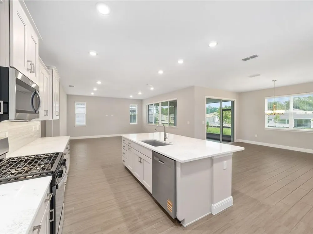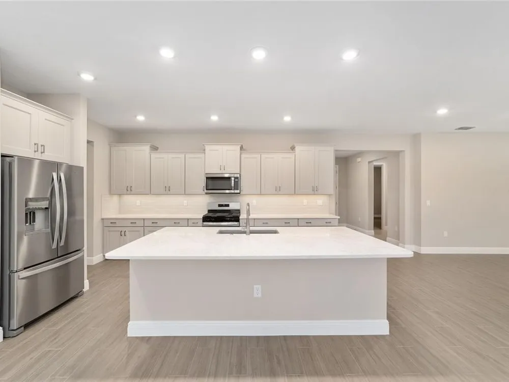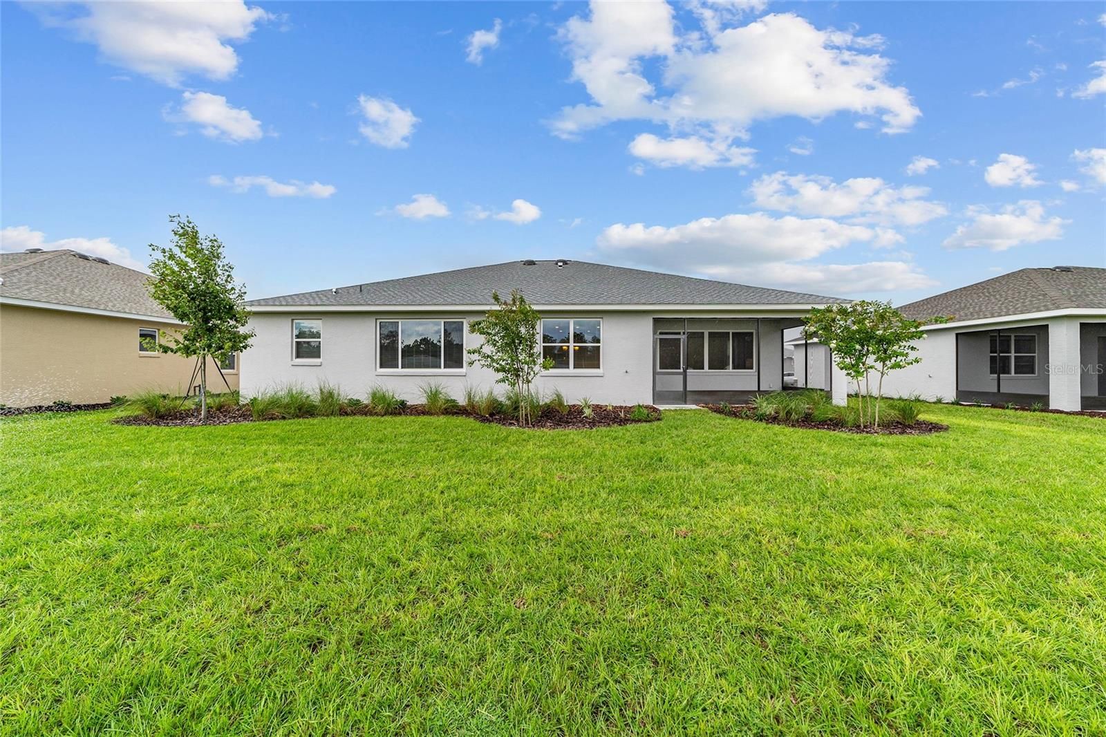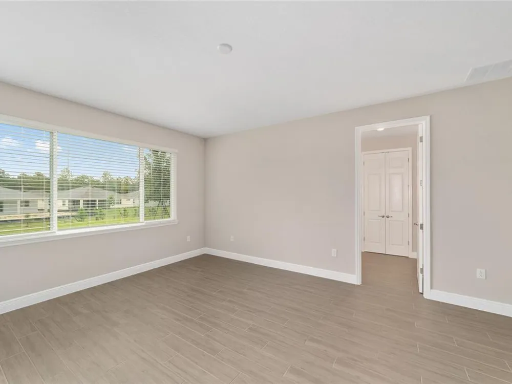 Welcome to the Beatrix model in the sought-after LongLeaf Ridge neighborhood of On Top of the World—Ocala’s premier 55+ active adult community. This brand-new home blends modern design with thoughtful details to create a perfect retreat. Inside, the open-concept floorplan features a bright great room and a stunning kitchen with staggered cabinets crowned with molding, stainless steel appliances, under-cabinet lighting, an oversized island, and a spacious pantry. Just off the main living area is a versatile flex room with French doors and a closet, ideal for a home office, den, or guest space. The owner’s suite is a true highlight, complete with a 3-panel window overlooking the backyard, a generous walk-in closet, and a spa-like en suite bath. The bathroom includes a double vanity with quartz countertop, zero-entry tiled shower with bench, and a linen closet. For added convenience, the laundry room connects directly to the master closet. The guest bedroom includes a closet and window with blinds and is conveniently located next to the guest bath, which features a single vanity with quartz countertop and a tiled tub/shower combination. Step outside to enjoy your covered lanai—perfect for morning coffee or evening relaxation. Built with energy-efficient construction and today’s most desirable finishes, this home offers both comfort and style. Living in On Top of the World means access to world-class amenities, including golf courses, resort-style pools, fitness centers, pickleball, tennis, and countless clubs and activities—all within a golf cart-friendly community. Don’t miss your chance to own this beautiful new construction home in LongLeaf Ridge!