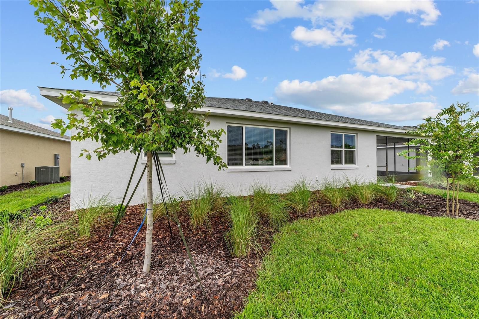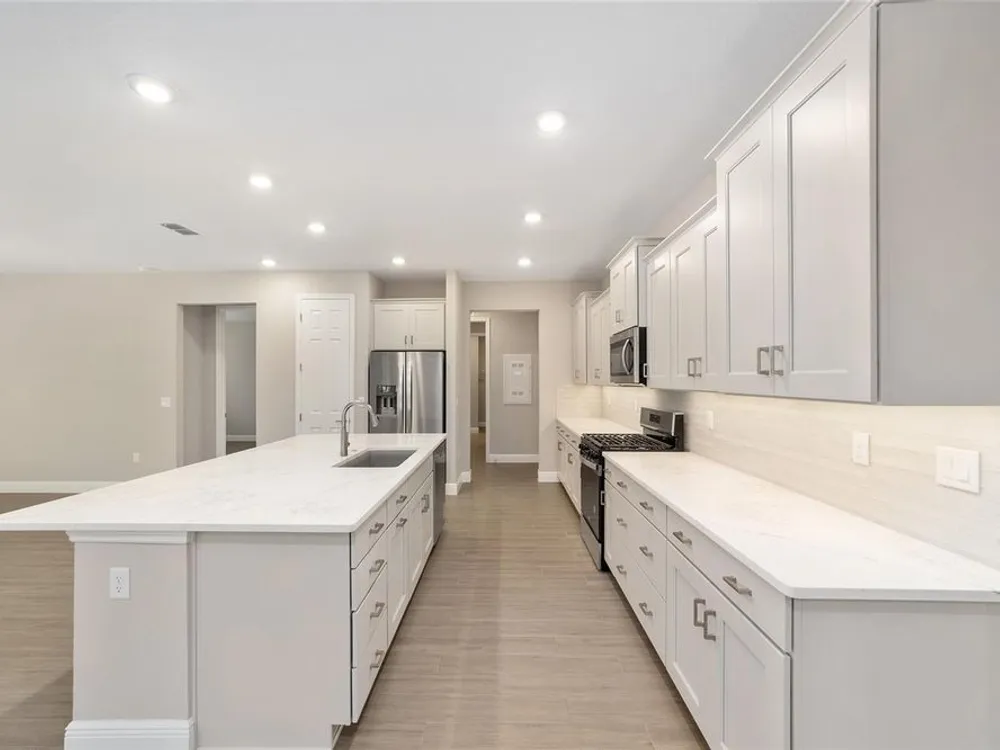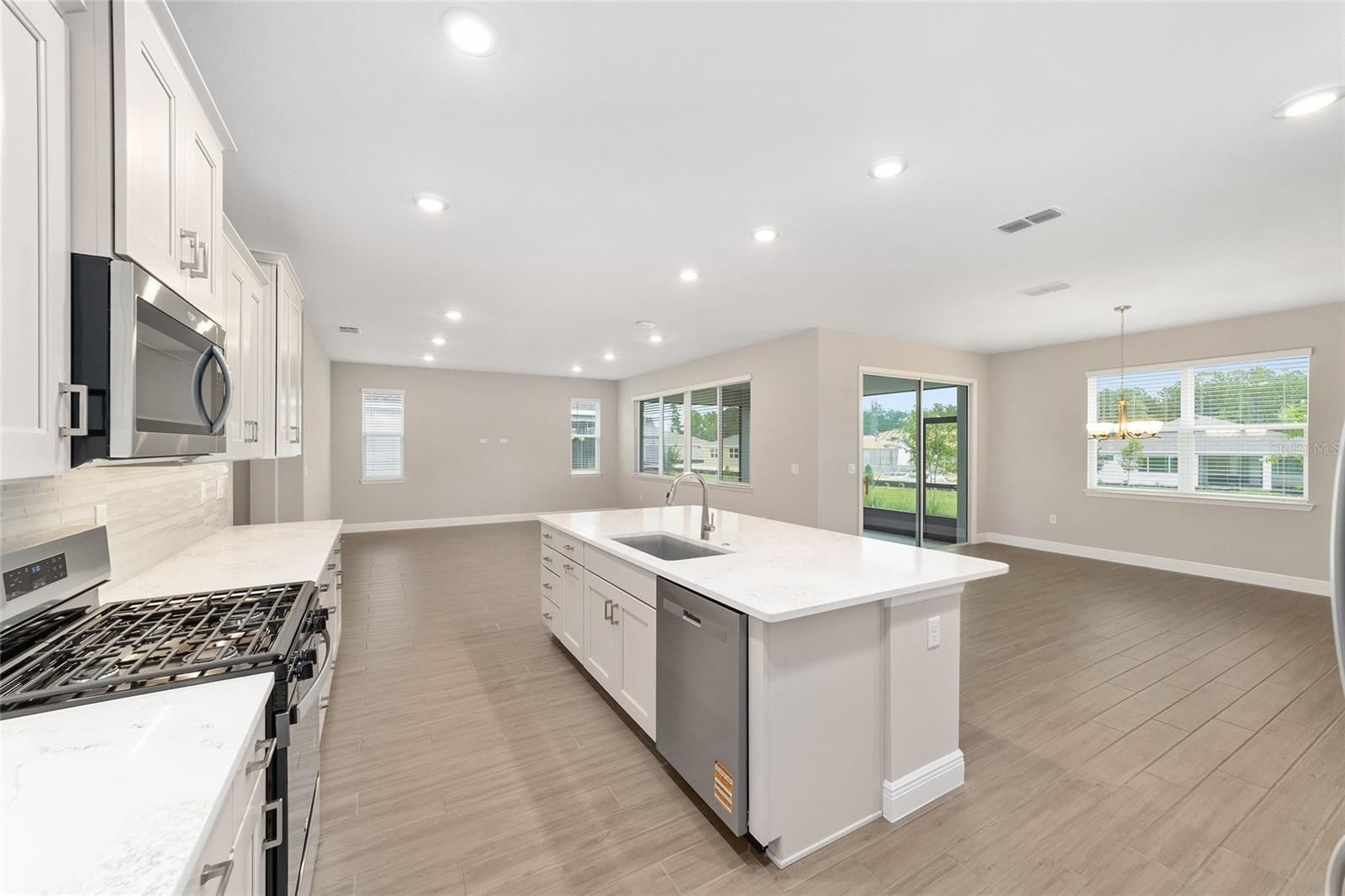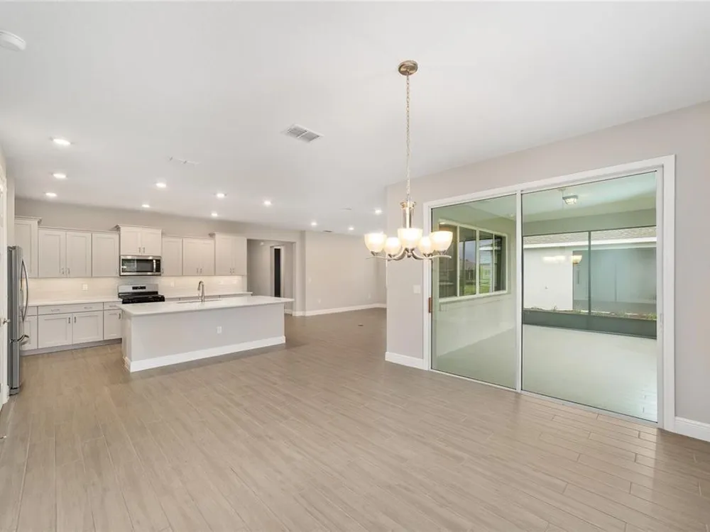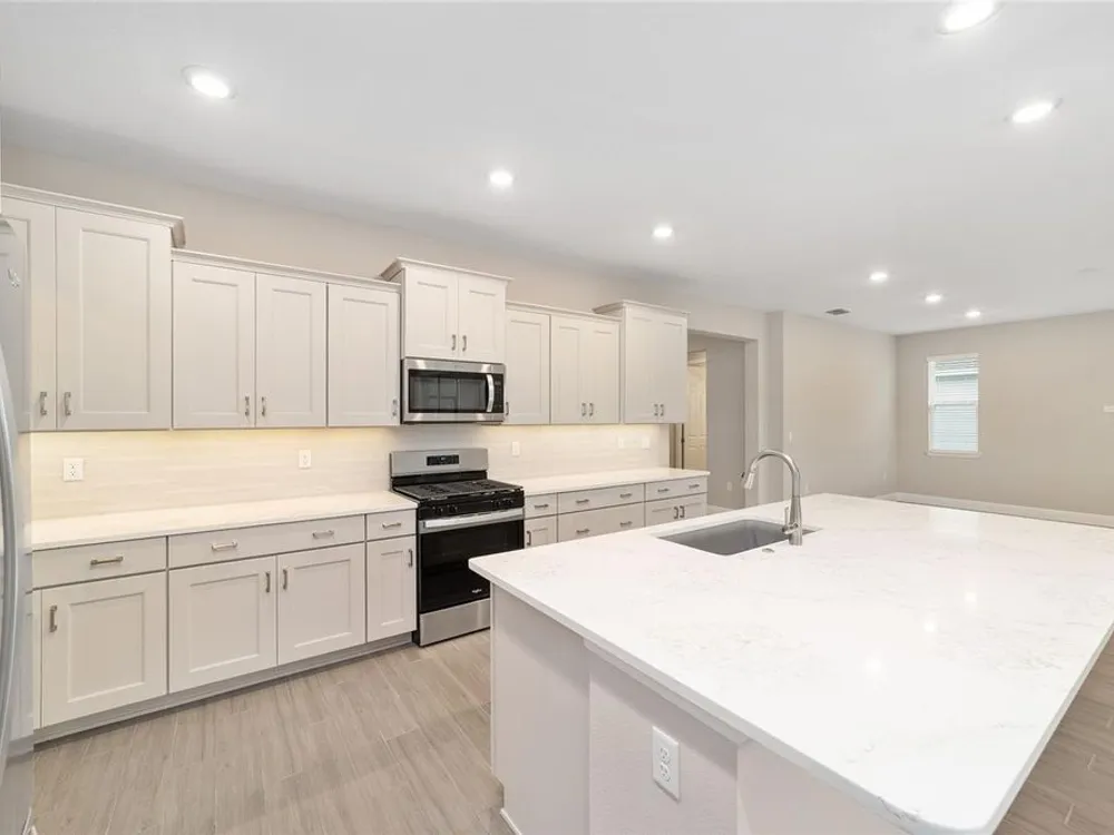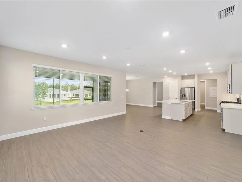 Welcome to the Beatrix model in the sought-after LongLeaf Ridge neighborhood of On Top of the World—Ocala’s premier 55+ active adult community. This brand-new home blends modern design with thoughtful details to create a perfect retreat. Inside, the open-concept floorplan features a bright great room and a stunning kitchen with staggered cabinets crowned with molding, stainless steel appliances, under-cabinet lighting, an oversized island, and a spacious pantry. Just off the main living area is a versatile flex room with French doors and a closet, ideal for a home office, den, or guest space. The owner’s suite is a true highlight, complete with a 3-panel window overlooking the backyard, a generous walk-in closet, and a spa-like en suite bath. The bathroom includes a double vanity with quartz countertop, zero-entry tiled shower with bench, and a linen closet. For added convenience, the laundry room connects directly to the master closet. The guest bedroom includes a closet and window with blinds and is conveniently located next to the guest bath, which features a single vanity with quartz countertop and a tiled tub/shower combination. Step outside to enjoy your covered lanai—perfect for morning coffee or evening relaxation. Built with energy-efficient construction and today’s most desirable finishes, this home offers both comfort and style. Living in On Top of the World means access to world-class amenities, including golf courses, resort-style pools, fitness centers, pickleball, tennis, and countless clubs and activities—all within a golf cart-friendly community. Don’t miss your chance to own this beautiful new construction home in LongLeaf Ridge!