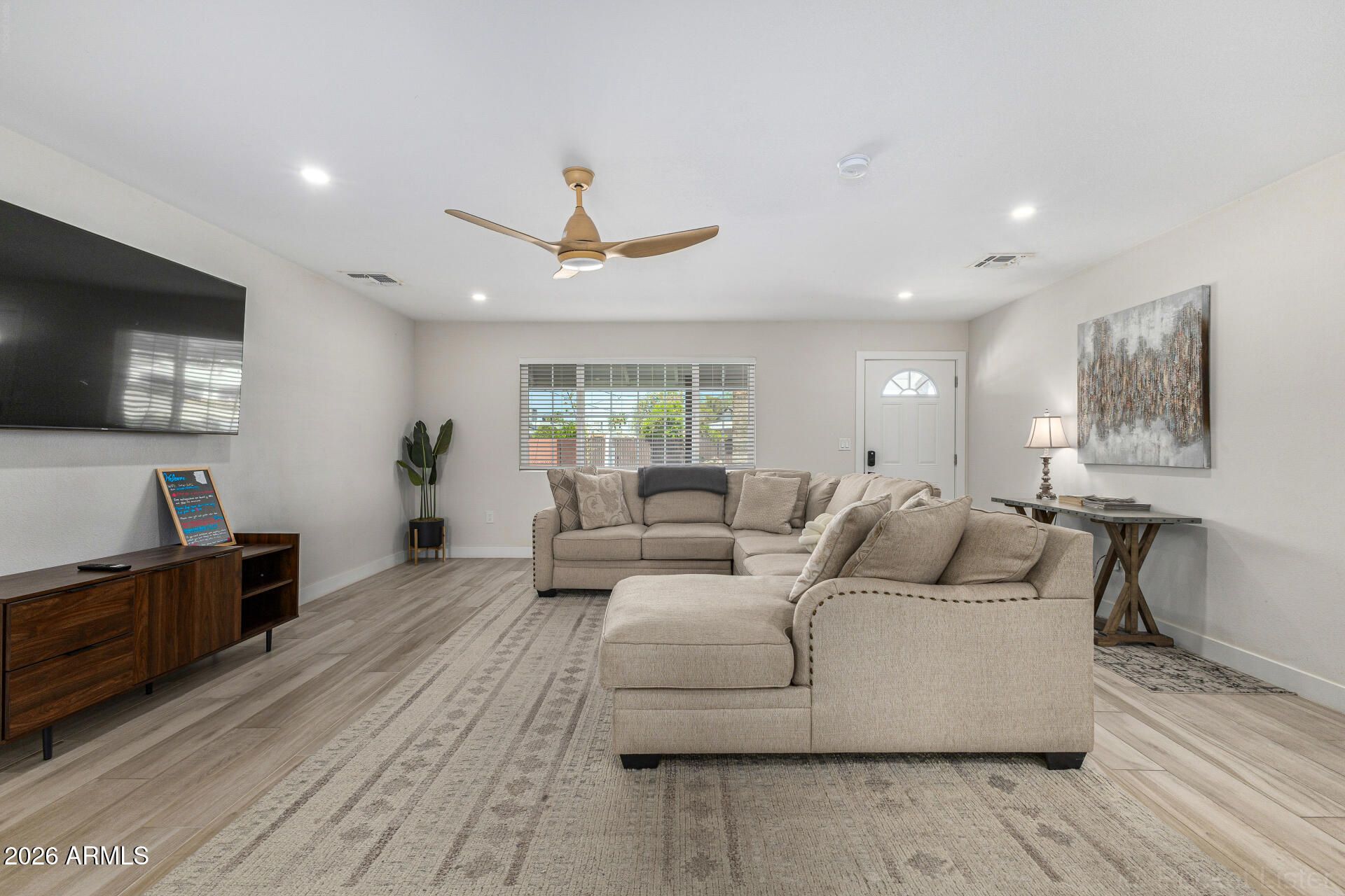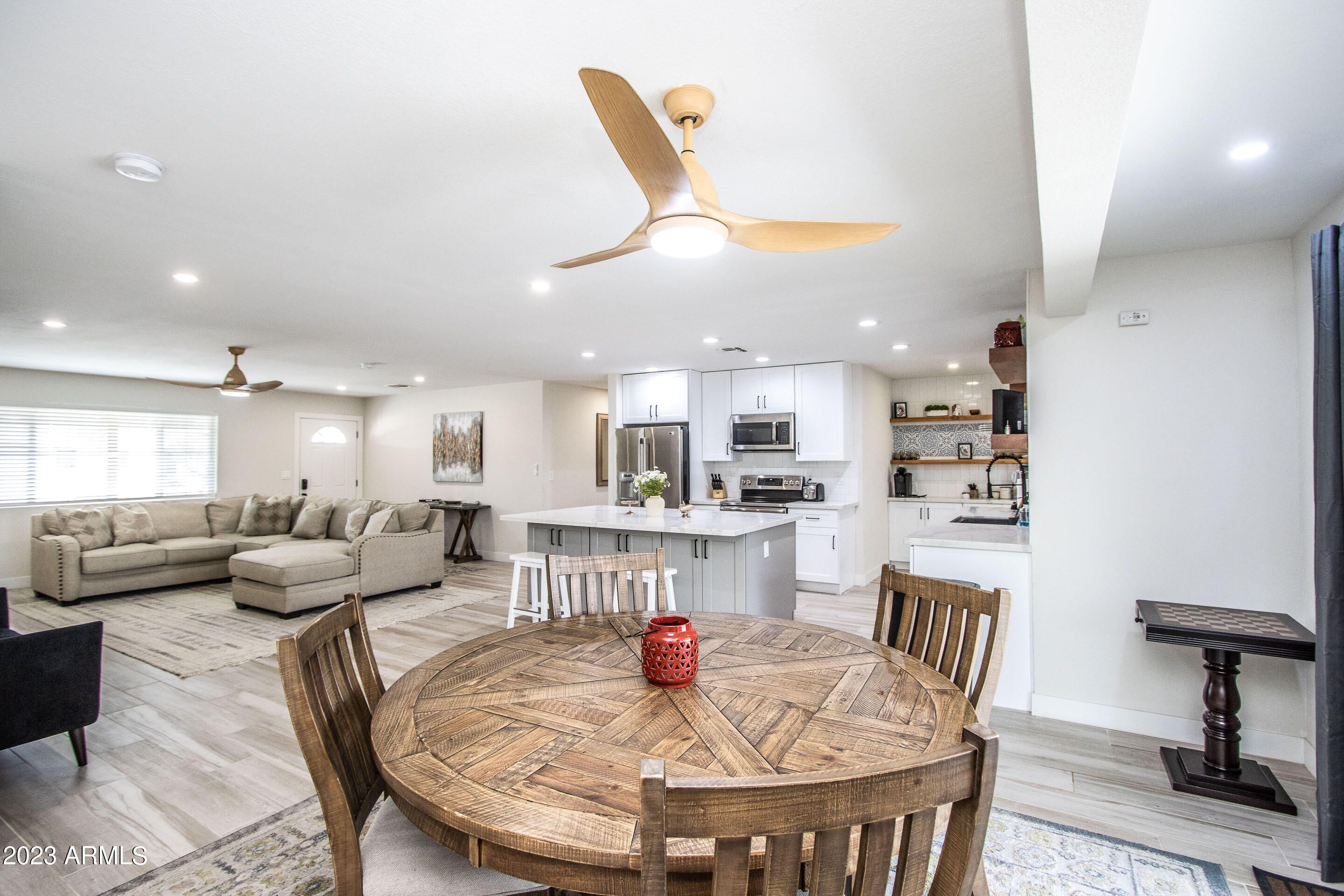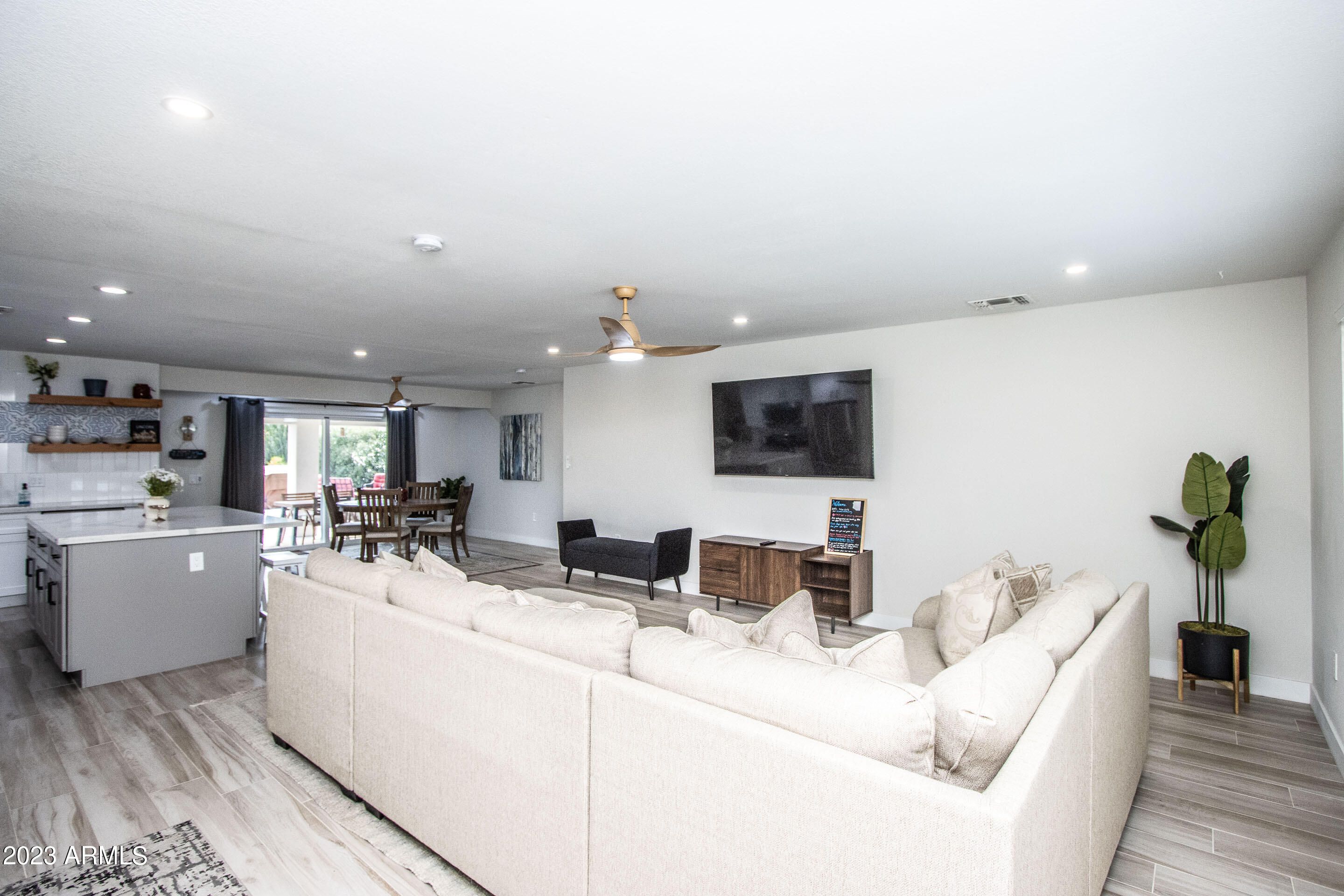Beautifully renovated 3-bedroom Sun City home offered fully furnished as an option, creating a true turnkey move-in or ready-to-go vacation rental. The open living, dining, and kitchen areas feel bright and inviting with updated finishes, stylish décor, and Smart TVs in every room. Each bedroom features quality beds, linens, and calming design for a comfortable retreat. The low-maintenance yard and convenient location near golf, recreation centers, and shopping add to the appeal. Furnished option includes everything currently used for its successful short-term rental setup—move right in, enjoy it seasonally, or continue operating it as an income-producing property from day one.