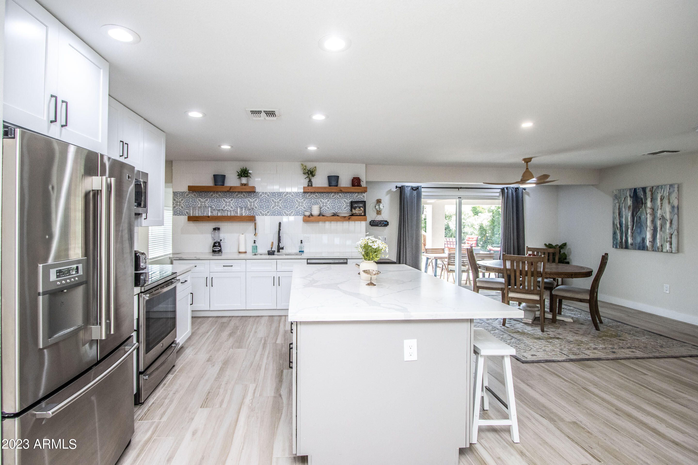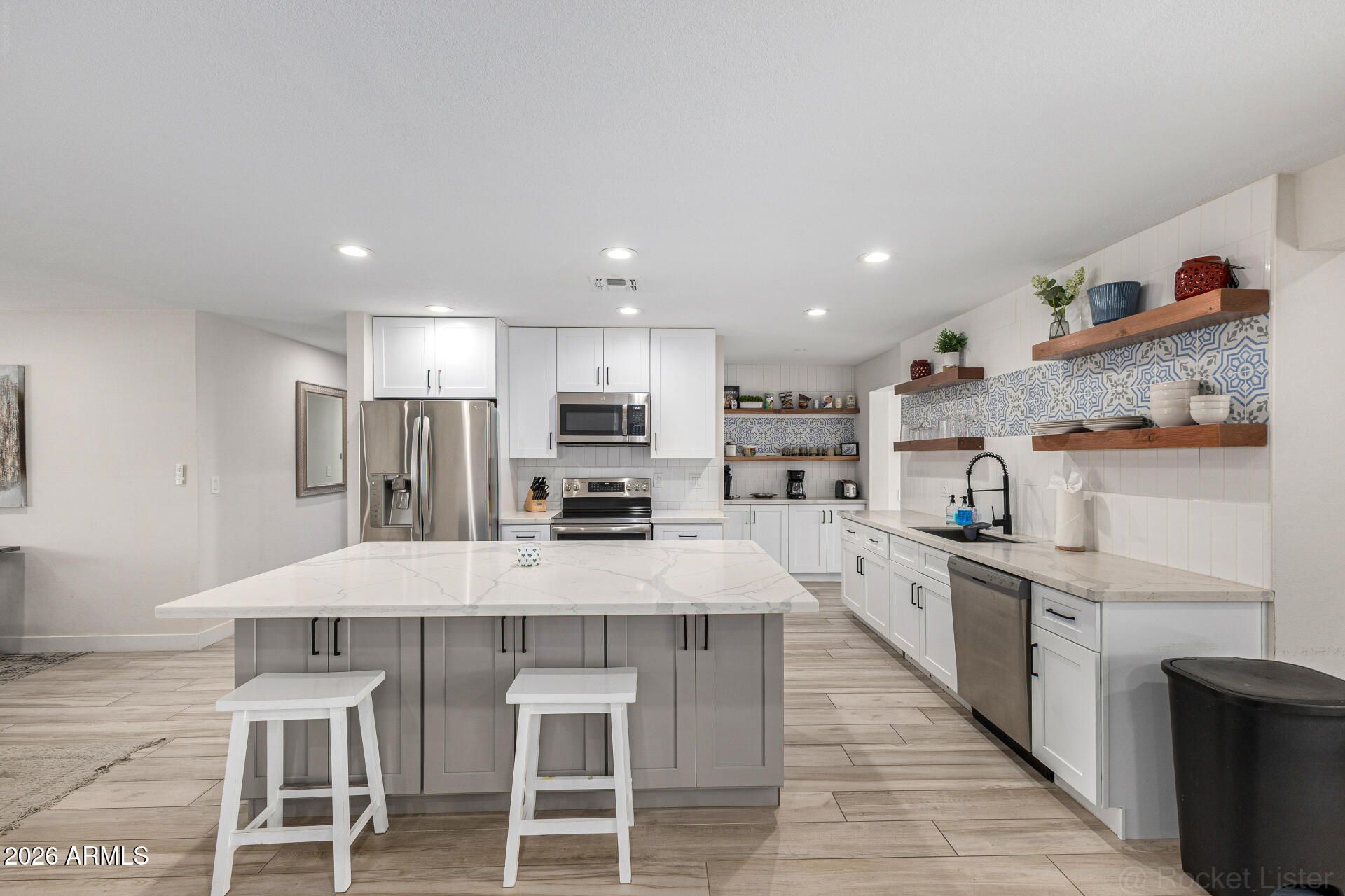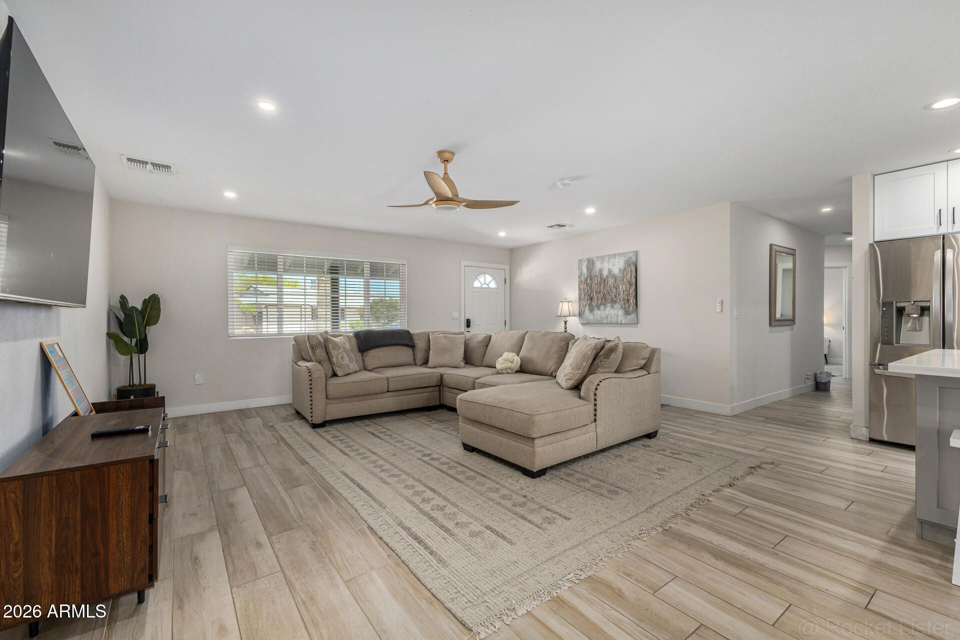 Beautifully renovated 3-bedroom Sun City home offered fully furnished as an option, creating a true turnkey move-in or ready-to-go vacation rental. The open living, dining, and kitchen areas feel bright and inviting with updated finishes, stylish décor, and Smart TVs in every room. Each bedroom features quality beds, linens, and calming design for a comfortable retreat. The low-maintenance yard and convenient location near golf, recreation centers, and shopping add to the appeal. Furnished option includes everything currently used for its successful short-term rental setup—move right in, enjoy it seasonally, or continue operating it as an income-producing property from day one.