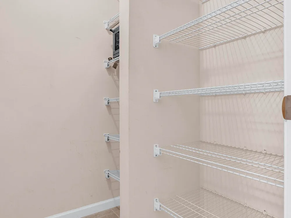 - Built-in Shelving, Entry Level Living Area, Pantry, Walk-In Closet(s), Family Room, Storage, Family/Dining Room, Blinds, Jalousie Window(s), Sliding Window(s), Tub Shower, Primary Downstairs