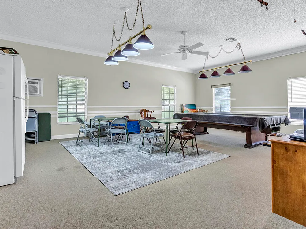 - Billiard Room, Bocce, Clubhouse, Community Room, Fitness Center, Library, Property Manager On Site, Pickleball, Pool, Shuffleboard, Street Lights, Tennis Court(s)