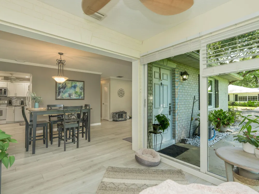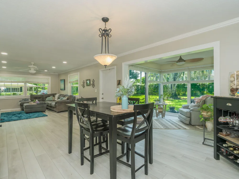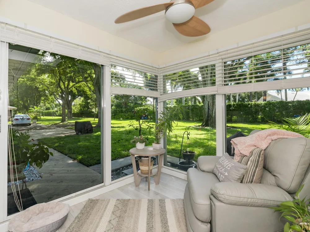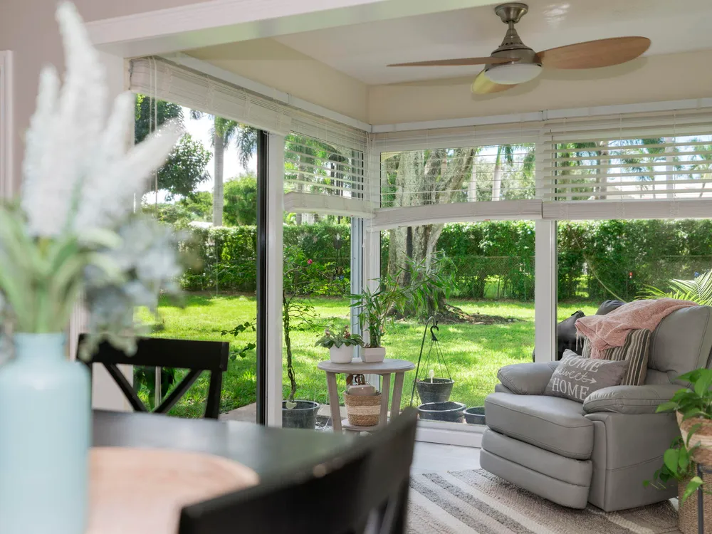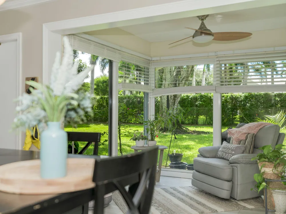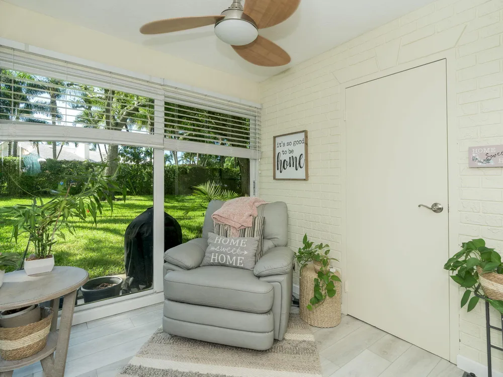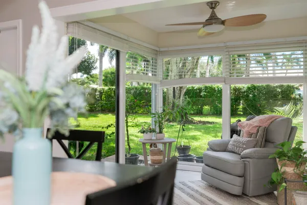 Welcome to this beautifully renovated 2-bed, 2-bath villa with a bonus sunroom in a vibrant 55+ community! This corner unit, tucked away at the end of the street, offers extra green space, privacy, and peace. The home has been gorgeously redone, featuring FULL IMPACT glass throughout--including the inviting, light-filled sunroom, perfect for morning coffee or relaxing with a book. Inside, enjoy modern finishes and an open layout that flows effortlessly. Outside your door, the community offers 3 pools, bocce, pickleball, tennis, numerous clubs, and weekly social events--ensuring an active lifestyle and new friendships. This villa truly combines comfort, security, and resort-style living in one perfect package! HOA covers everything but Electric, such an amazing opportunity, don't miss out!