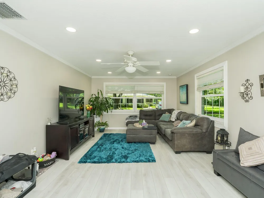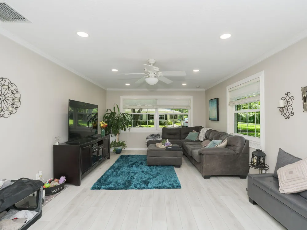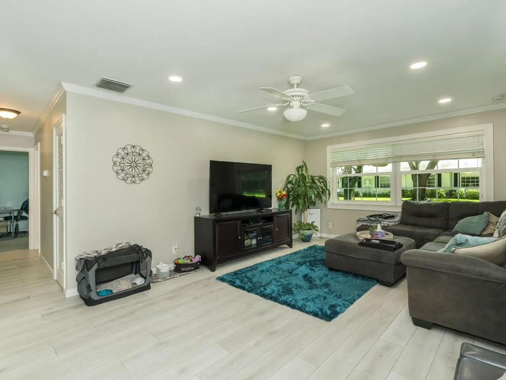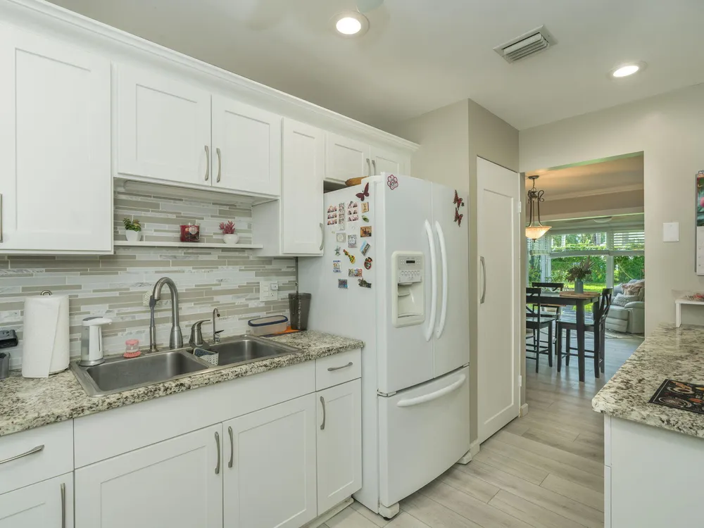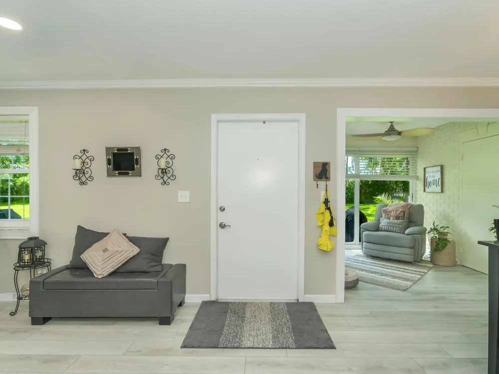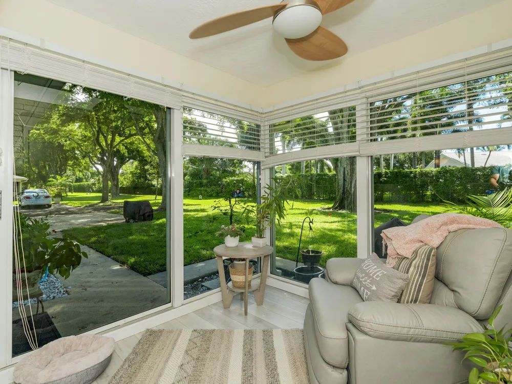 Welcome to this beautifully renovated 2-bed, 2-bath villa with a bonus sunroom in a vibrant 55+ community! This corner unit, tucked away at the end of the street, offers extra green space, privacy, and peace. The home has been gorgeously redone, featuring FULL IMPACT glass throughout--including the inviting, light-filled sunroom, perfect for morning coffee or relaxing with a book. Inside, enjoy modern finishes and an open layout that flows effortlessly. Outside your door, the community offers 3 pools, bocce, pickleball, tennis, numerous clubs, and weekly social events--ensuring an active lifestyle and new friendships. This villa truly combines comfort, security, and resort-style living in one perfect package! HOA covers everything but Electric, such an amazing opportunity, don't miss out!