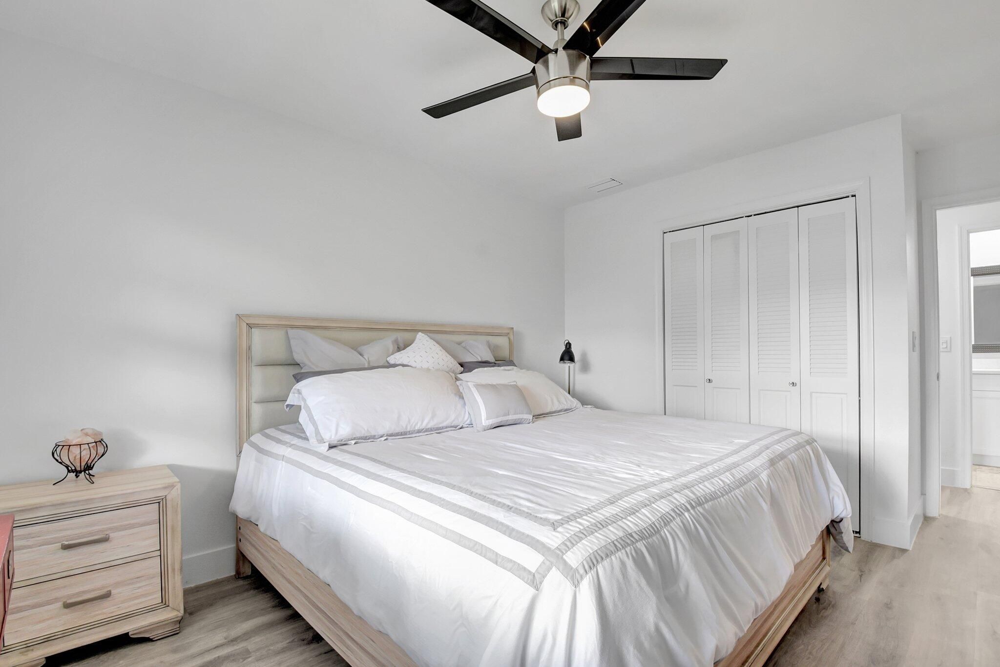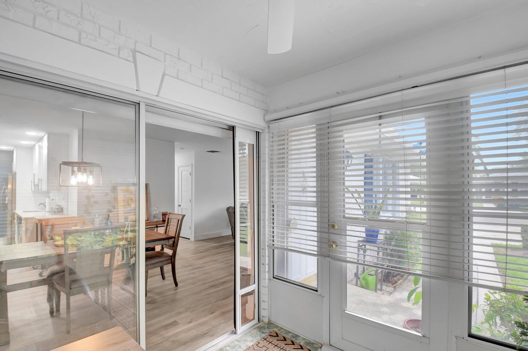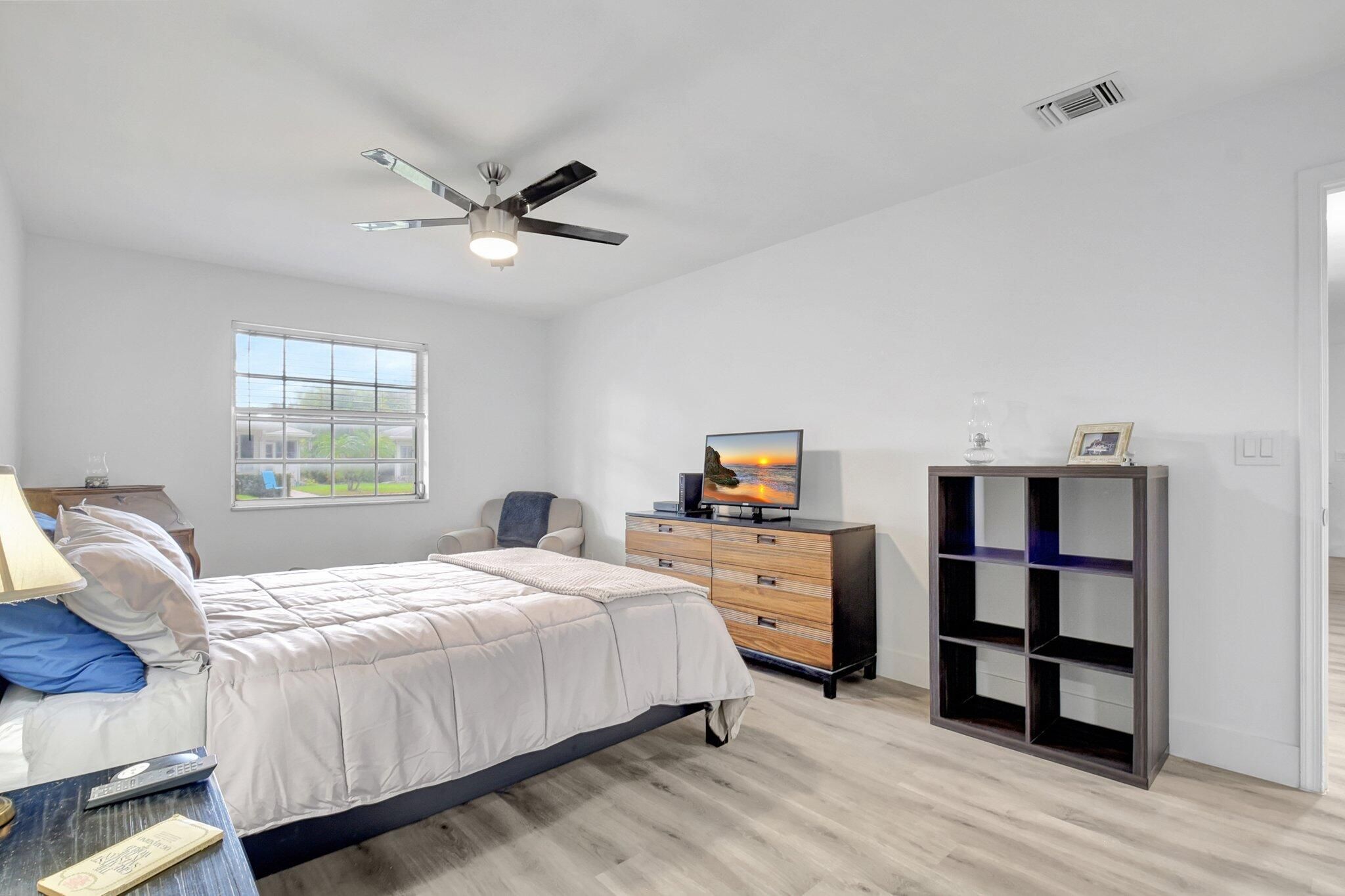 This updated villa features modern white Shaker style kitchen cabinets and quartz countertops with stainless steel appliances, renovated bathrooms and beautiful laminate flooring throughout. New HVAC installed in 2025, accordion hurricane shutters and a new roof installed in 2021 provide peace of mind all year round. Unit boasts a screened patio and Washer/Dryer housed in it's own utility closet. Large primary suite has a walk-in and 2 additional closets plus a beautiful en-suite bath. Generous second bedroom is perfect for guests or home office. Limetree is a welcoming 55+ Active Adult community centrally located in Boynton Beach, and comprised of 392 single story villas featuring white brick elevations. The community offers a blend of comfort, convenience, and vibrant social living Residents enjoy a variety of amenities designed to promote an active and social lifestyle. The clubhouse features a fitness center, billiards room, library, and spaces for social gatherings. Three outdoor pools are available, including one at the community center and one just a few steps away from this villa. Tennis, pickleball, bocce, and shuffleboard courts cater to various interests. An active calendar includes bingo nights, arts and crafts, card games, and organized trips, fostering a strong sense of community. Situated in central Boynton Beach, Limetree offers convenient access to shopping, dining and beaches. Easy access to major highways and nearby cities like Delray Beach and West Palm Beach. Your pet under 15 pounds is welcome here. This home truly celebrates life while embodying comfort, vitality and renewal - the perfect setting for your next chapter.
