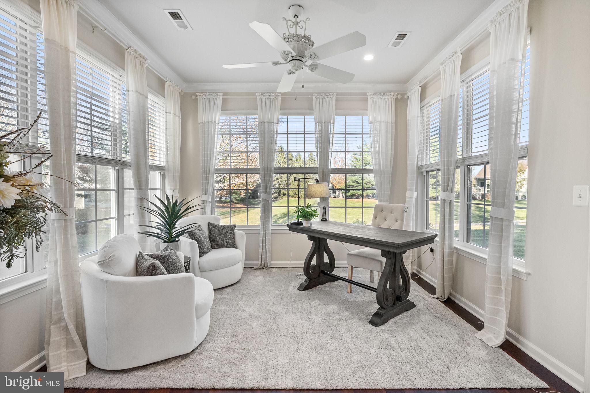 In the heart of Bucks County, welcome to Heritage Creek Estates, an active adult community. You won't want to miss this recently updated ranch on a premiere lot backing to open space. Enter the front door to the spacious and open floor plan with formal living/dining area. The updated kitchen will become the heart of the home. Large island with drawers and cabinets, and room for plenty of counter seating. Granite countertops, stainless-steel appliances, pantry and an oversized farm sink. All situated next to the breakfast room and family room. Oversized bay windows bring in so much natural light. There is a sunroom also with plenty of windows overlooking the back yard with access to your private patio. The primary suite is spacious and includes a primary bath with makeup area and double sink, and a wonderful walk-in "California Closet". Second bedroom, and another full bath are updated and beautifully appointed. And if that isn't enough, there is an office with double glass entry doors, built in desk, and motorized window treatment overlooking the front yard. Laundry room with newer washer/dryer set and a one car garage with electric door opener, as well as an attic with pull-down stairs for extra storage completes this home. There is literally nothing to do but move in and unpack. The community center is so close and includes indoor/outdoor pool, tennis courts, shuffleboard, exercise gym and many activities. Newer furnace, HVAC, and water heater. Engineered flooring throughout and wall to wall carpeting in bedrooms and office. Heritage Creek Golf Course is woven into the community. and some holes can be seen from the Community center. Close to restaurants (1 mile from Tony's Place), shopping (close to Costco and more). It won't last.