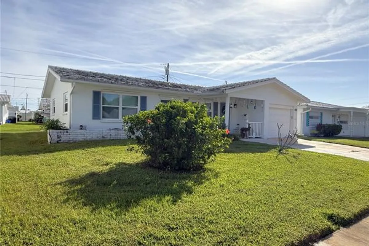 Location, Location, Location! This delightful 2-bedroom, 2-bathroom home, complete with a 2-car garage, is ideally situated one street over from Mayors Park at Freedom Lake. As you approach the property, you'll be greeted by a welcoming Front Patio, Brand New Roof, Fresh Exterior Paint and you'll appreciate the added protection from the weather provided by some impact-resistant storm windows and sliding door. Recent upgrades, including a newer flat roof installed in 2022, extended driveway and an updated garage door, enhance both the function and appeal of this charming residence. Step inside this 1,215 heated sq.ft. home to discover updated laminate flooring that flows seamlessly through the living room, dining room, and guest suite. The well-appointed galley kitchen, featuring an intimate eating space, opens into the bright Florida room, creating an inviting atmosphere filled with natural light. The master suite boasts a thoughtfully updated en-suite bathroom, which includes a modern vanity with a chic countertop, a new toilet, a stylish light fixture, and a contemporary walk-in shower equipped with safety rails for added convenience. The guest bathroom also features stylish upgrades, ensuring comfort for family and visitors alike. Venture outside to your serene rear screened-enclosed patio, the perfect spot to enjoy your morning coffee while basking in the gentle Florida breeze. With a touch of creativity and personal updates, this home has the potential to become a real showstopper. Nestled in a vibrant, amenity-rich community, you'll enjoy easy access to Mainlands Sparkling Community Heated Pool and Clubhouse, Mainlands Golf Course, Freedom Lake Park that offers: Dog Park with large, fenced exercise space separated for large and small dogs, hydrants, watering holes, and plenty of shade for your pets, covered outside fitness stations, fishing, grilling, picnic tables, pavilions, new playground, walking track and the Korean War Memorial. This home's ideal location puts you close to all the best that the area has to offer - from world-class Gulf Beaches, Sam’s Club, Coffee Shops, Fitness Centers, shopping, dining, Helen Howarth Park, Equestrian Trail, Dog Park, and Forbes recreation area, I-275, St. Pete/Clearwater and Tampa International Airports. Whether you're an adventure-seeker or simply seeking a peaceful oasis, this home offers the perfect setting to elevate your Florida lifestyle. Don’t miss out on this incredible opportunity to own a charming home in a prime location!