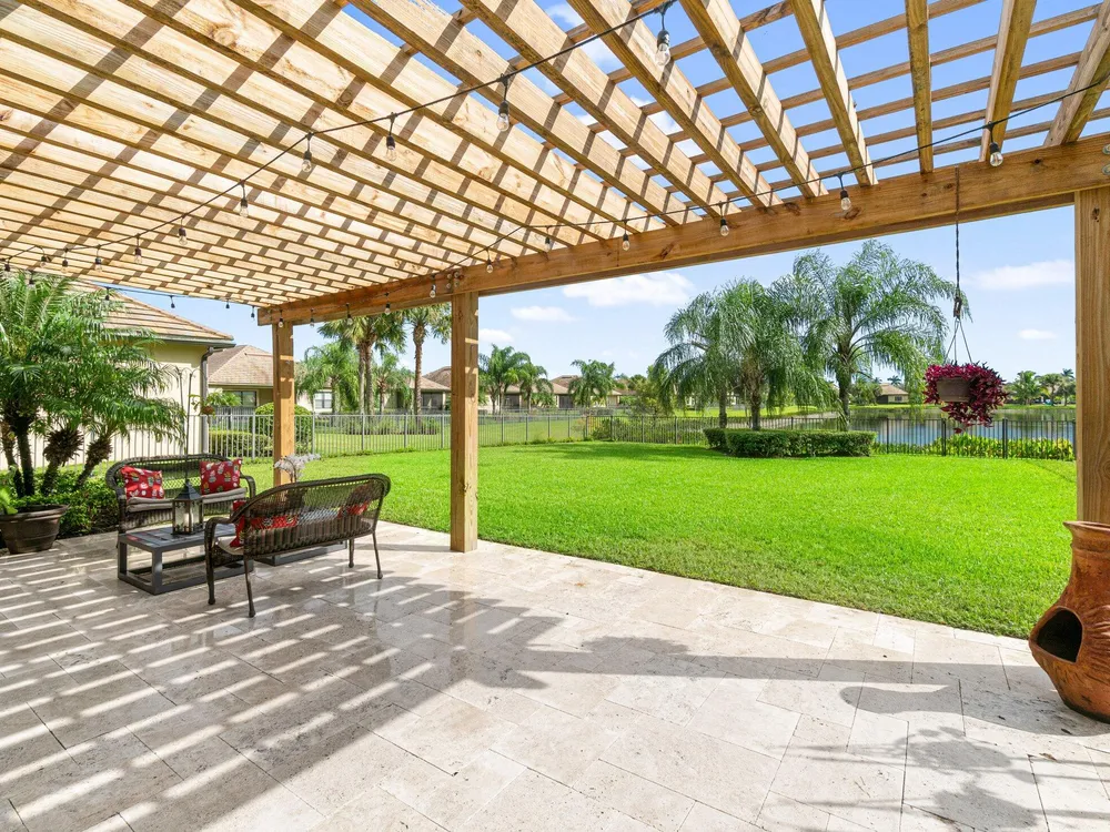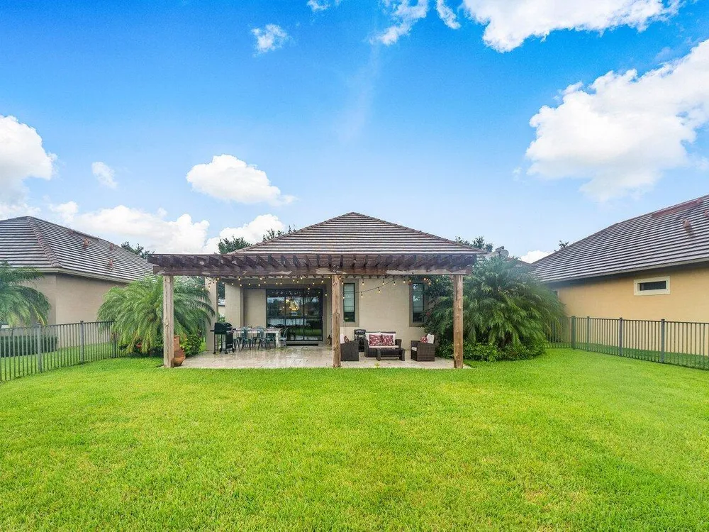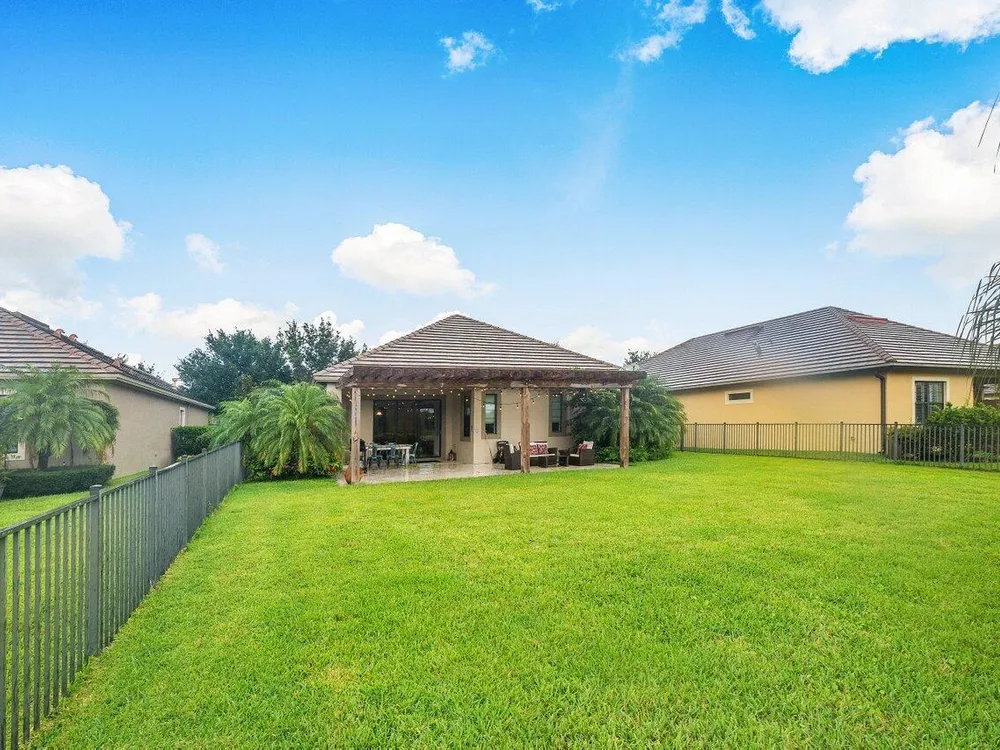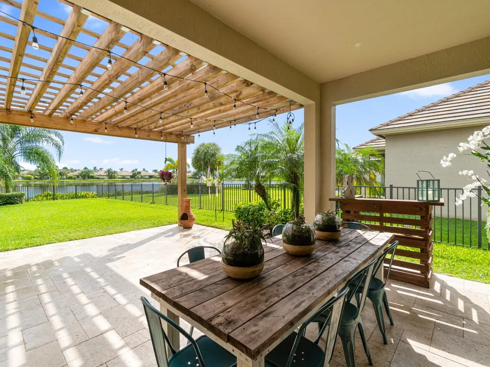 One-story home nestled on a premium waterfront lot within the highly desirable, gated community of Castellina. Built in 2014, this residence is among the newest in the neighborhood, offering both modern style and lasting quality.Step inside to find tile flooring throughout the open, sunlit living spaces and bedrooms. The home features brand new flooring, new A/C, stainless steel appliances, and a spacious outdoor patio adorned with elegant travertine flooring and a charming wooden pergola--perfect for outdoor entertaining in your fully fenced backyard.Enjoy breathtaking sunset views over the lake, and take advantage of the vibrant community amenities, including a clubhouse, resort-style pool, fitness center, tennis and pickleball courts, and more.