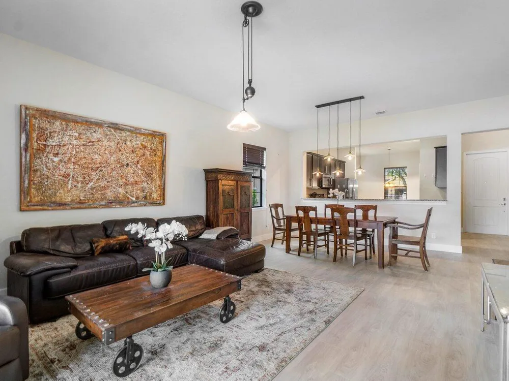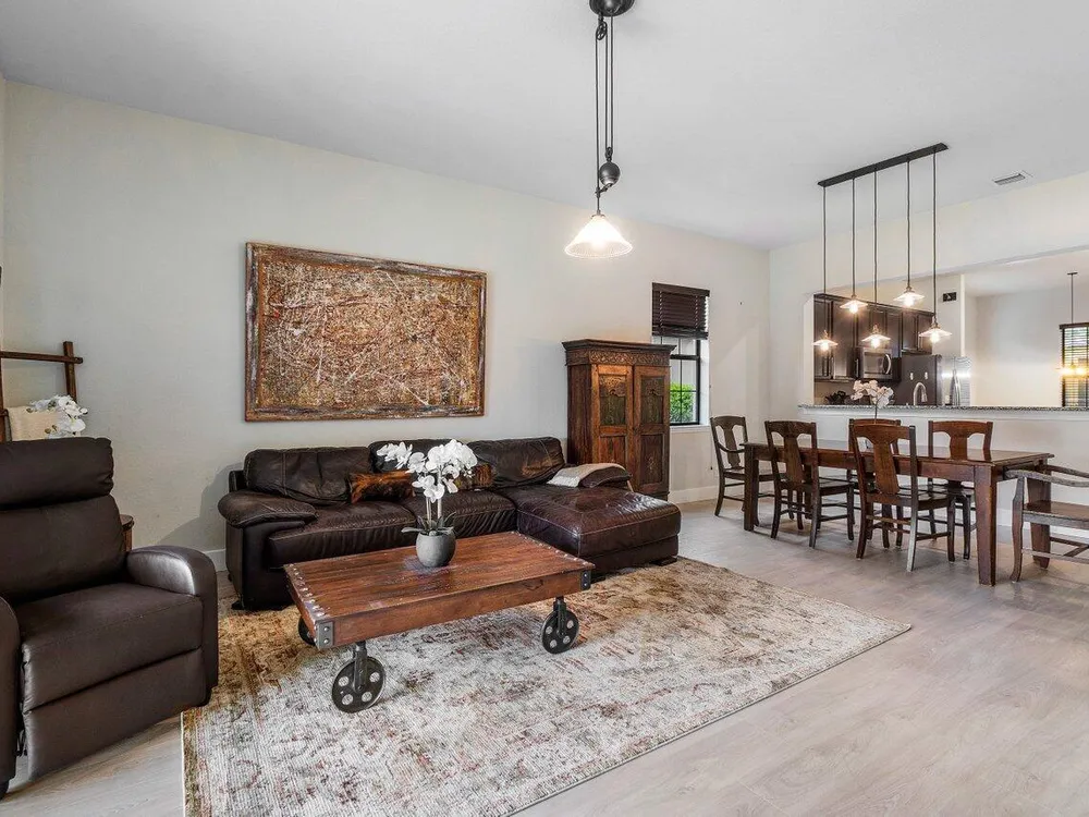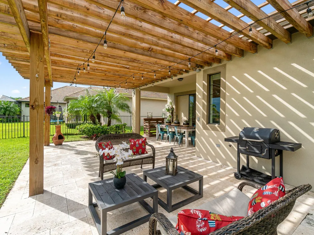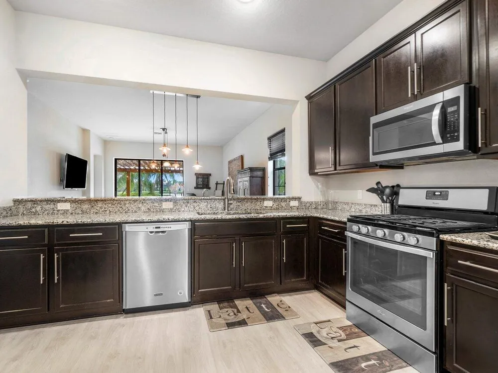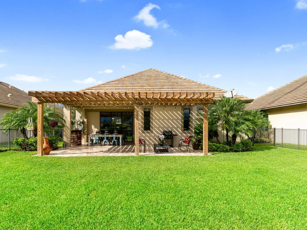 One-story home nestled on a premium waterfront lot within the highly desirable, gated community of Castellina. Built in 2014, this residence is among the newest in the neighborhood, offering both modern style and lasting quality.Step inside to find tile flooring throughout the open, sunlit living spaces and bedrooms. The home features brand new flooring, new A/C, stainless steel appliances, and a spacious outdoor patio adorned with elegant travertine flooring and a charming wooden pergola--perfect for outdoor entertaining in your fully fenced backyard.Enjoy breathtaking sunset views over the lake, and take advantage of the vibrant community amenities, including a clubhouse, resort-style pool, fitness center, tennis and pickleball courts, and more.