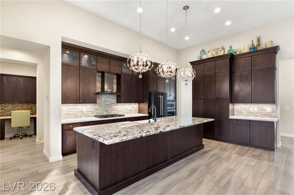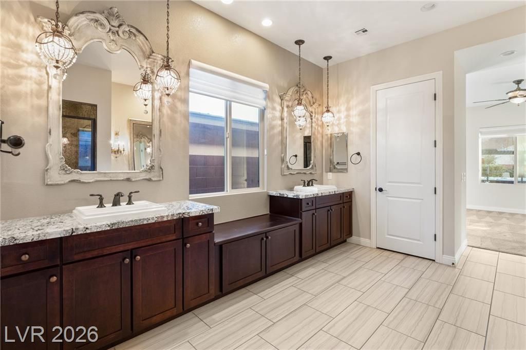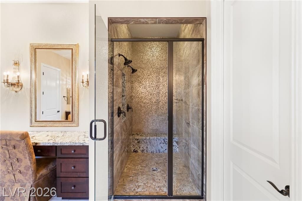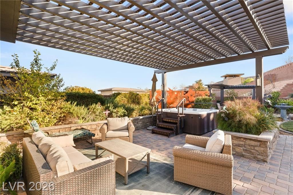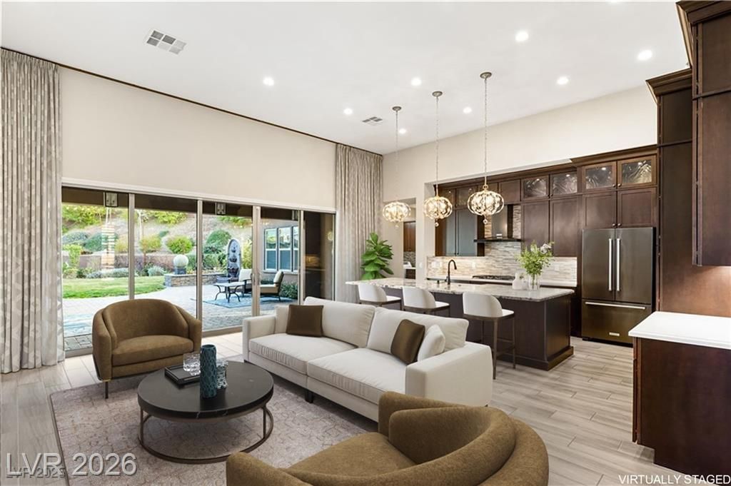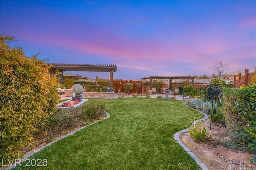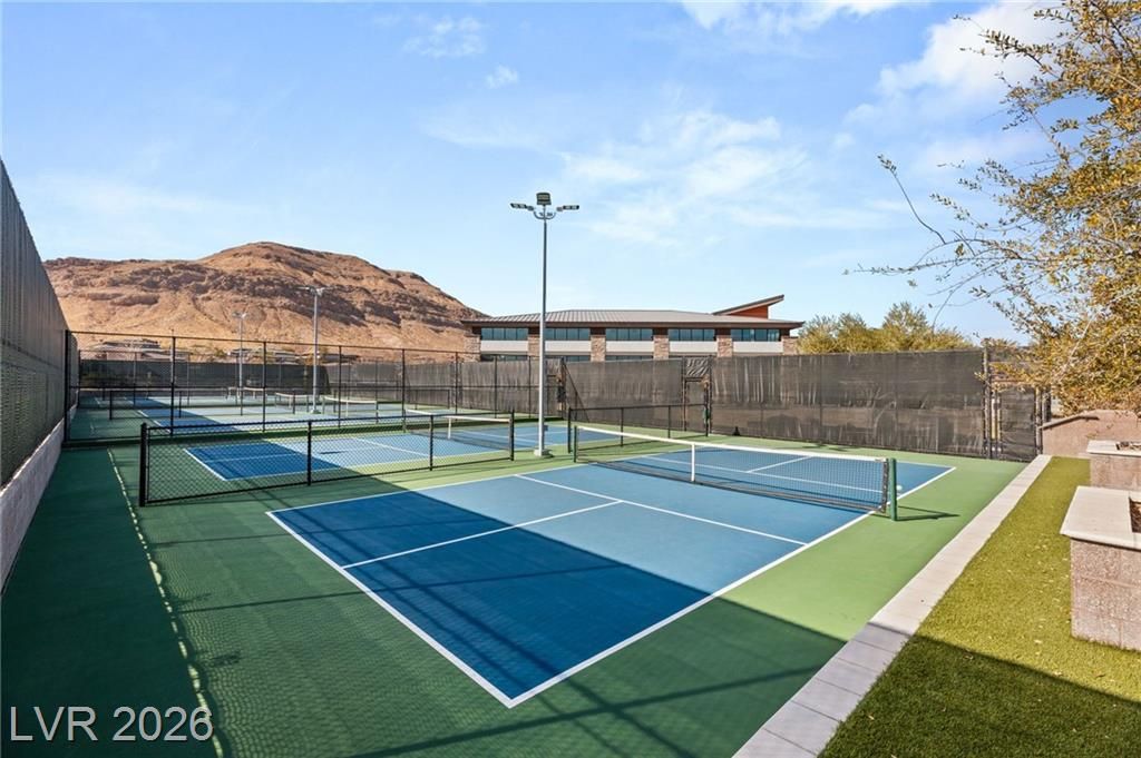 Nestled in the prestigious, guard-gated Regency at Summerlin, this luxurious home offers refined living in an age-restricted community with unmatched amenities.The clubhouse is the heart of the development,featuring a lounge, library, demonstration kitchen, fitness facilities, and a full-size indoor pool.Outdoor amenities include tennis, bocce ball, and Pickleball courts, plus a pool, spa, outdoor kitchen, and grill.Set on a hillside, this home boasts breathtaking mountain views, custom luxury materials, and an open-concept kitchen with granite and quartz countertops, top-tier stainless steel appliances, and a butler’s pantry.The spacious primary ensuite includes custom mirrors, a walk-in shower, and dual walk-in closets.A second bedroom with its own bath and a versatile flex room make this home adaptable for any lifestyle.Outdoors, a low-maintenance yard offers multiple covered seating areas, water features, a rose garden, fruit trees, and a grass lawn, providing privacy and serenity!