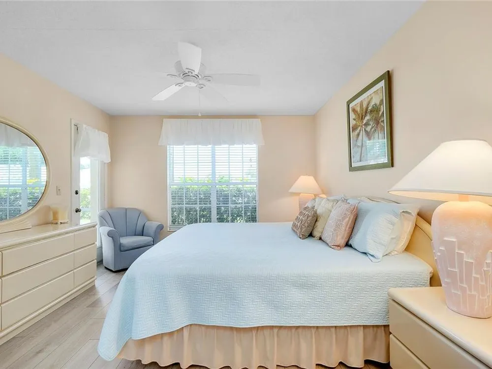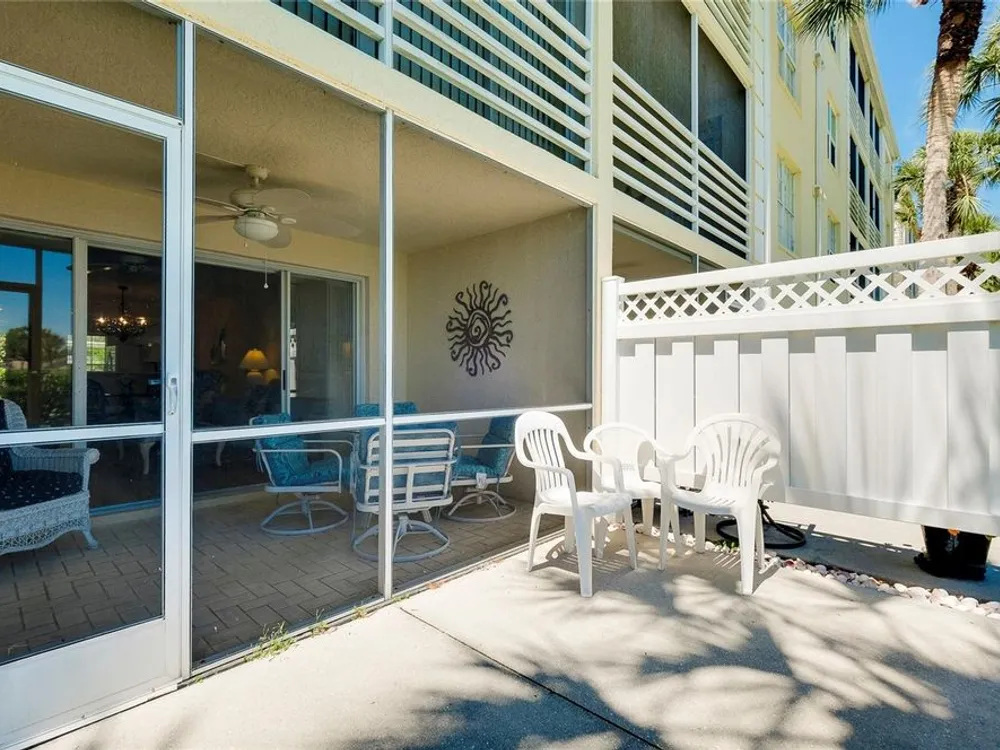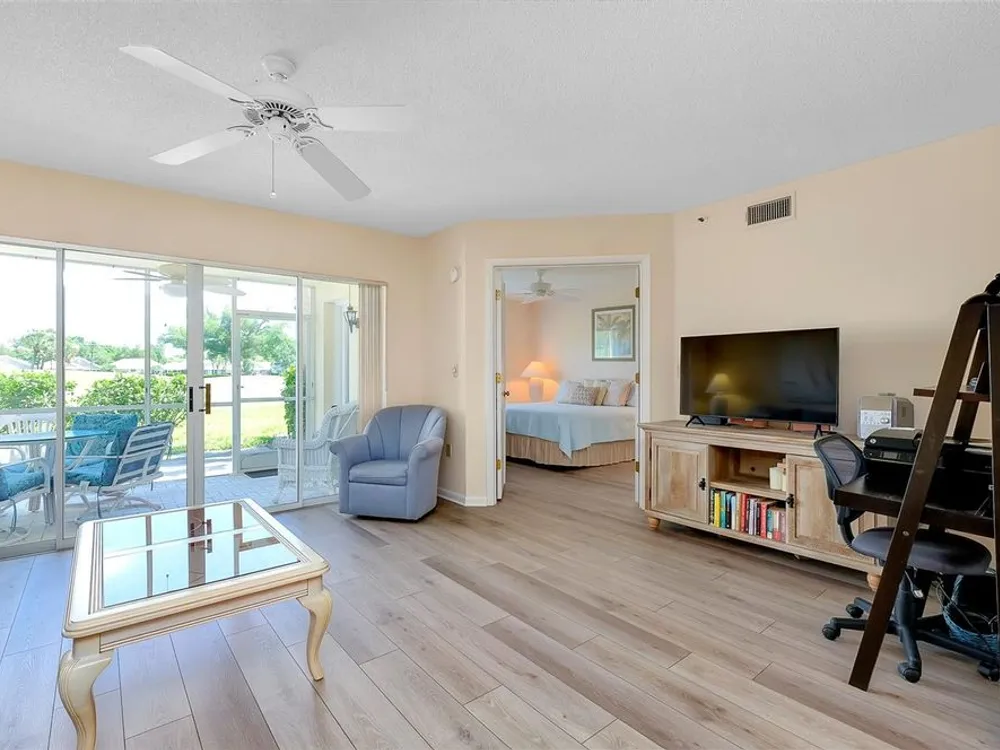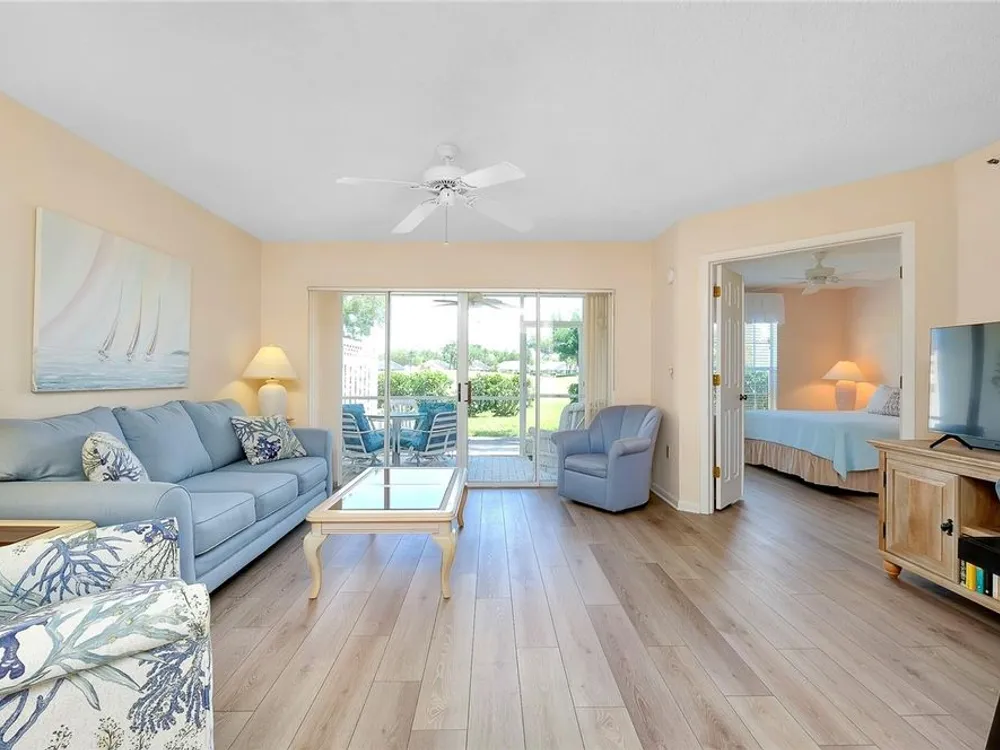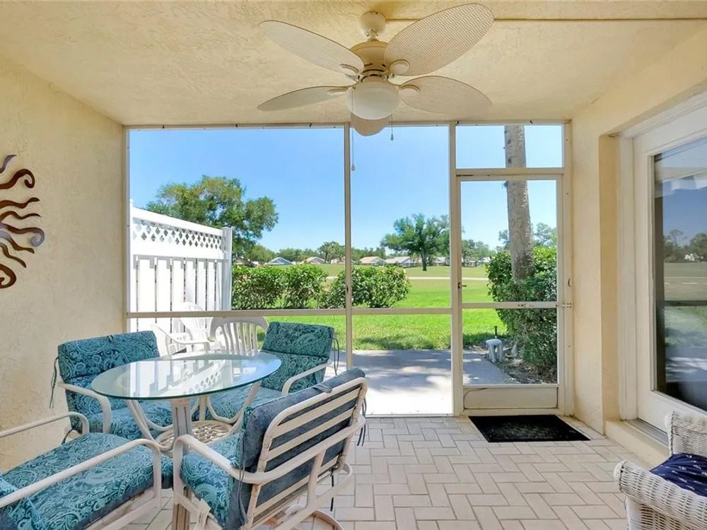 Welcome to your turnkey winter retreat in sunny Venice, Florida! This 2-bedroom, 2-bathroom first-floor condo is fully furnished and move-in ready—just bring your suitcase and start enjoying the season. Nestled along the 10th fairway of the Bobcat Course at the highly regarded Plantation Golf & Country Club, it offers a bright, coastal-inspired interior and effortless, maintenance-free living. The kitchen features crisp white cabinetry and appliances, opening to an airy living and dining space filled with natural light. Sliding glass doors lead to a screened lanai, where you can sip your morning coffee or watch golfers play through in the afternoon. The primary suite is a private retreat with direct lanai access, two closets, and a refreshed en-suite bath with double sinks and a new shower door. A split floor plan ensures guests enjoy their own space, with a second bedroom and full bath opposite the home. Tile and laminate flooring keep the space light and easy to maintain, and the included stackable washer and dryer adds convenience. As part of maintenance-free condo living, exterior care is handled for you—freeing up time to enjoy everything The Plantation has to offer. The community boasts two 18-hole championship golf courses, 13 Har-Tru tennis courts, six pickleball courts, bocce ball, a fully equipped fitness center, and a Junior Olympic pool for laps or lounging. There are also dining venues and a full calendar of social events, ensuring that every day feels like a resort getaway. Membership is optional, allowing you to customize your lifestyle whether you’re here seasonally or year-round. Located just minutes from Venice beaches, historic downtown, Wellen Park, the Atlanta Braves Spring Training stadium, and I-75, this condo combines the best of resort-style living with everyday convenience. Offered at a competitive price, it’s the ideal turnkey home base for winters in Florida. Schedule your private tour today and start enjoying the lifestyle you’ve been dreaming of.