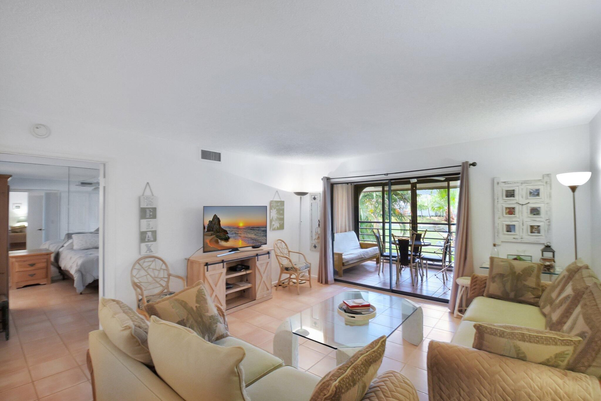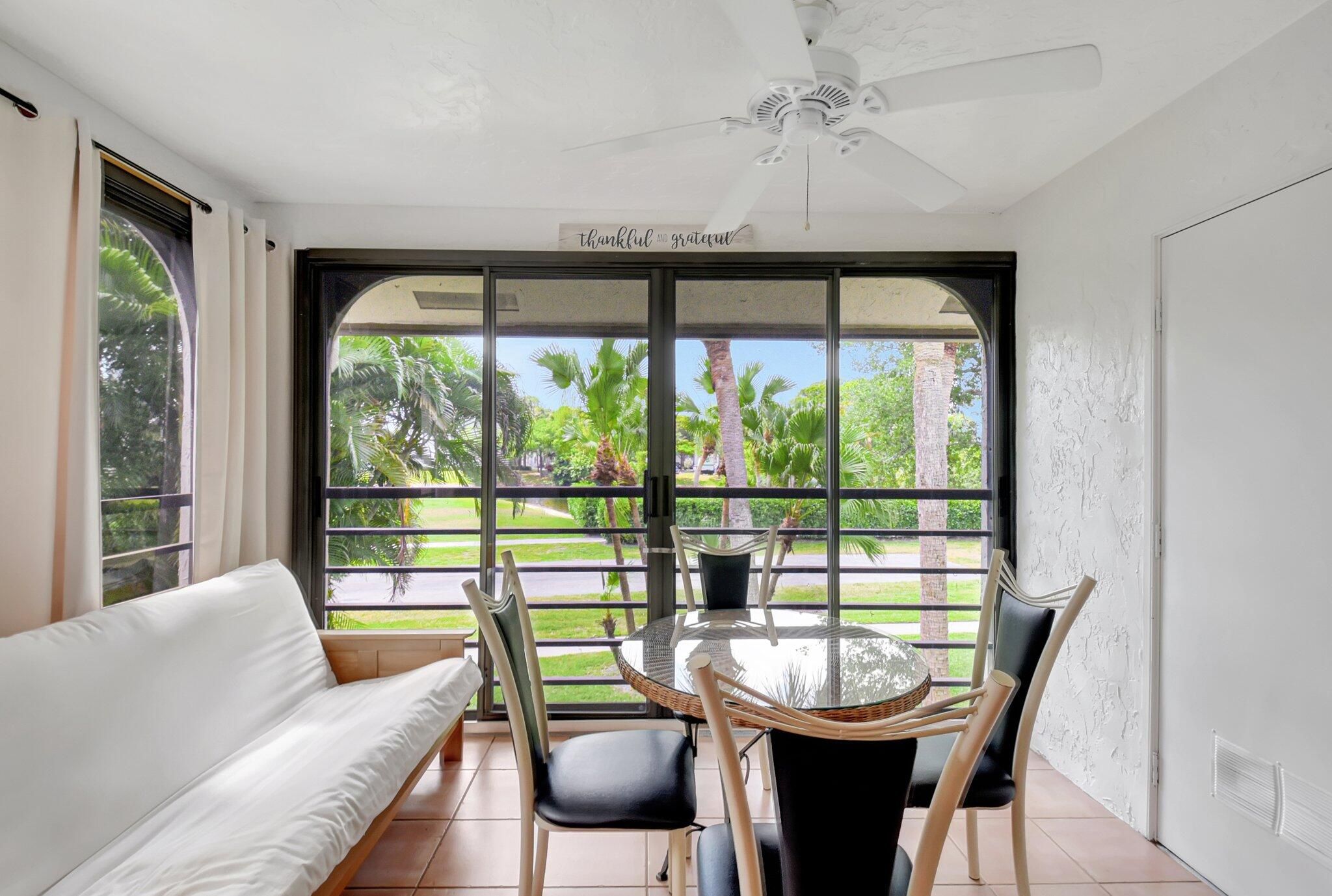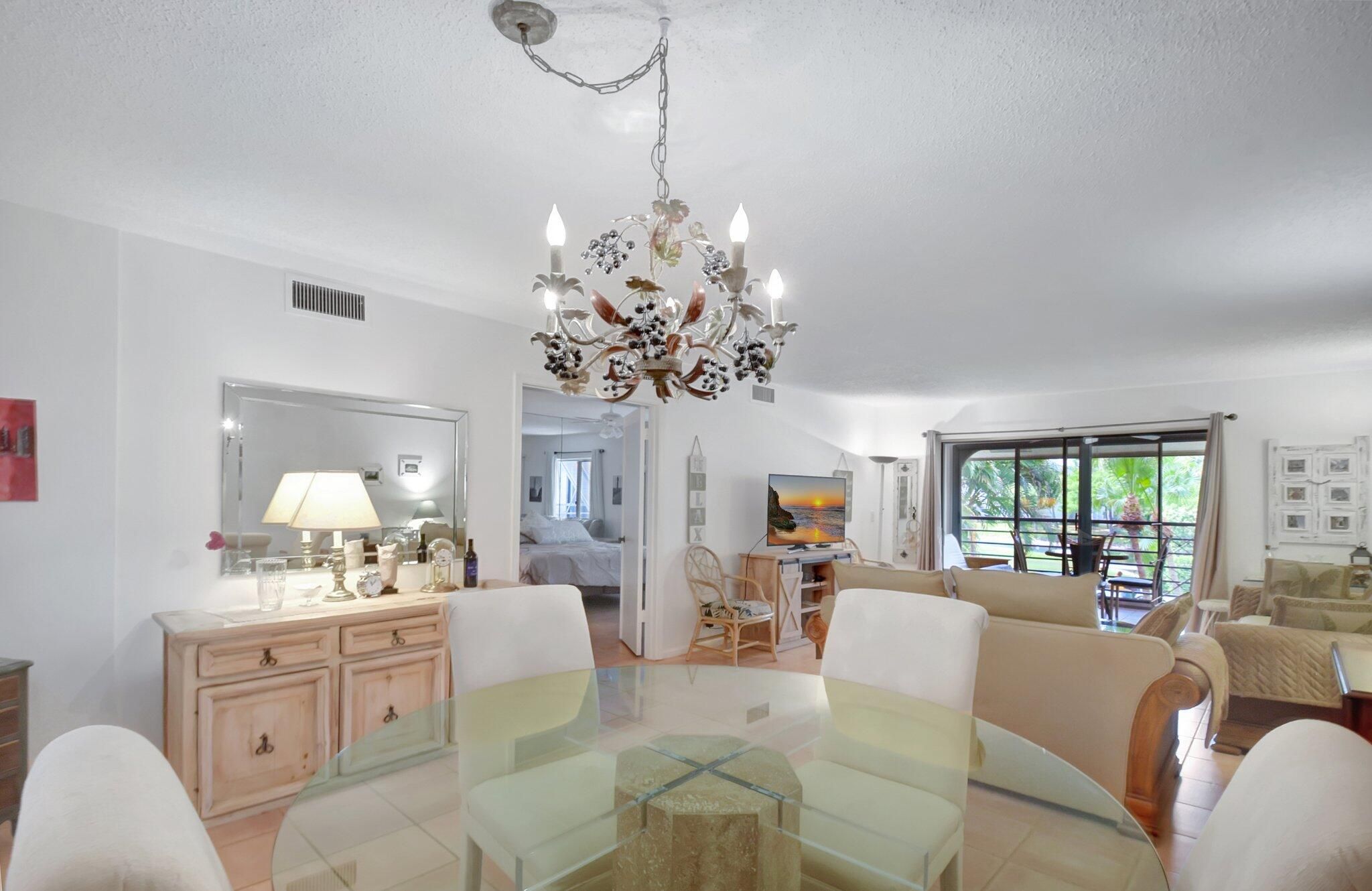 Sparkling, turnkey-furnished, 2BR 2BA condo in fabulous resort style community. Ages 55+ HOPA Assoc. Live the retirement lifestyle you desire & deserve, in SE Florida, lovely Boynton Beach. Airy 2nd fl unit has nice layout, w/ split BRs, eat in kitchen & pass-thru to dining area, porch addition. Big closets. Clever Jack-n-Jill bath provides privacy for guests. Tile floors thru-out, appliances gently used only P/T, washer/dryer in unit. Much to appreciate OUTSIDE as well; Banyan Springs features every amenity imaginable & more, w/ restaurant, top-notch gym, salon, multiple pools, tennis/pickleball. Beautiful clubhouse offers all manner of games, arts, shows, dances, clubs. Central to every convenience, stores, dining, highways., international airports, houses of worship & stunning BEACHES!