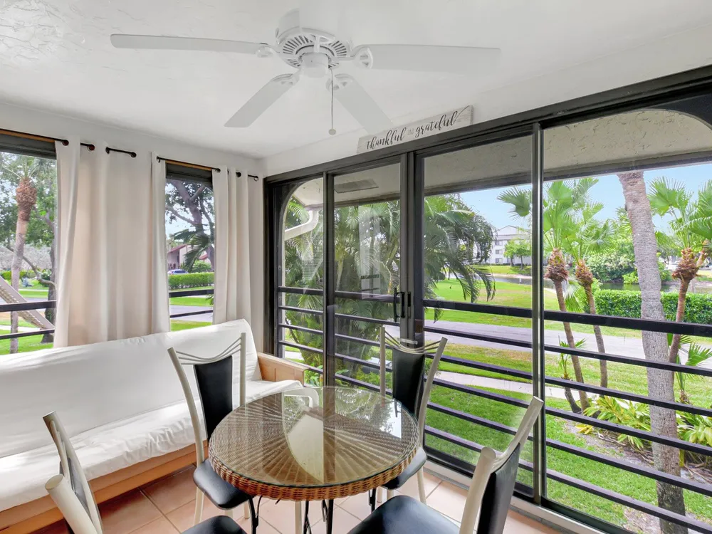 Sparkling, turnkey-furnished, 2BR 2BA condo in fabulous resort style community. Ages 55+ HOPA Assoc. Live the retirement lifestyle you desire & deserve, in SE Florida, lovely Boynton Beach. Airy 2nd fl unit has nice layout, w/ split BRs, eat in kitchen & pass-thru to dining area, porch addition. Big closets. Clever Jack-n-Jill bath provides privacy for guests. Tile floors thru-out, appliances gently used only P/T, washer/dryer in unit. Much to appreciate OUTSIDE as well; Banyan Springs features every amenity imaginable & more, w/ restaurant, top-notch gym, salon, multiple pools, tennis/pickleball. Beautiful clubhouse offers all manner of games, arts, shows, dances, clubs. Central to every convenience, stores, dining, highways., international airports, worship, culture, stunning beaches!!