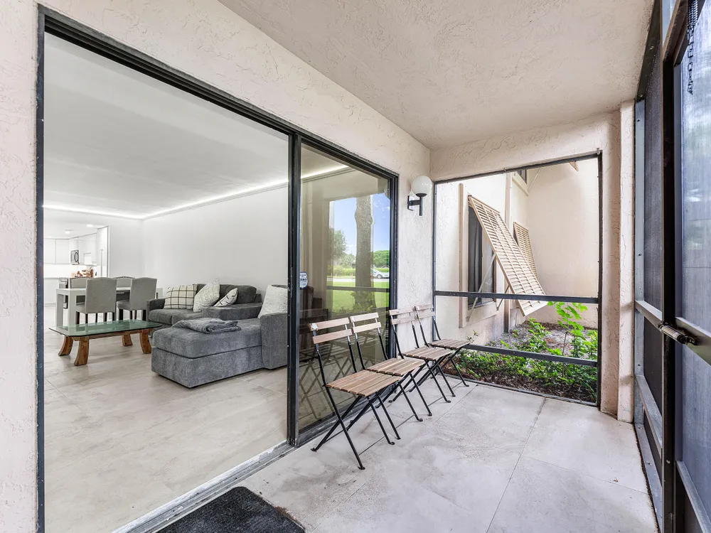 Must see! Stunning 2-bedroom, 2-bath condo in a resort-style 55+ community. This fully upgraded home features a brand-new kitchen with a huge quartz island, stainless steel appliances, new A/C, washer and dryer, upgraded closets throughout, and new furniture including a Murphy bed--over $50K in upgrades! Enjoy your private outdoor space with a brand-new patio fence. Community amenities include a pool, fitness center, tennis courts, theatre, and a full calendar of activities. Move-in ready and beautifully furnished--just bring your toothbrush!