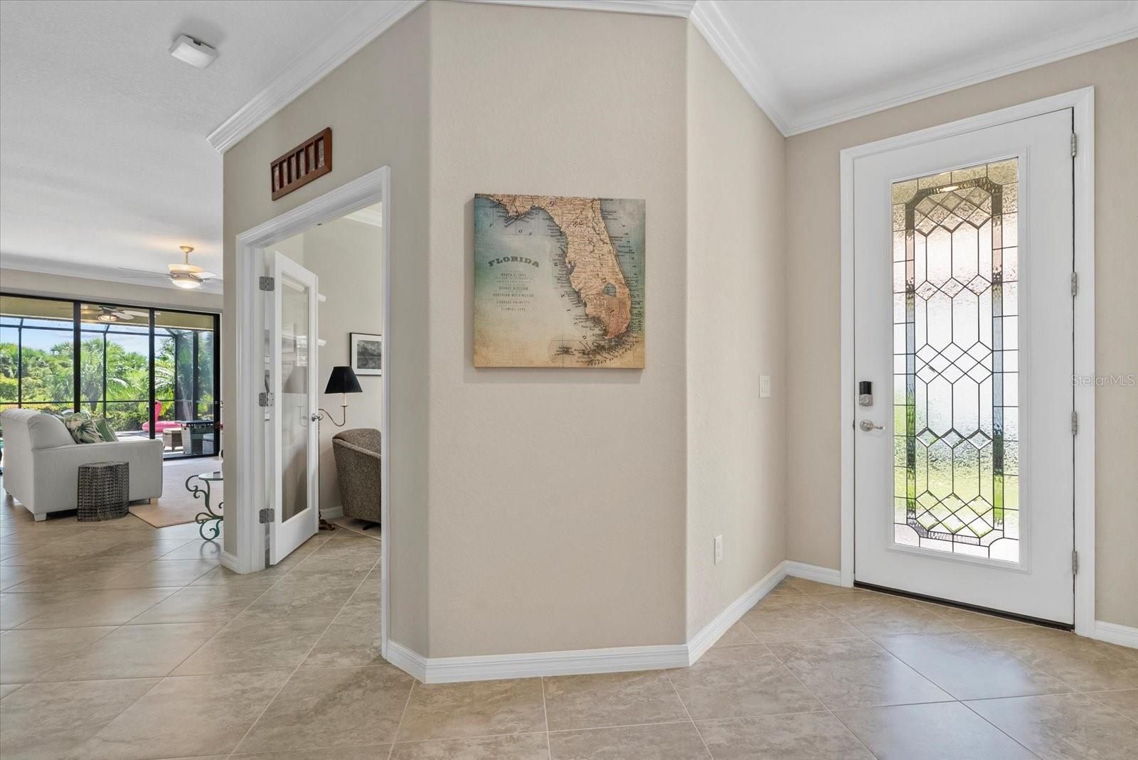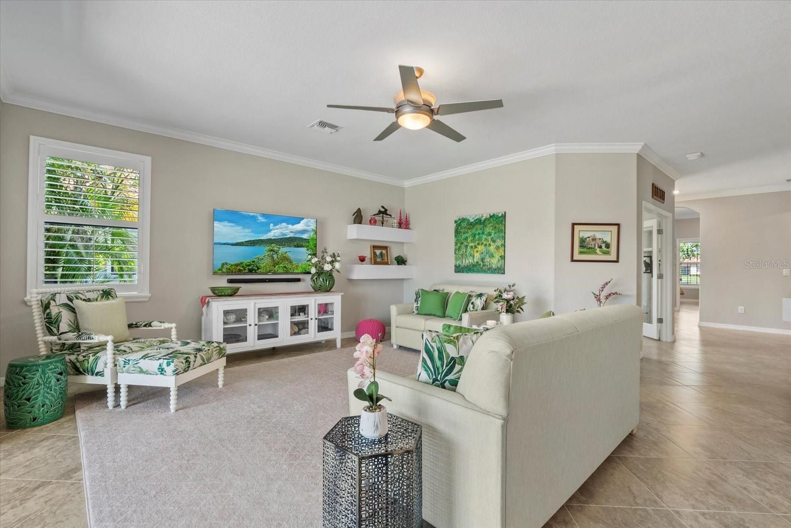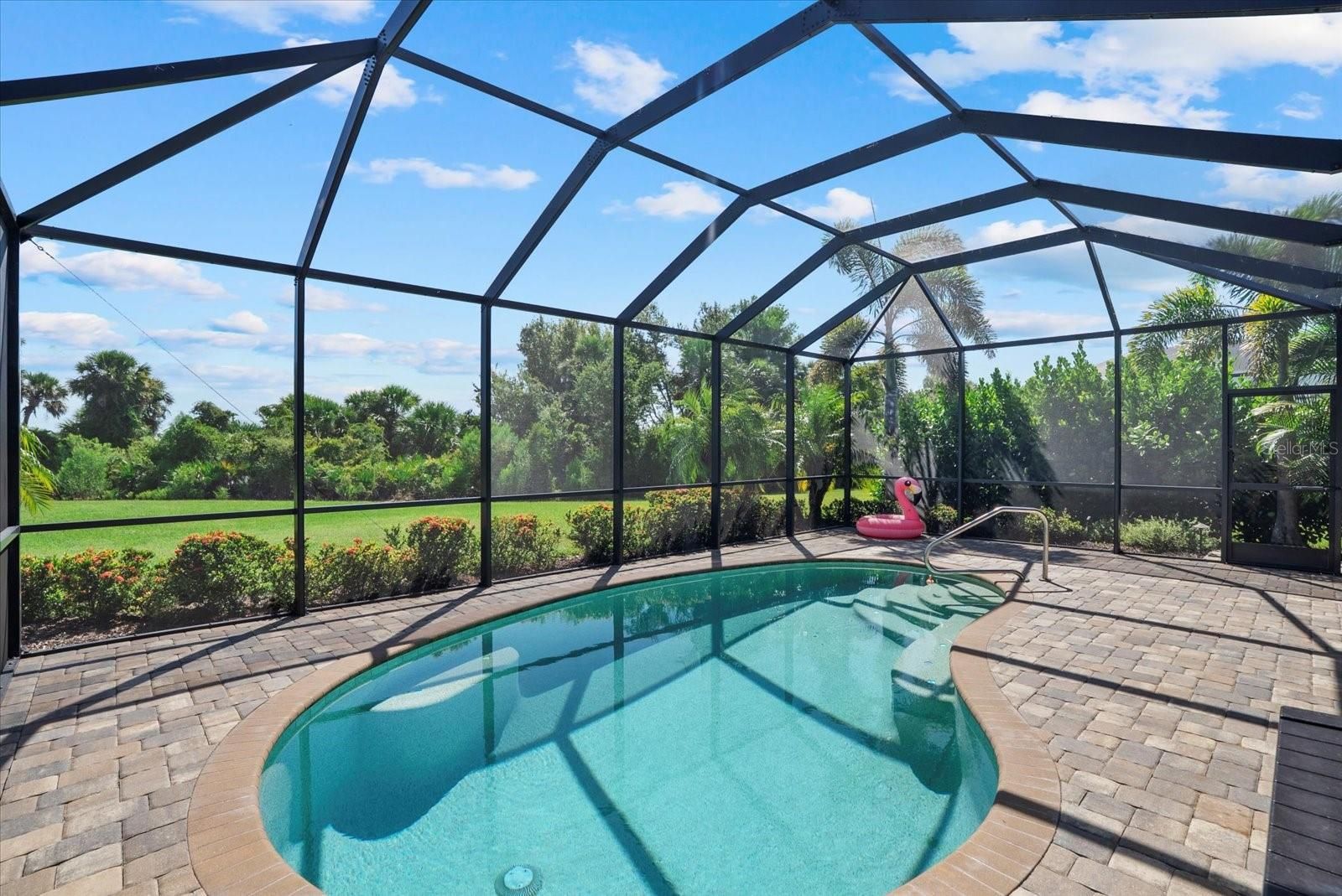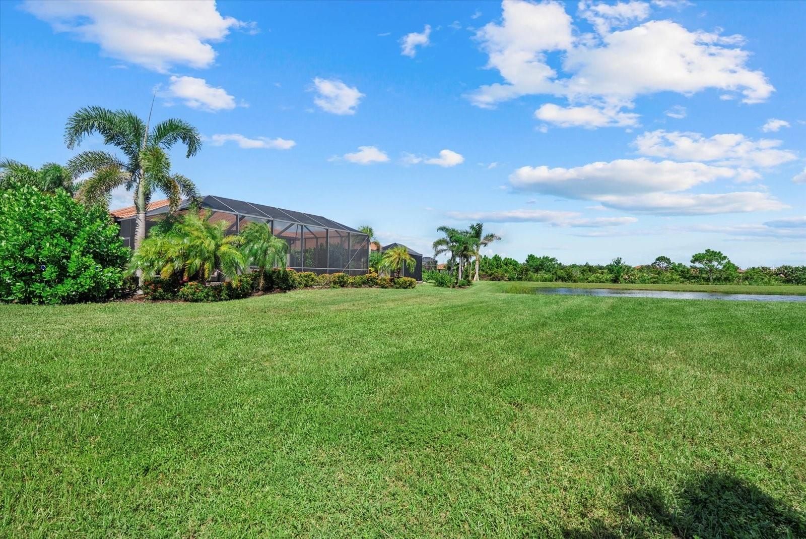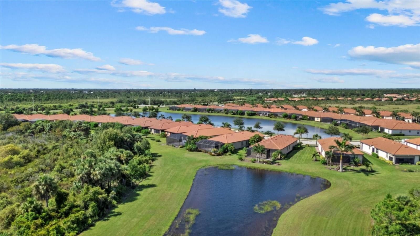HEATED SALTWATER POOL! WATER VIEWS! HURRICANE PROTECTION! PRIVATE LANAI! Welcome to your own private slice of paradise in the guard gated community of Sarasota National. This meticulously maintained 2 bedroom, 2 bathroom home with a private office/den and 2 car garage was built in 2019 and is situated on a premium lot. This property offers WATER VIEWS in the front and in the back, with no neighbors directly behind, with an expansive green space for an unmatched sense of privacy. From the moment you arrive, you’ll notice the lush landscaping, peaceful setting from the front porch, and welcoming curb appeal. Step inside to a bright, open-concept floor plan featuring ceramic tile floors, crown molding, plantation shutters, and granite countertops throughout. The spacious great room blends seamlessly with the kitchen and dining area, making it perfect for both everyday living and entertaining. The entertainer’s kitchen is equipped with stainless steel appliances, a large center island with room for barstool seating, a corner walk-in pantry, granite countertops, and plentiful cabinetry complete with pull-out shelving. The adjacent dining area is ideally positioned for meals overlooking the pool and lake, while the living room opens through sliding glass doors to your lanai for the perfect indoor-outdoor Florida lifestyle. The spacious primary bedroom offers a custom designed walk-in closet with an en-suite bath featuring dual sinks with granite counters, a spacious walk-in shower, a separate water closet, and a linen closet for extra storage. Guests will enjoy their own private wing with a generously sized bedroom, full bath with tub/shower combo, granite vanity, and convenient hallway linen closet. A large interior laundry room provides abundant cabinetry, granite counter utility sink — making laundry day a breeze. Outside, the screened-in lanai is a showstopper, offering both a covered seating area and sunny pool deck, finished in elegant pavers. Enjoy the evening sunsets with the southwesterly facing lanai! The heated saltwater pool is perfect for year-round enjoyment which features a durable Pebbletec finish. The motorized Storm Smart hurricane protection screens allow you to control airflow and privacy, while the surrounding landscaping creates a lush and tranquil backdrop loaded with privacy. You’ll love sitting outside and soaking up the sweeping lake views and the open green space beyond — the setting feels like a private resort. Additional highlights include accordion hurricane shutters, a retractable screen on the front door and outdoor solar lighting along the front and the back of the home. Living in Sarasota National means enjoying resort-style amenities including a clubhouse with indoor dining, resort style pool with outdoor tiki bar dining, social activities, whirlpool tub, playground, fitness center, tennis, pickleball, bocce ball, and more! Sarasota National is an Audubon International Silver Signature member home to a variety of wildlife. All this is just minutes from Downtown Venice, Wellen Park, CoolToday park, shopping, dining, Gulf beaches, and easy access to I-75. This home checks every box — privacy, sweeping water views, a heated saltwater pool, and open layout, all within one of Venice’s premier gated communities. Please copy and paste the following link into your browser to view the luxury video of this home: https://player.vimeo.com/video/1109996551?badge=0&autopause=0&player_id=0&app_id=58479