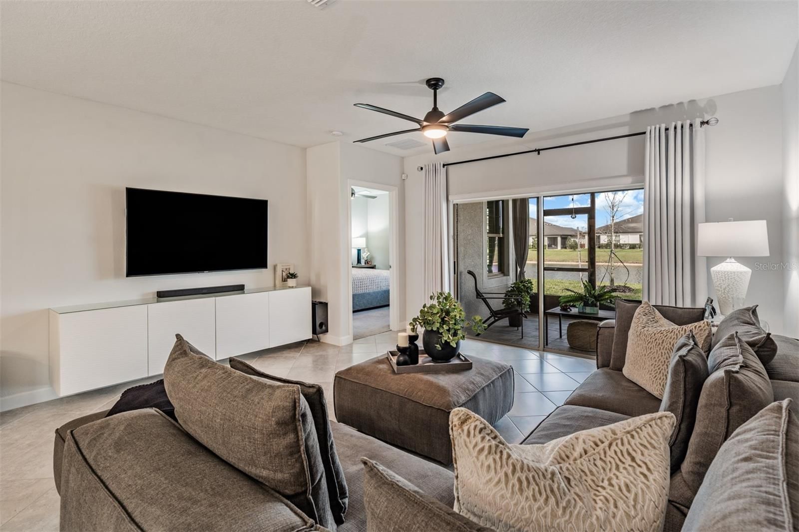 GLISTENING WATER views in this MAINTENANCE FREE Villa!! Come to SUNNY Florida and Escape the dreary cold & snow and embrace effortless Florida living in this beautifully upgraded waterfront villa, ideally located in the Largest Lagoon community of Mirada, in the 55+ GATED section of Medley. Perfectly suited for northern buyers seeking sunshine and simplicity, this two-bedroom, two-bath home offers a seamless blend of comfort, style, and low-maintenance luxury in a peaceful, resort-style setting. From the moment you arrive, you’ll notice the attractive rock landscaping and enhanced curb appeal, while the elegant leaded glass entry door welcomes you inside with added natural light and timeless style. Once inside, notice the bright, open-concept floor plan featuring tile floors laid on the diagonal throughout the main living areas, custom built-ins, plantation shutters, upgraded lighting and fans, and dimmable switches that create the perfect ambiance day or night. The living area is both stylish and functional, highlighted by a modern custom storage cabinet under the TV and an additional buffet-style cabinet with glass top in the kitchen... ideal for entertaining. The chef-inspired kitchen is truly a showpiece, boasting upgraded stainless steel appliances including a slide-in five-burner range, a stunning custom glass backsplash that beautifully complements the cabinets, pull-out shelving for easy organization, a new kitchen faucet and a convenient in-counter disposal button. Six can lights enhance the light, bright feel, making this space as inviting as it is practical. Retreat to the spacious owner’s suite, privately positioned at the rear of the home, where tranquil pond views create a serene backdrop. This relaxing retreat includes a sitting area, spa-like ensuite bath with dual sinks and quartz countertops, and a peaceful setting to unwind while enjoying views of ducks, birds, and turtles. Sliding doors from the Great room feature an electric privacy shade (with remote) to your screened lanai with paver-look tile, the perfect place to enjoy morning coffee or evening relaxation overlooking the water. Additional features include an in-wall pest defense system and a 2023 GE high-efficiency washer and dryer... conveniently located in the interior laundry room, which is spacious enough for additional storage. This exceptional villa offers not just a home, but a lifestyle filled with resort-style amenities, social opportunities, and year-round sunshine. Meticulously maintained and truly move-in ready... Furnishings negotiable and Reasonable offers are welcomed. This is your opportunity to own a stunning piece of Florida paradise... CALL TODAY!