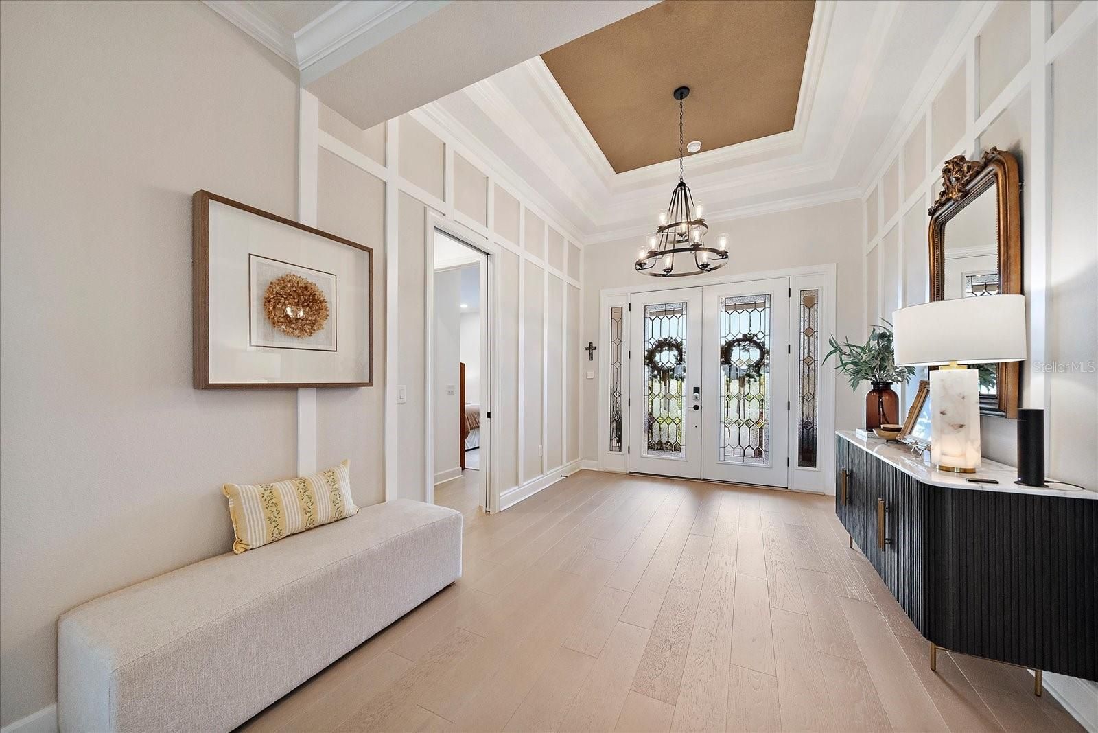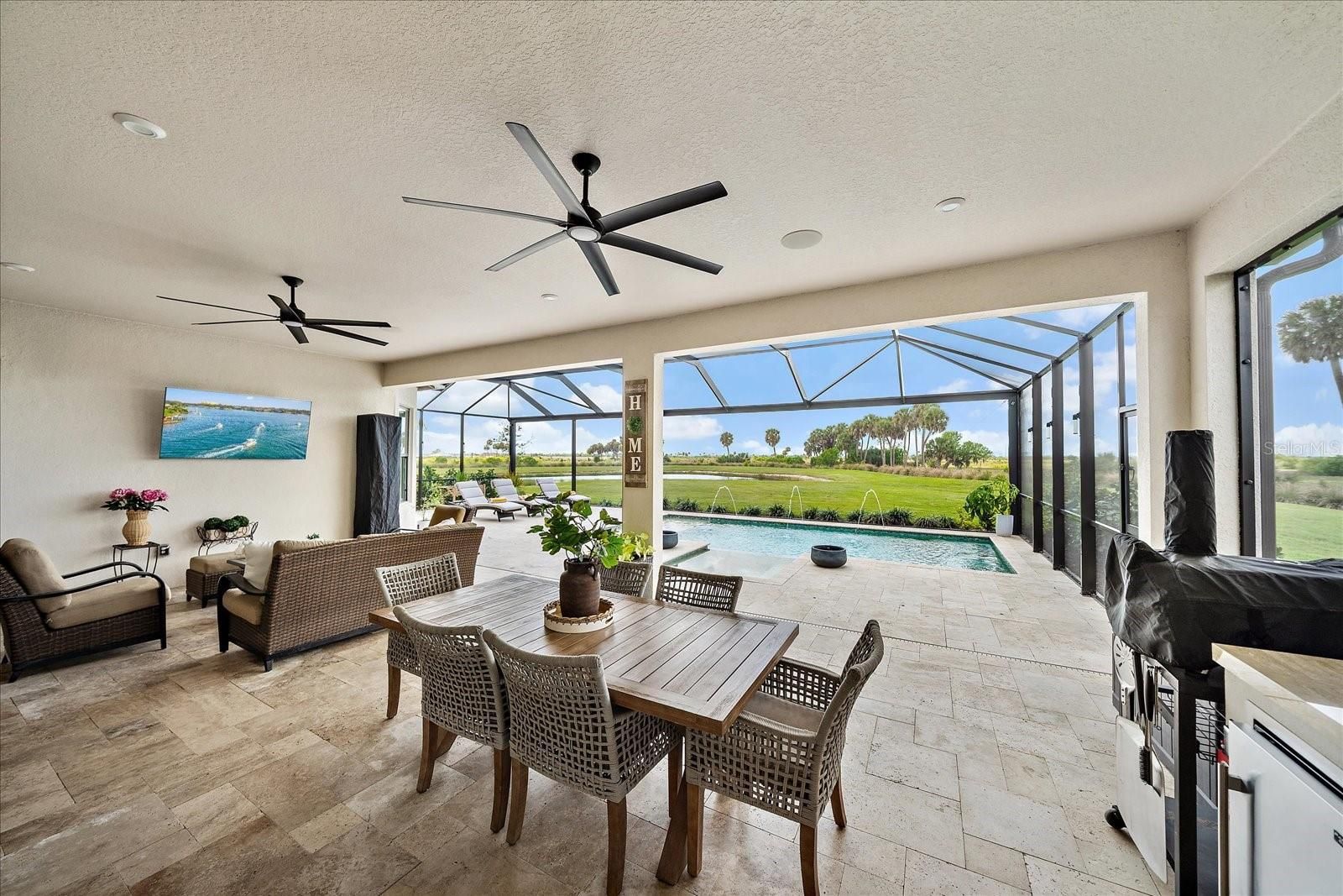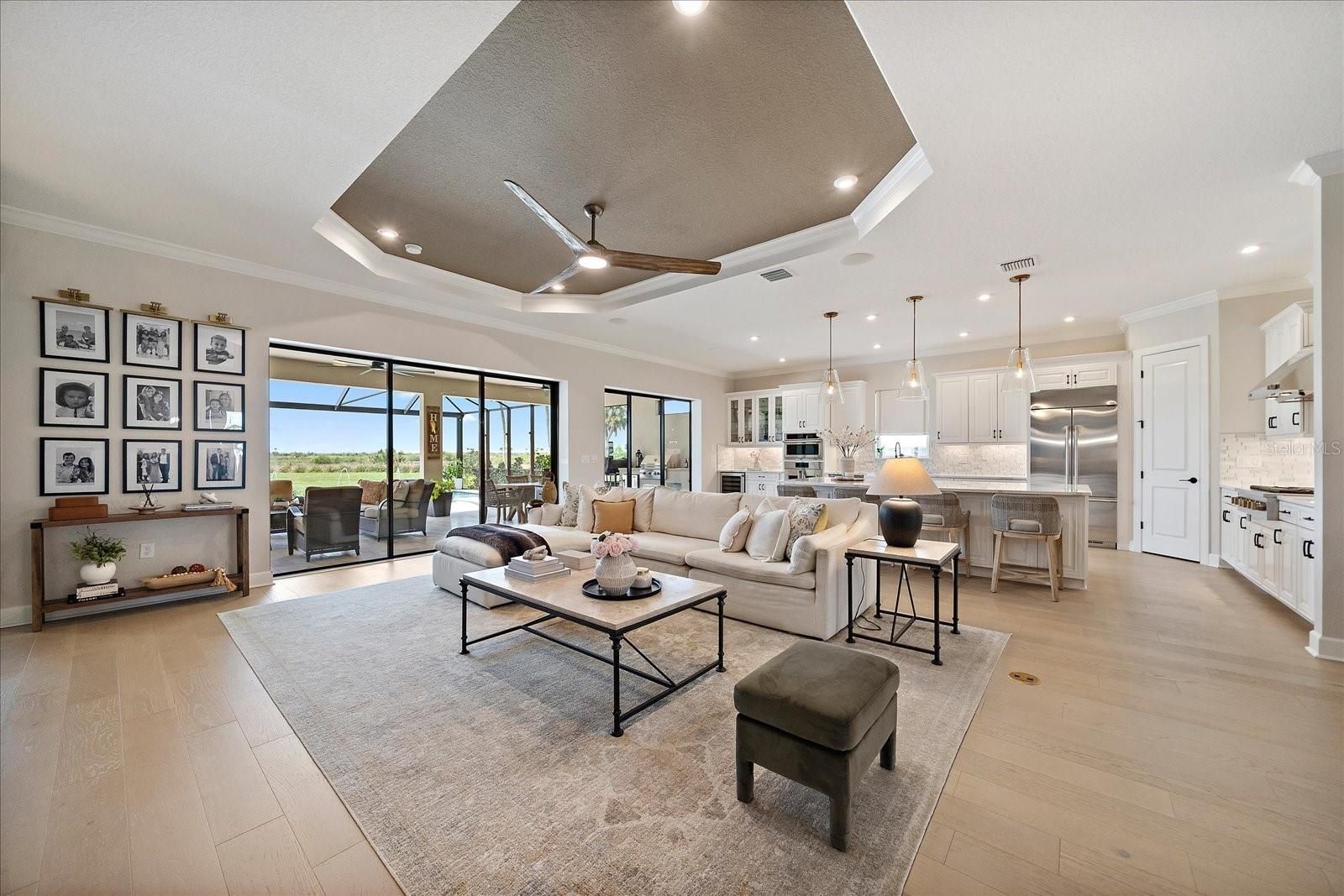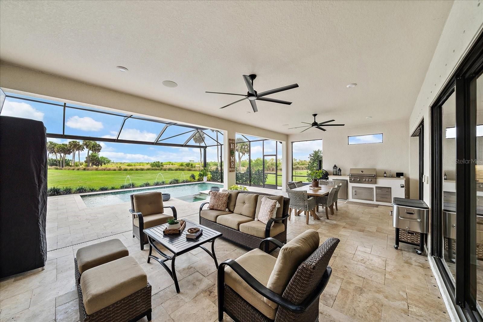 Rare Triple-Preserve Palazzio | Sunset Views + Private Pool Home in Esplanade at Skye Ranch One of the most private and desirable homesites in Esplanade at Skye Ranch, this upgraded Palazzio offers preserve views on three sides with breathtaking western sunset exposure over preserve and pond. With no homes in front, beside, or behind, this rare triple-preserve setting delivers unmatched privacy and natural beauty. Spanning over 3,095 square feet, this thoughtfully designed residence features a highly sought-after three-way split floor plan with 3 bedrooms, 3 full baths, a private study with glass French doors, and an oversized tandem 2-car garage with extended driveway for extra parking room. Elegant interior finishes include 10-foot ceilings, 8-foot solid core doors (including pocket doors), crown molding, tray ceilings, and engineered hardwood flooring throughout the main living areas, with upgraded tile in all bathrooms and no carpet. The gourmet chef’s kitchen is the centerpiece of the home, showcasing GE Monogram stainless steel appliances, a professional 6-burner gas cooktop with custom vent hood, pot filler, built-in double ovens, oversized quartz island with seating, farmhouse sink overlooking the preserve, wine refrigerator with dry bar, soft-close cabinetry, pull-outs, and a walk-in pantry with upgraded wood shelving. The open-concept design flows seamlessly into the great room and dining area, all positioned to maximize expansive preserve and water views. The private owner’s suite offers a tranquil retreat with tray ceiling, crown molding, designer lighting, large picture windows, and direct access to the lanai. The spa-inspired primary bath features dual vanities, an oversized walk-in glass shower with floor-to-ceiling tile, and premium finishes throughout. Step outside to a resort-style backyard oasis where indoor and outdoor living come together. The screened lanai includes a custom pool with sun shelf and water features including spa, expansive covered seating and dining areas, a fully equipped outdoor kitchen, and panoramic preserve and pond views—all with western rear exposure for stunning sunsets and no rear neighbors. What truly sets this home apart is the triple-preserve homesite: - Preserve views in front - Preserve along the side - Preserve and pond behind - No homes directly in front, beside, or behind. Residents of Esplanade at Skye Ranch enjoy resort-style amenities including a clubhouse with Bahama Bar, resort pool, fitness center, tennis and pickleball courts, walking trails, and a full calendar of social events. Conveniently located near top-rated schools, shopping, dining, and Sarasota’s world-renowned Gulf Coast beaches. Opportunities like this are rare—schedule your private showing today. Listing agent is owner and holds an active Florida real estate license.