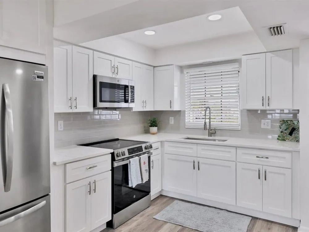Owner Financing Available! Price Improvement, Motivated Seller! Discover this completely remodeled and updated 1 bedroom, 1 bath condo in the Charming Community of Burgundy, where you can enjoy an active Florida Lifestyle with amentiies including pool, clubhouse, and tennis court, along with being just steps to a golf course behind the community. Upon entering this beautiful condo, you find a modern open floor plan with luxury vinyl plank flooring throughout. The brand new kitchen is a standout, featuring Quartz countertops, custom wood cabinetry, and all new stainless steel appliances. The removal of walls creates a bright and airy space for entertaining. Plus the outdated popcorn ceiling has been removed, and the entire unit boasts fresh paint and new light fixtures. This home has been fully upgraded electrically, including new fans and lighting. The bathroom has been beautifully renovated, featuring a new vanity with Quartz countertops, a reglazed bathtub and tub surround to freshen up the look, plus new faucets and hardware. Step outside to your spacious screened in patio which overlooks the courtyard, featuring a freshly painted floor and includes a large storage closet, making it a perfect place to relax and unwind. Centrally located, this unit is just minutes from downtown Bradenton, downtown Sarasota, Sarasota Airport, and the beautiful beaches of Bradenton and Sarasota. You’ll also have easy access to shopping, dining, and entertainment options. Don’t miss out on this light, bright, and move-in ready condo in an adorable, well maintained neighborhood! Schedule your showing today!