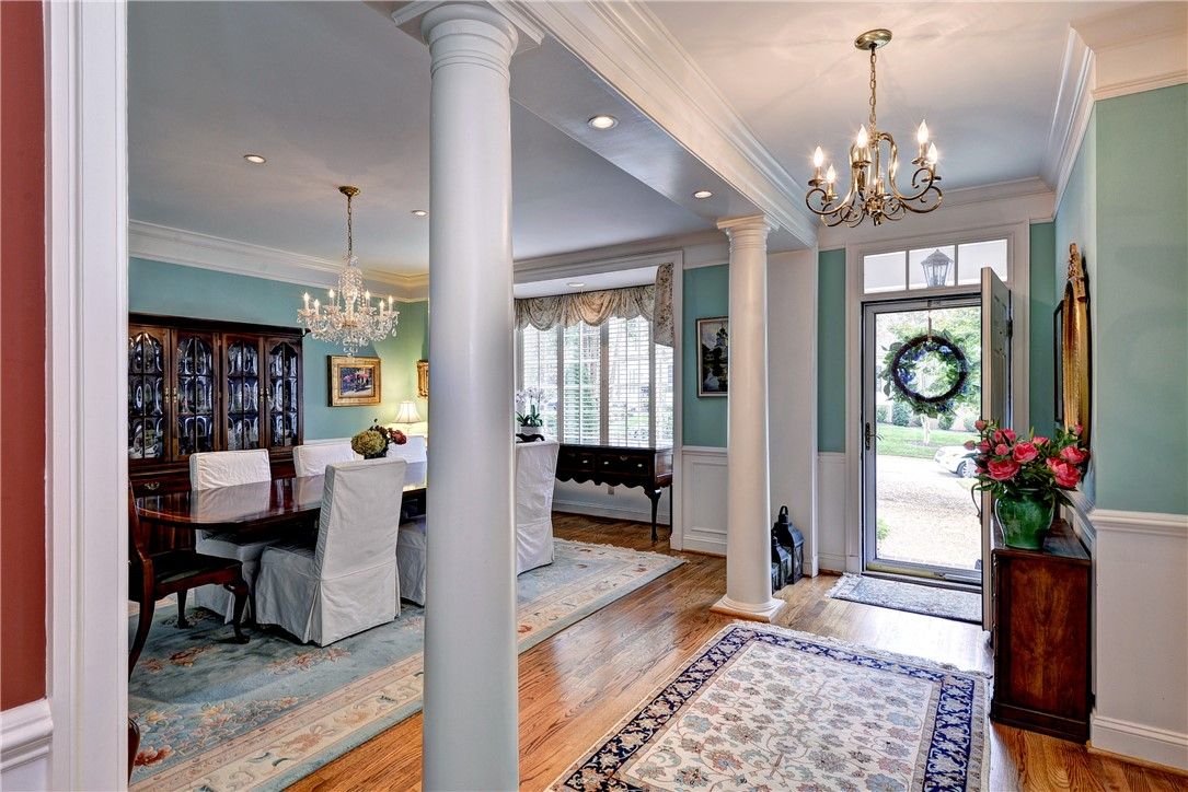 This fabulous home located on the 9th hole of the Marsh Hawk golf course in sought-after St. Andrews Village, Fords Colony offers golf views and a perfect layout for entertaining. The great room impresses with a cathedral ceiling, hardwood floors, built-ins and fireplace, and opens to a spacious sunroom used as an office/den. An elegant dining room with crown molding and wainscoting sets the stage for gatherings. The charming kitchen features granite counters, tiled backsplash, new KitchenAid gas range, stainless appliances, full-height cabinets and a sunny breakfast area with window seat. The first-floor primary suite enjoys golf views and a stunning updated bath with Carrera marble and basket weave shower tile. Upstairs, two large guest bedrooms offer excellent closet space and share a tiled full bath. A storage room offers built-in shelving. Additional features include whole-house water filtration and newer windows in the primary and upstairs bath. Enjoy the ease of St. Andrews living with beautiful golf views in this home designed for comfort and entertaining.